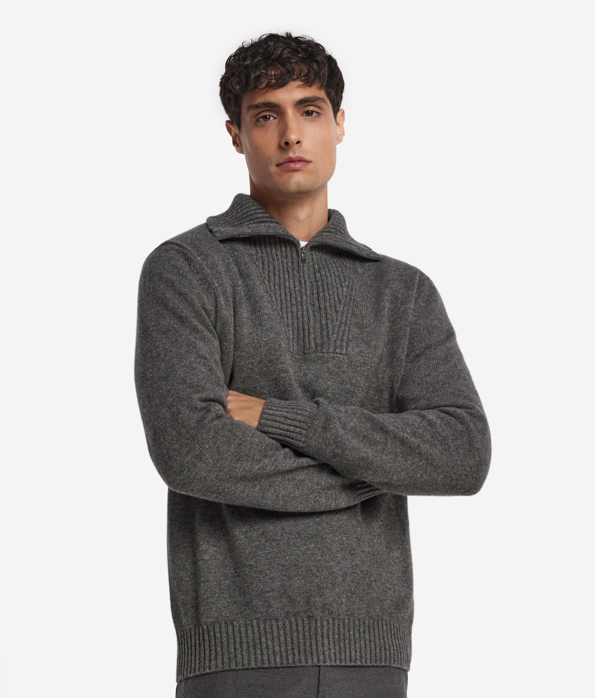 Gerippter Pullover mit Reißverschluss aus Kaschmir Ultrasoft