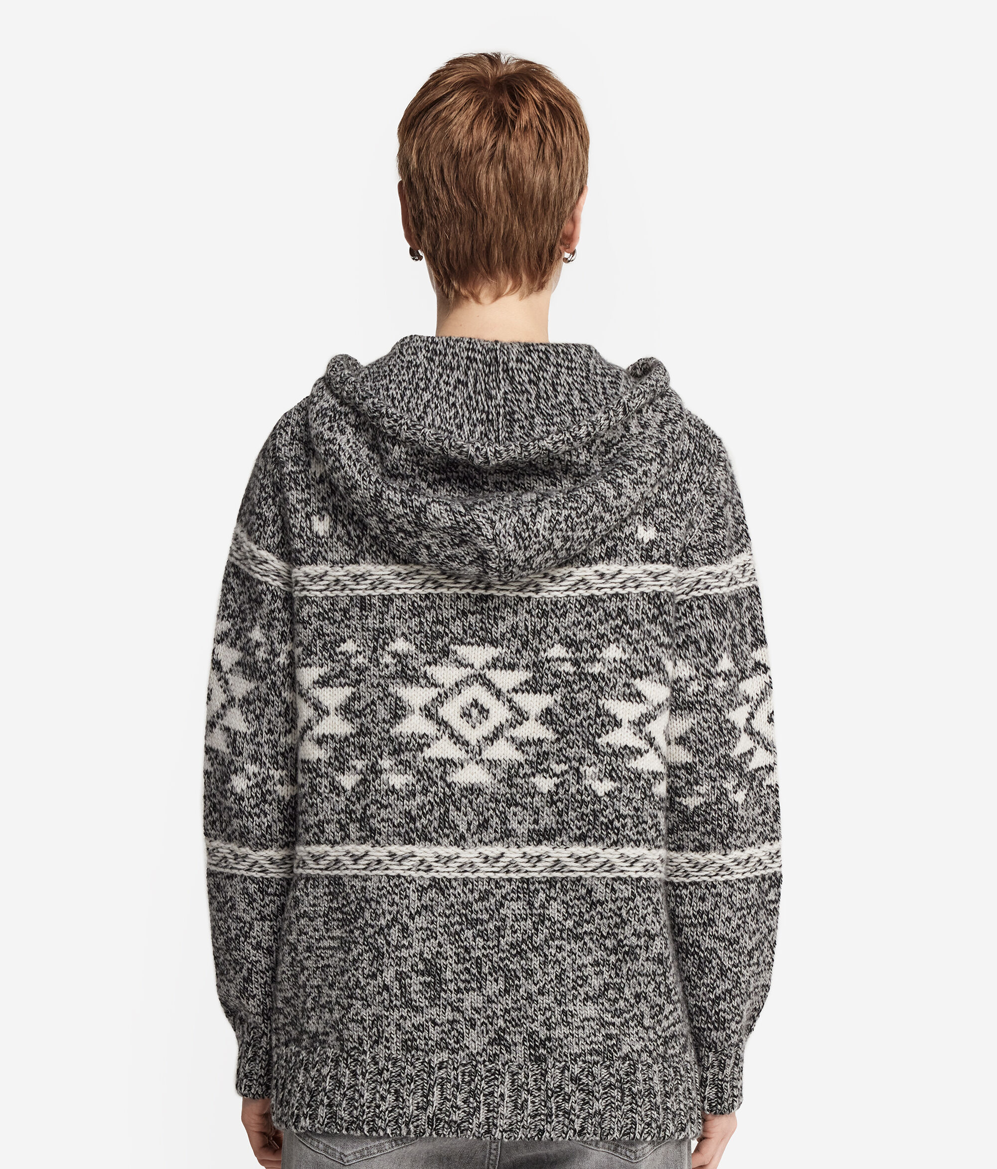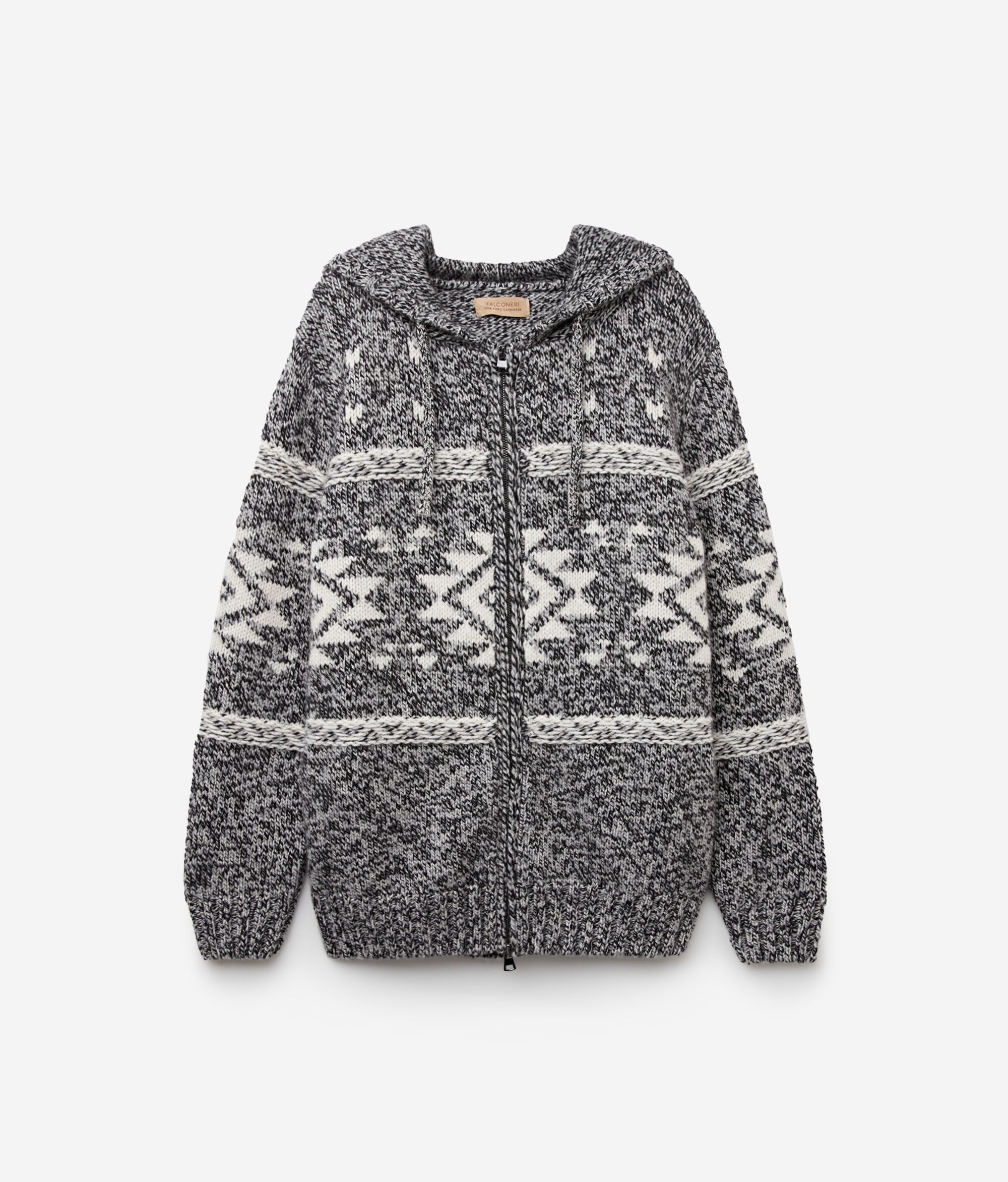 Kapuzensweatjacke aus Kaschmir Ultrasoft Moulinéstrick mit Jacquardverarbeitung