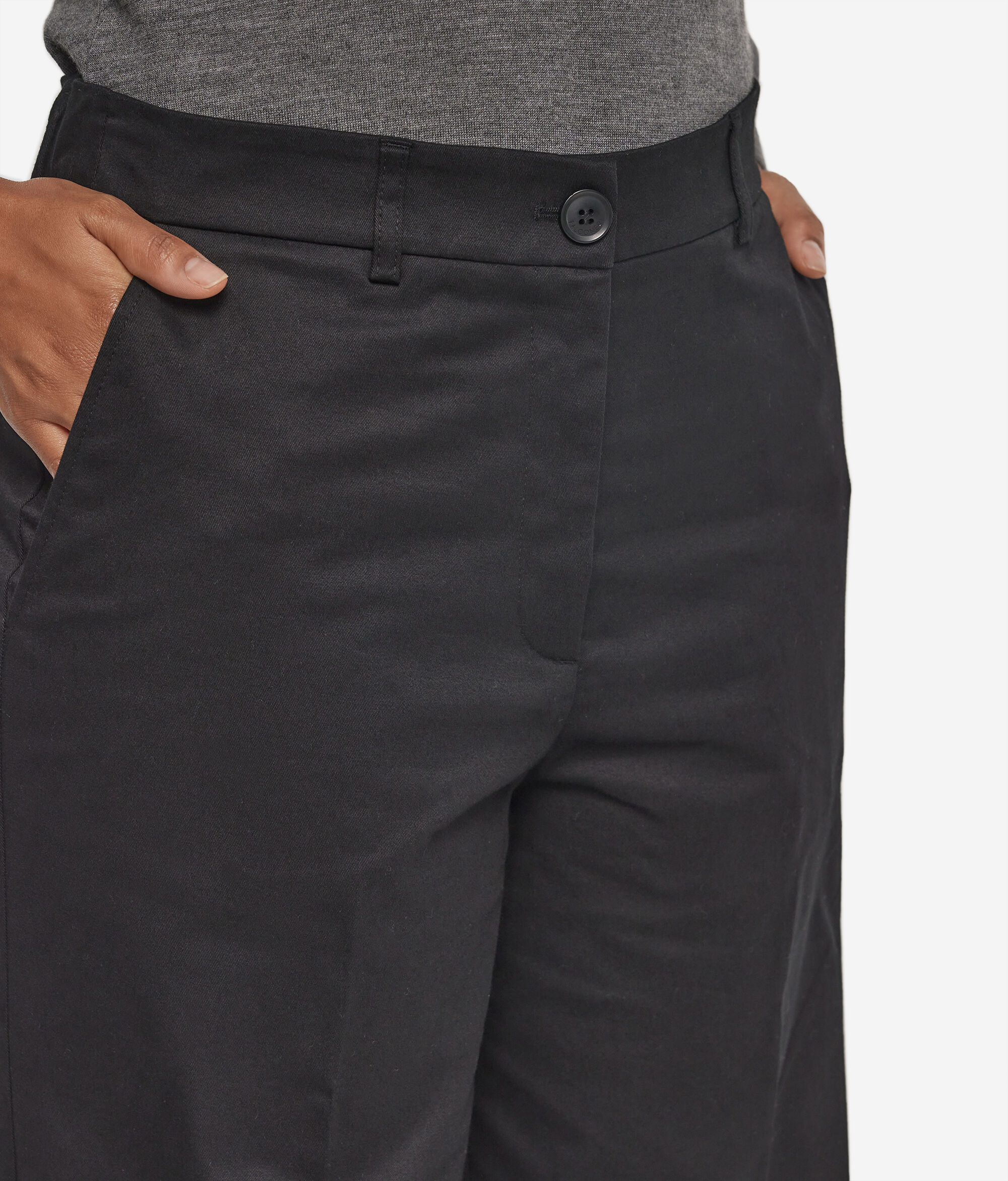 • Bund mit elastischem Einsatz an der Rückseite und Gürtelschlaufen