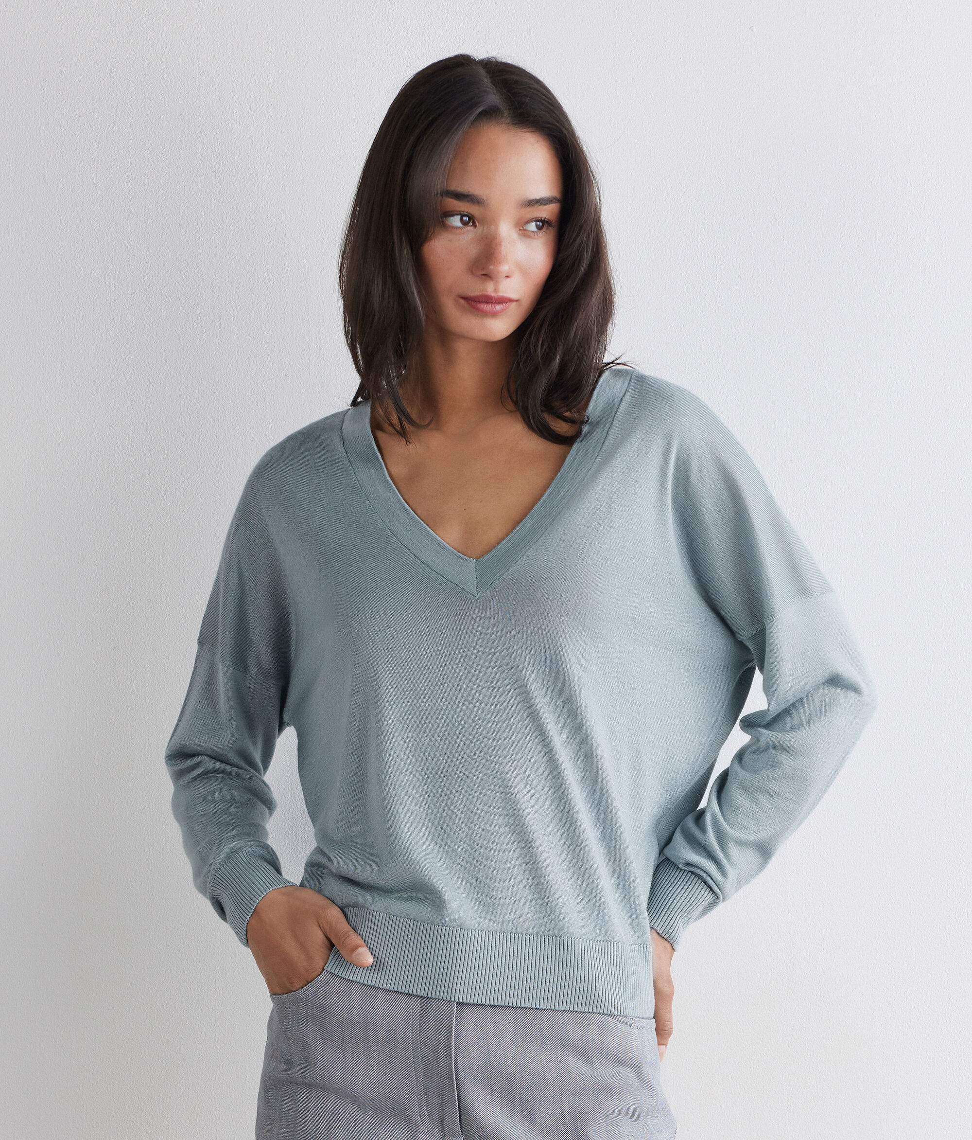 Pullover mit doppeltem V-Ausschnitt aus Silkfine