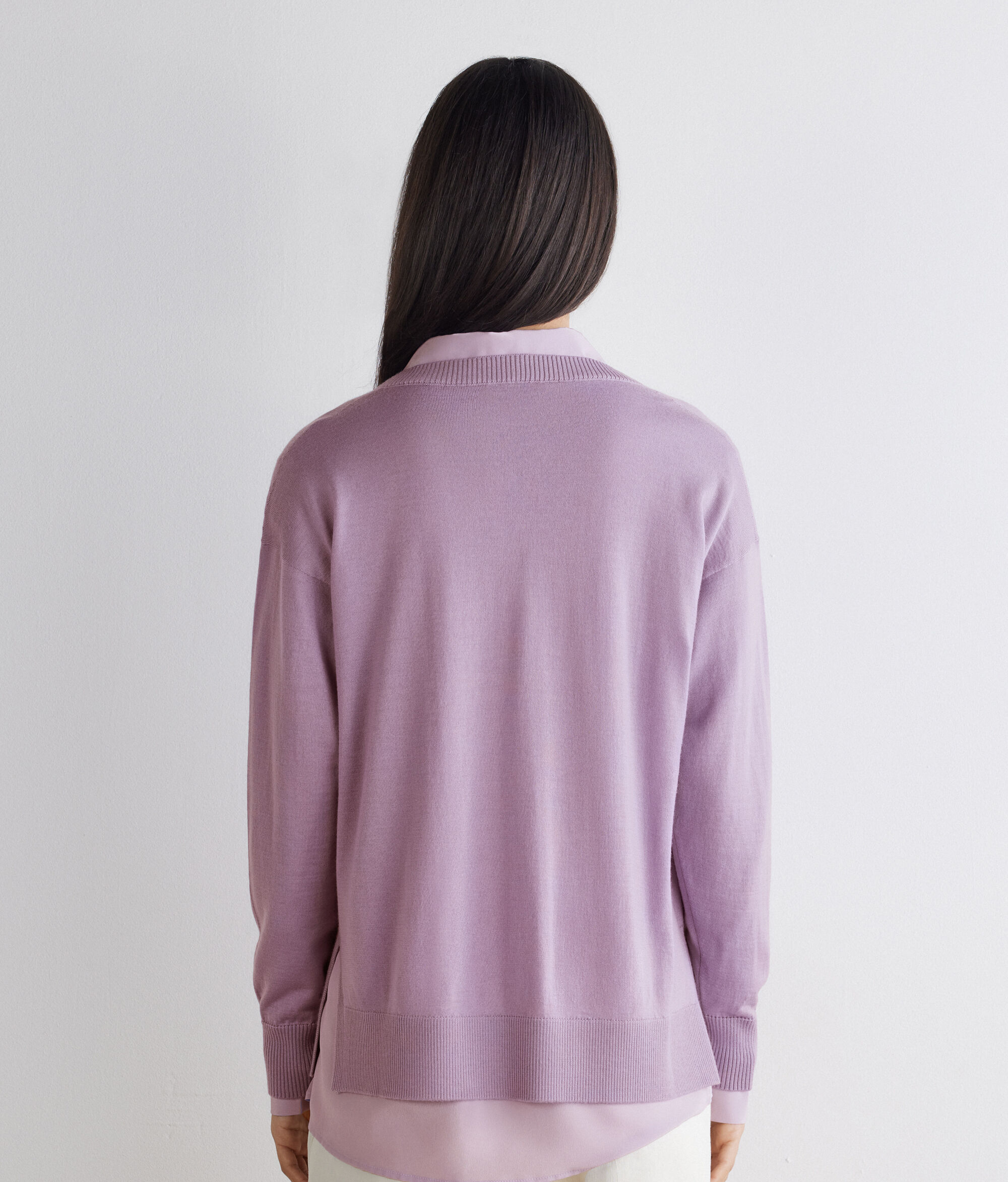Der Pullover mit V-Ausschnitt aus Kaschmir Ultrafine ist ein langärmeliges Modell, das sich durch Rippstrick an Ausschnitt, Bündchen und Saum auszeichnet. Seine Besonderheit sind die Seitenschlitze. Die Schultern sind leicht überschnitten und die Passform ist weich fallend.