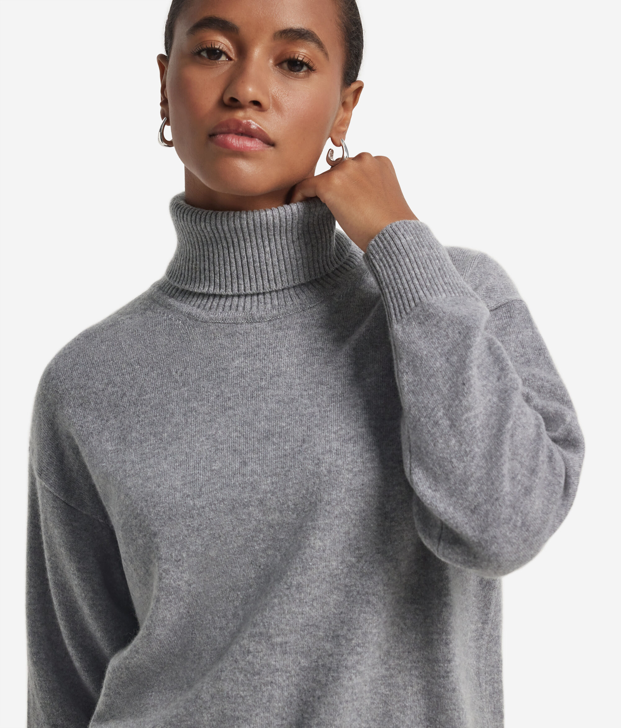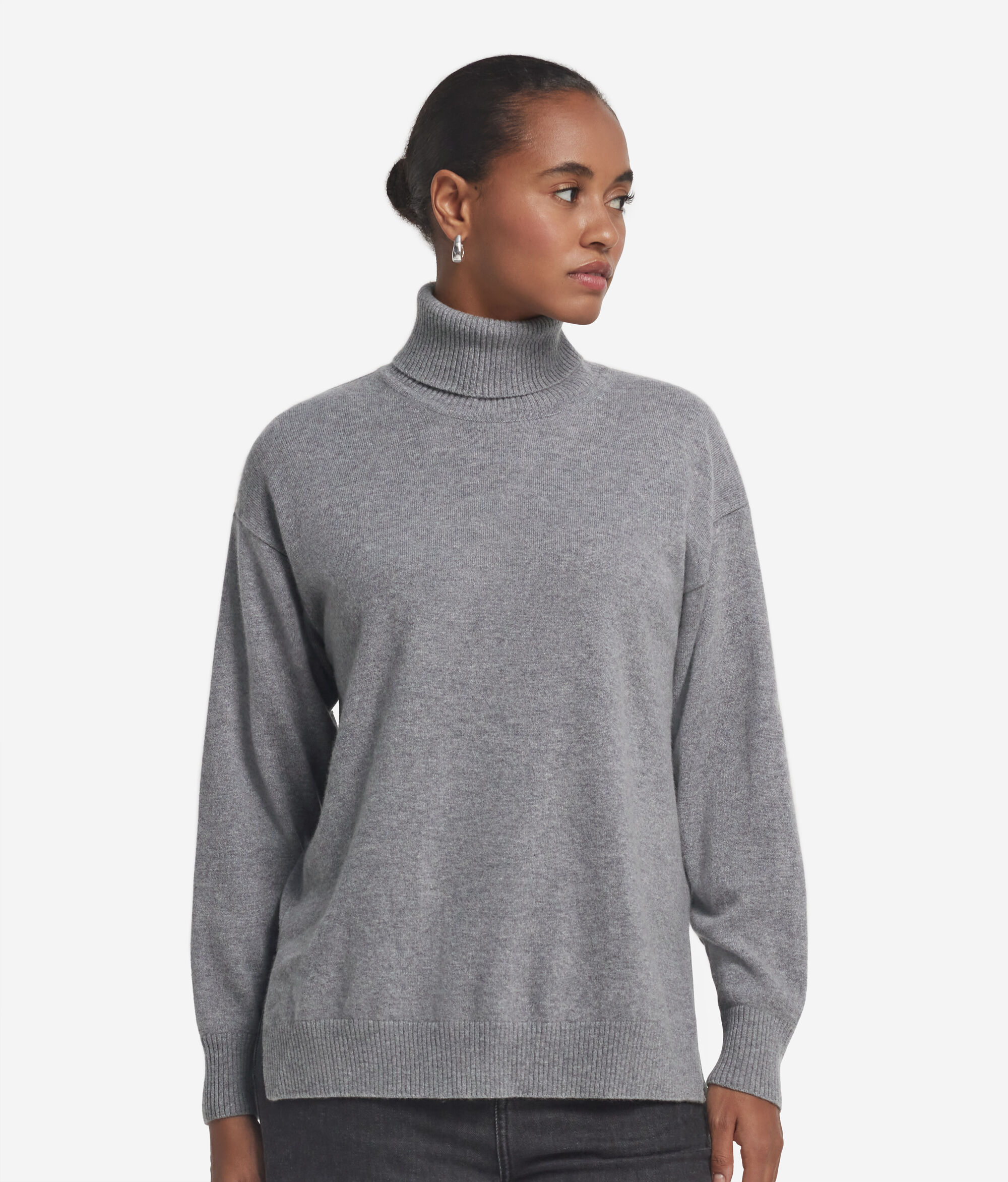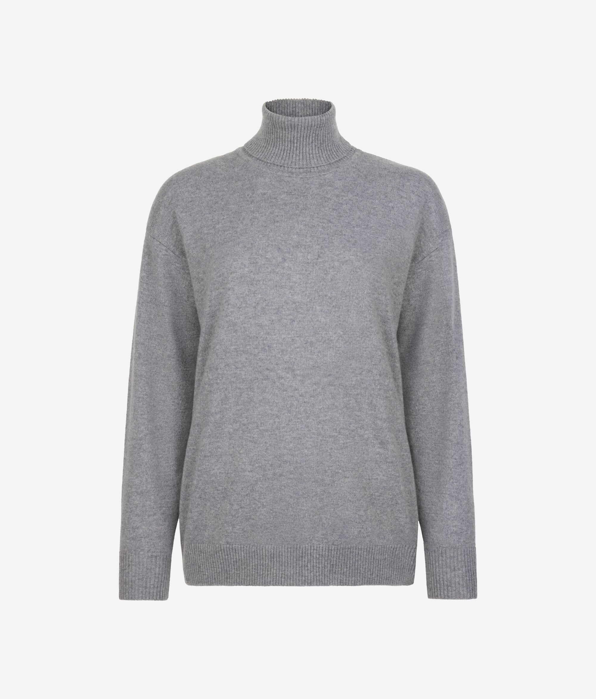 Rollkragenpullover aus Kaschmir Ultrasoft. Das Design des Kleidungsstücks zeichnet sich durch leicht überschnittene Schultern, gerippte Verarbeitung an Ausschnitt, Bündchen und Saum sowie Schlitze am Saum aus. Weich fallende Passform.