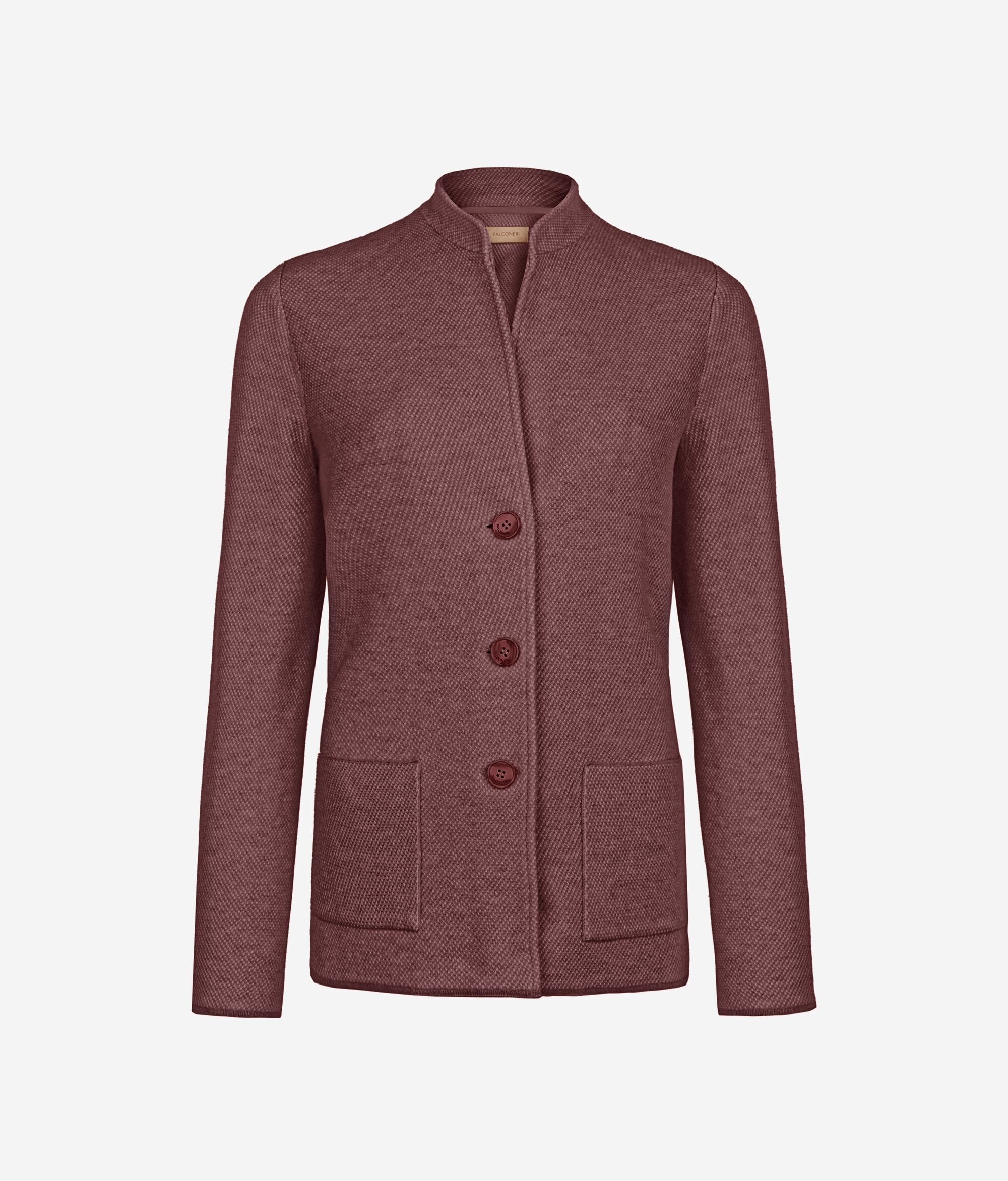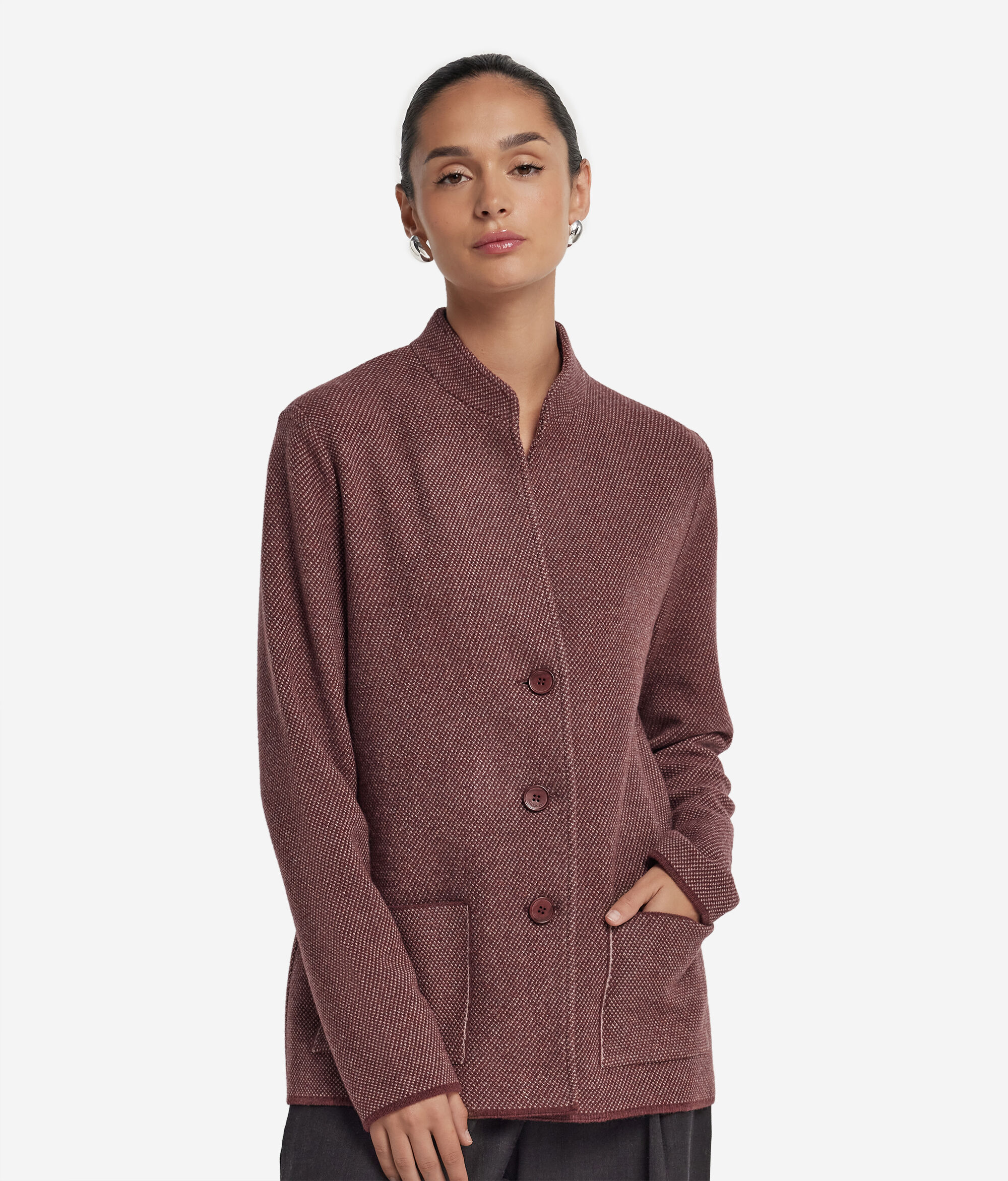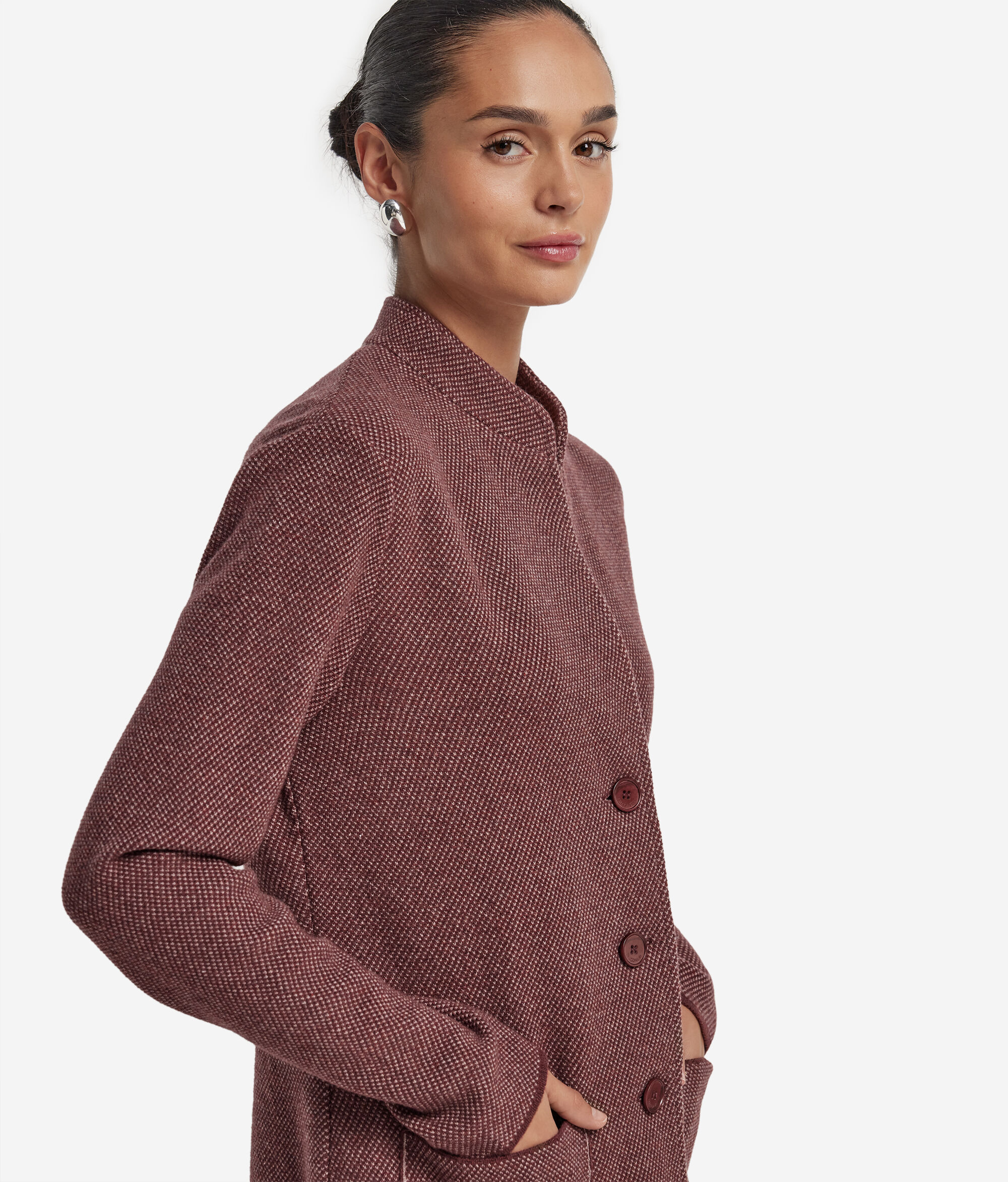 Diese aus Wolle und Kaschmir Ultrasoft gefertigter Blazer vereint Wärme und Raffinesse in einem Kleidungsstück mit weicher und anschmiegsamer Textur. Der Stehkragen und die einreihige Knopfleiste verleihen ihm eine schlichte Eleganz, während der zweifarbige Strick für einen Hauch Charakter sorgt. Der hüftlange Blazer mit normaler Schulterpartie und aufgesetzten Taschen bietet eine ausgewogene und vielseitige Passform.