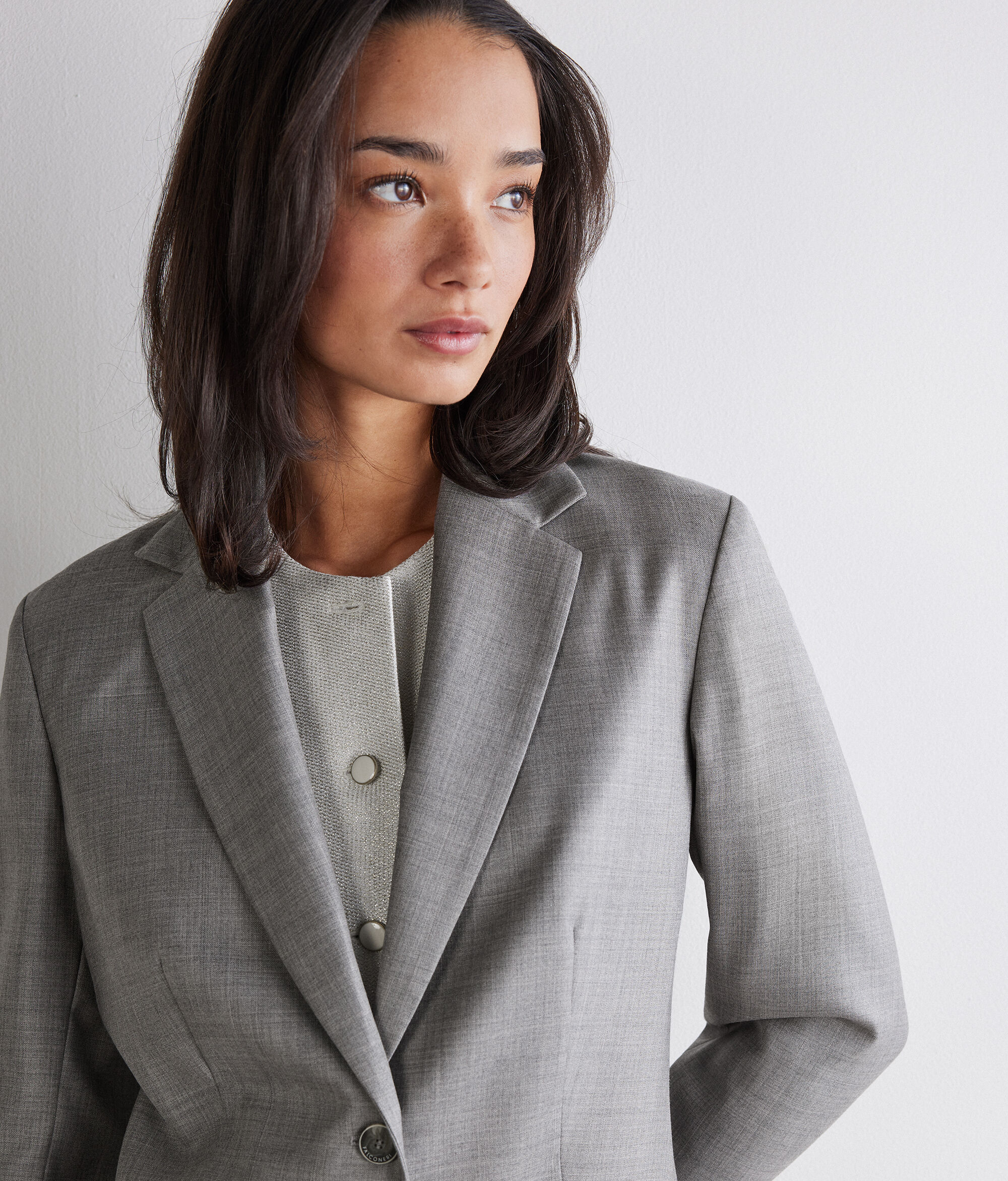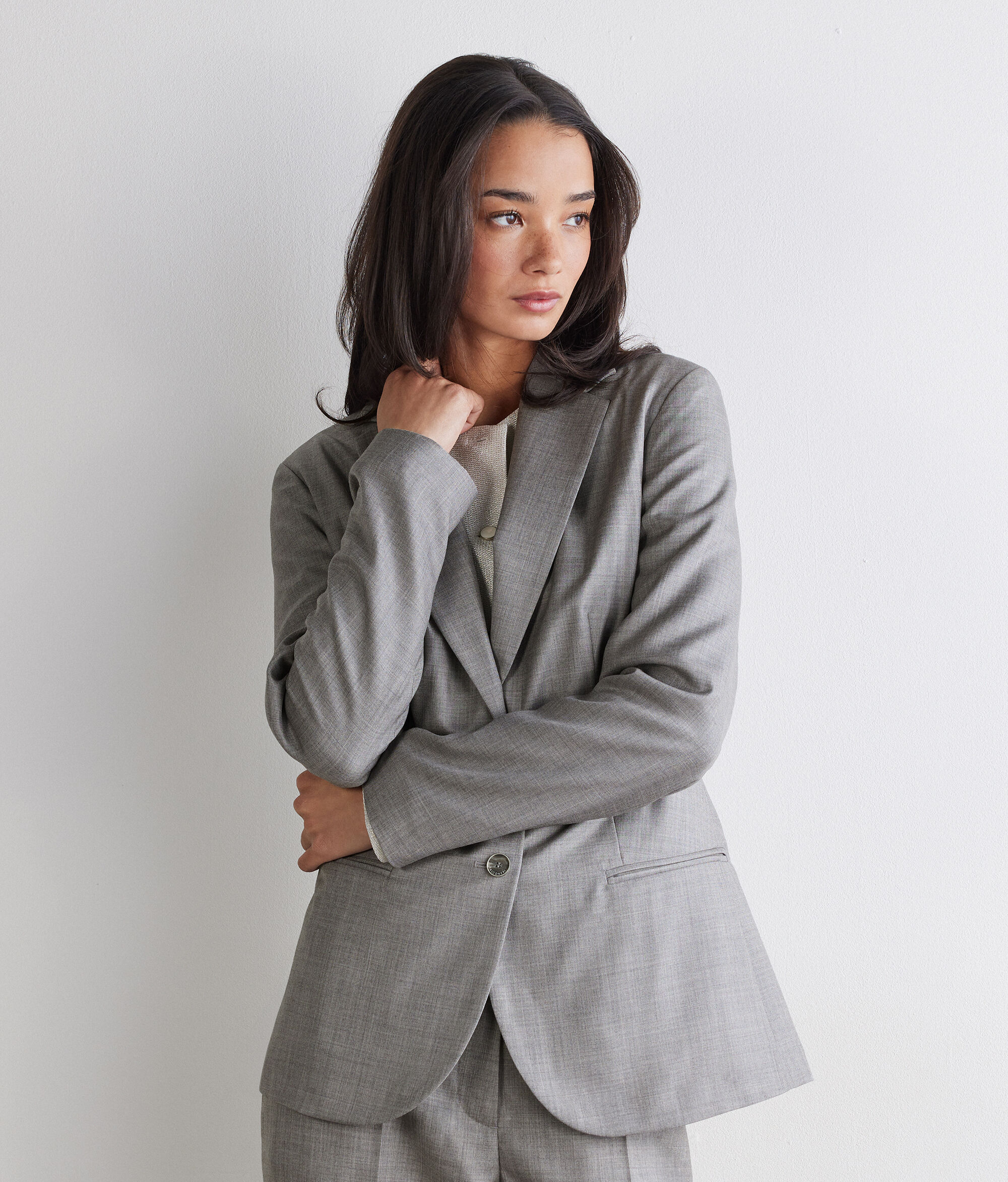 The synthesis of elegance and charm: This cashmere silk jacket envelops the figure with sheen and exquisite softness. The single-breasted, two-button design creates a harmonious silhouette, finished with double welt pockets and a slit at the back; the slim fit adds refined and contemporary allure.