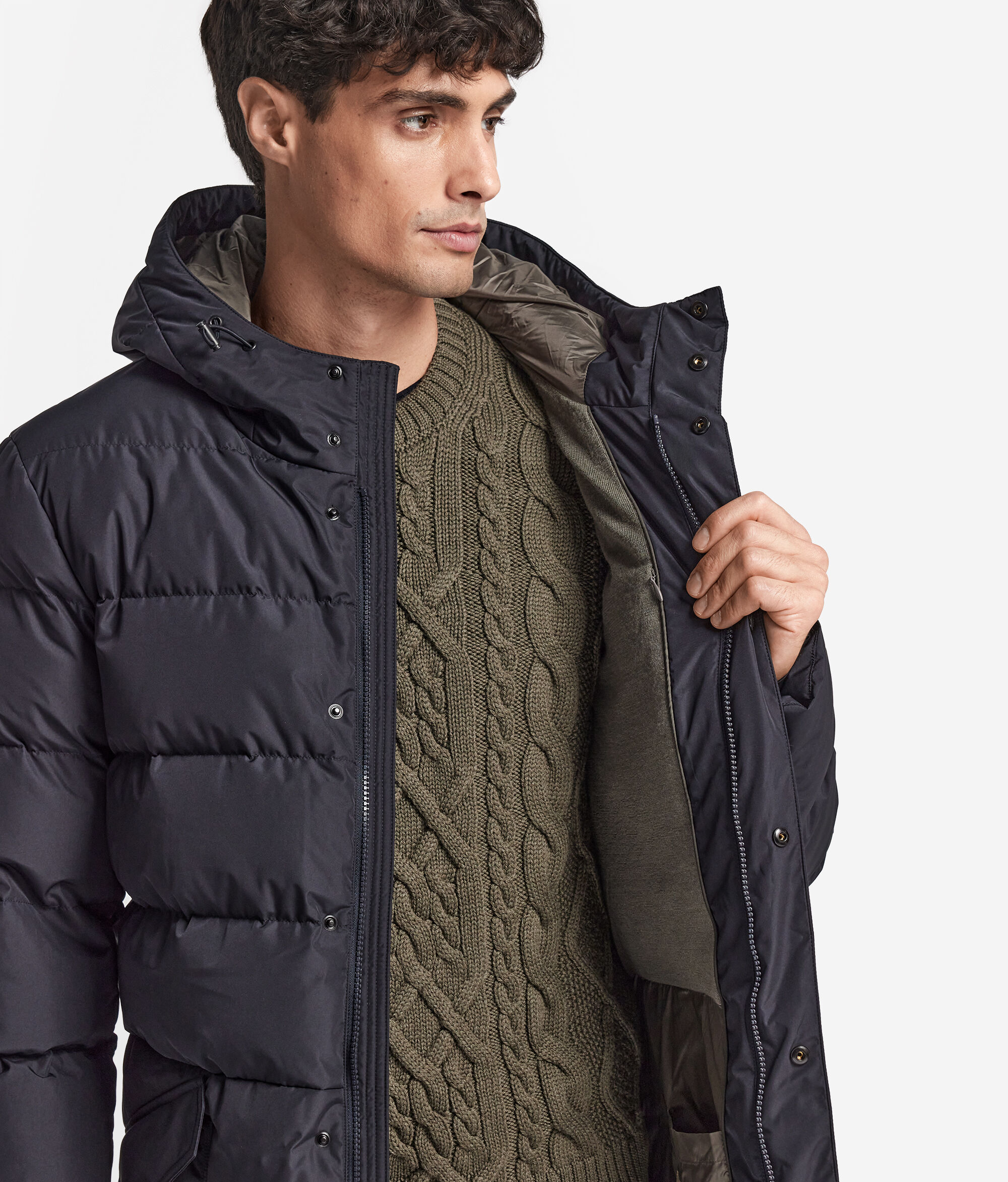 With technical fabric on the outside and an Ultrafine cashmere lining on the inside, this parka perfectly combines luxury with functionality. The hood and external zip pockets are practical features that lend a sporty touch. The down padding guarantees to keep you both warm and comfortable, making this parka the ideal choice for facing those colder days in style.