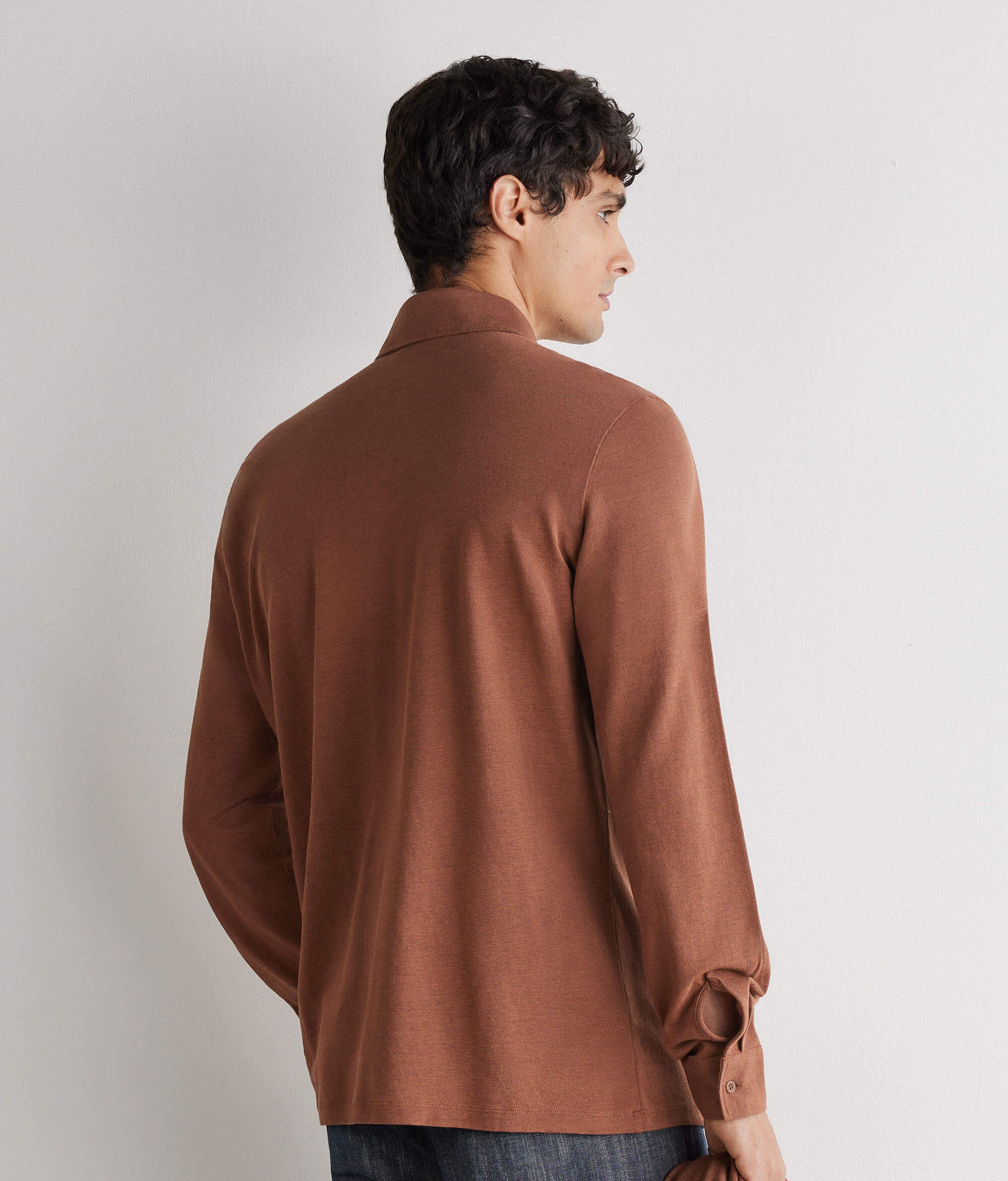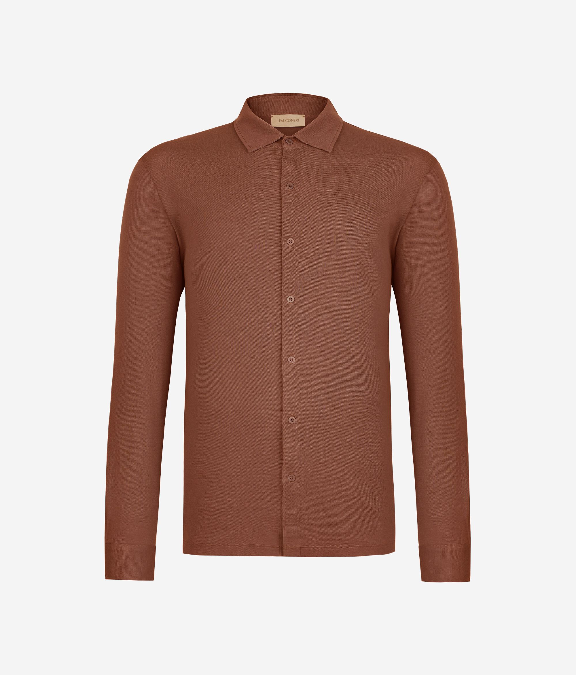 A meticulous selection of natural fibres enhances the silhouette of this shirt in lightweight cotton and silk piqué jersey. The simple design features a collar and central button fastening, adding a touch of timeless elegance. Perfect for those who like discreet elegance, it is a versatile garment that naturally suits both casual and more sophisticated looks.