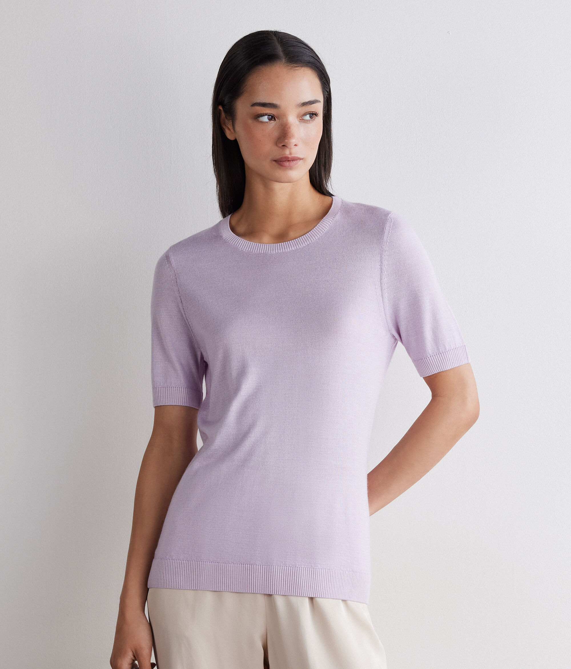 Short-Sleeved Silkfine Cashmere crew neck