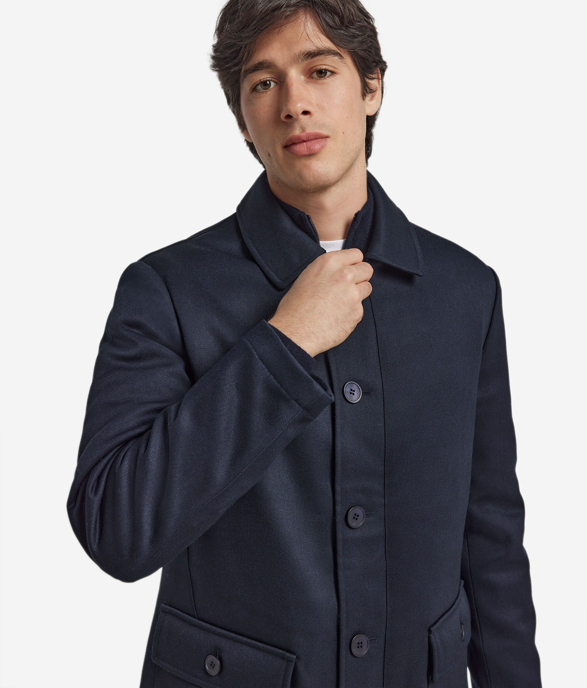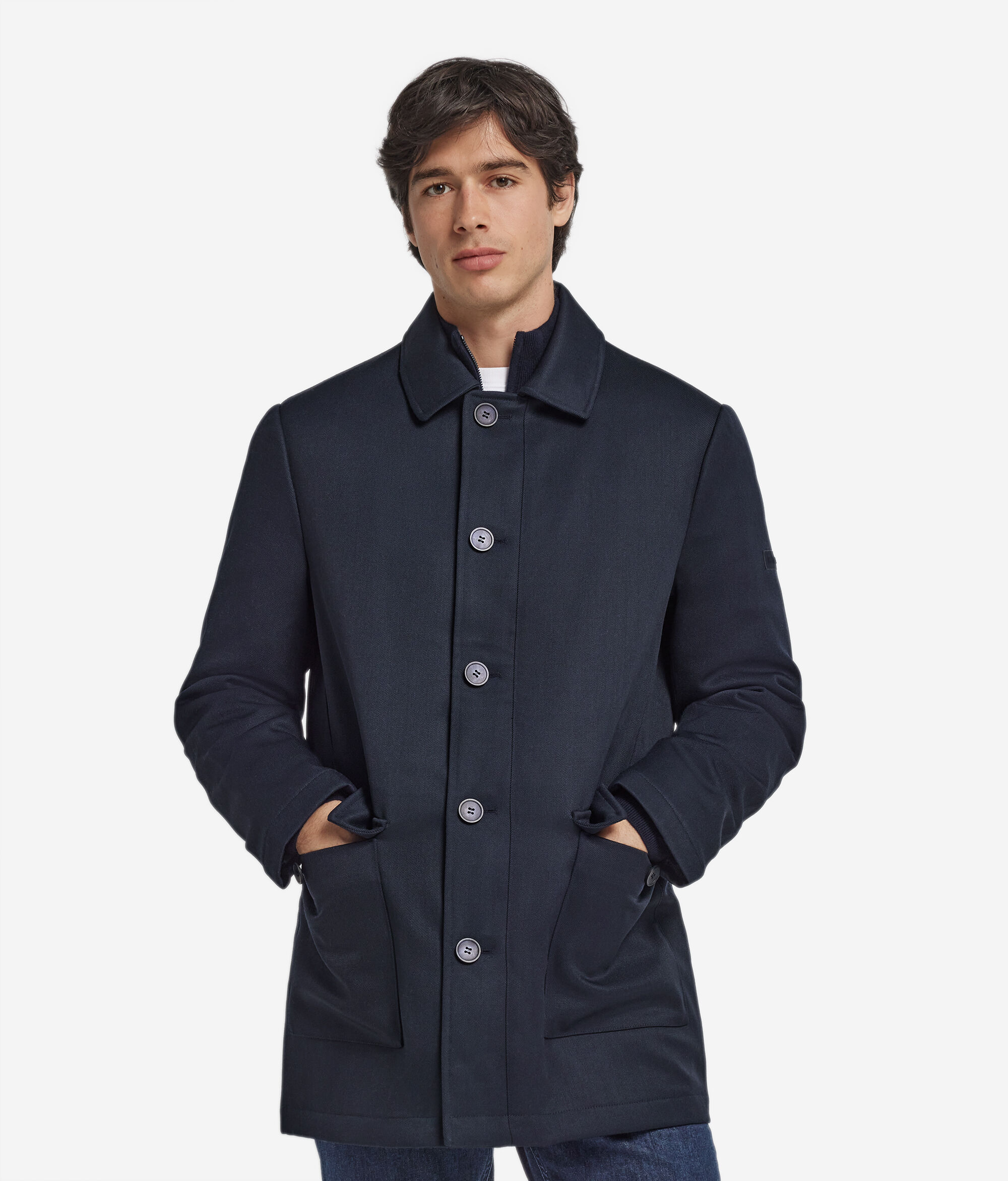Discover the elegance and softness of this wool coat with water-repellent treatment, ideal for facing cooler days with style. The internal down padding, lined with technical fabric, provides practicality and perfect thermal protection. The design is further enriched by pocket both inside and outside, which give the garment a contemporary touch. The balance between classic and modern joined with the use of fine materials make this garment elegant and comfortable, which enriches every wardrobe with discrete though timeless luxury.