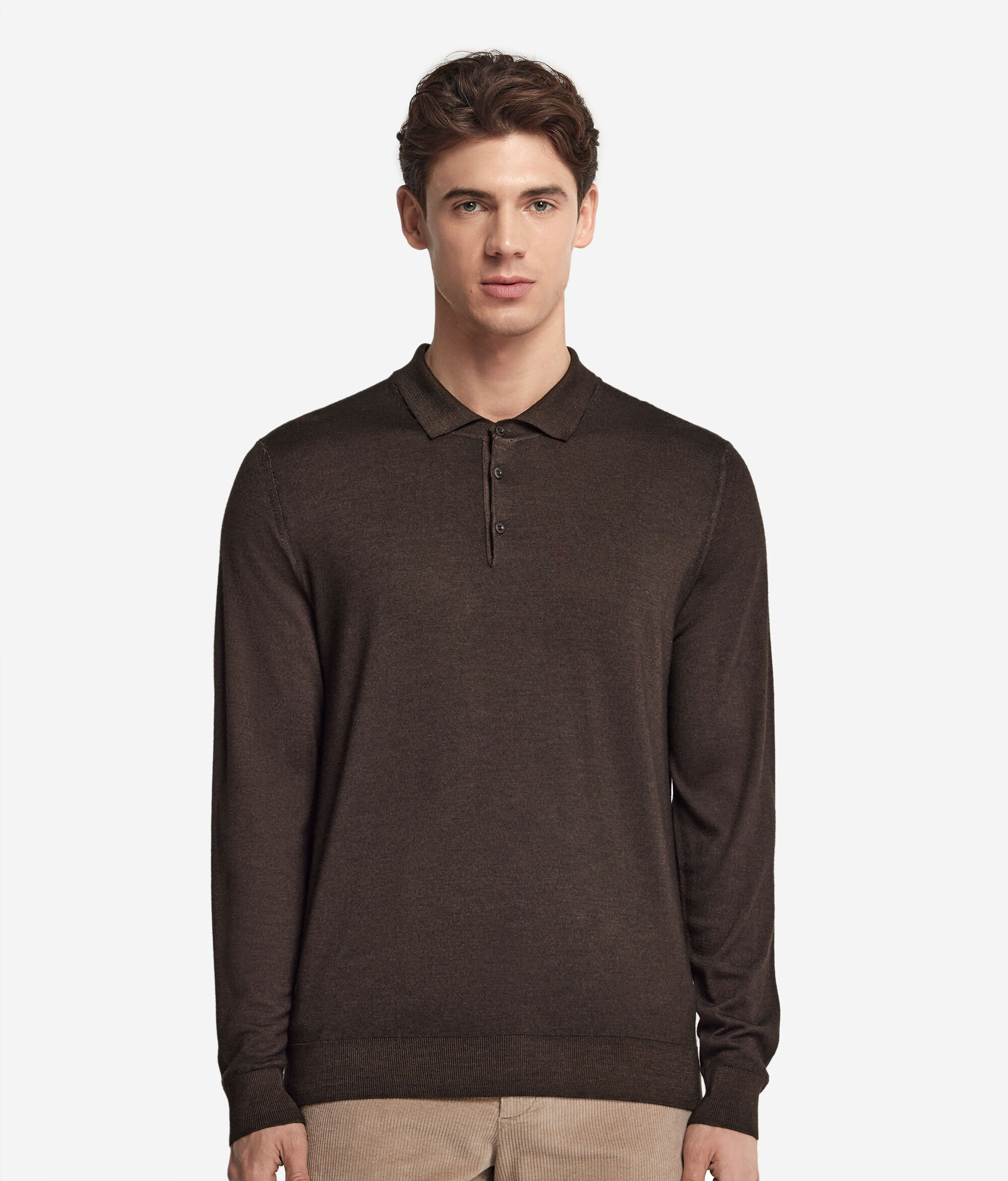 The iconic Ultrafine Cashmere yarn enhances the classic feel of the new long-sleeved polo shirt. The lightness of the yarn and the attention to detail characterise the style of the garment. It is perfect for wearing under a jacket for a traditional look, or paired with a T-shirt for a more casual style.