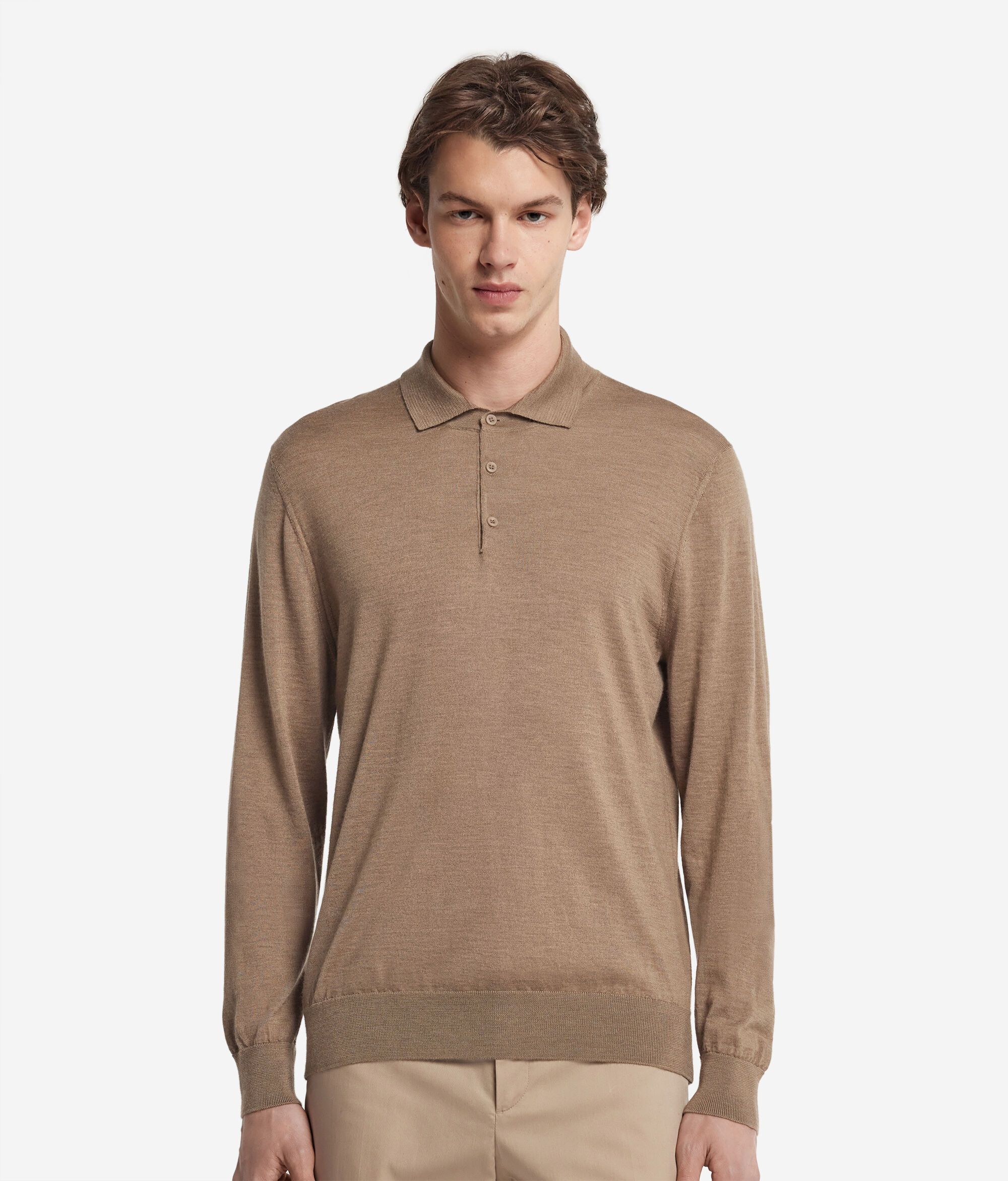 The iconic Ultrafine Cashmere yarn enhances the classic feel of the new long-sleeved polo shirt. The lightness of the yarn and the attention to detail characterise the style of the garment. It is perfect for wearing under a jacket for a traditional look, or paired with a T-shirt for a more casual style.