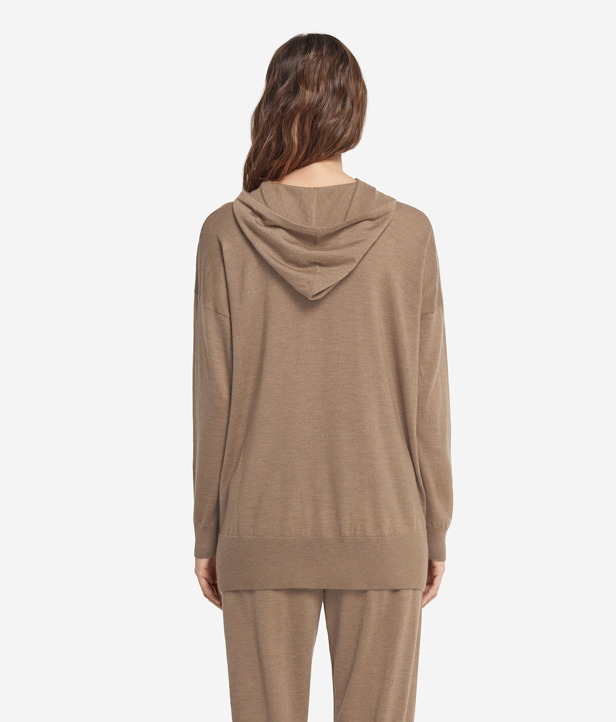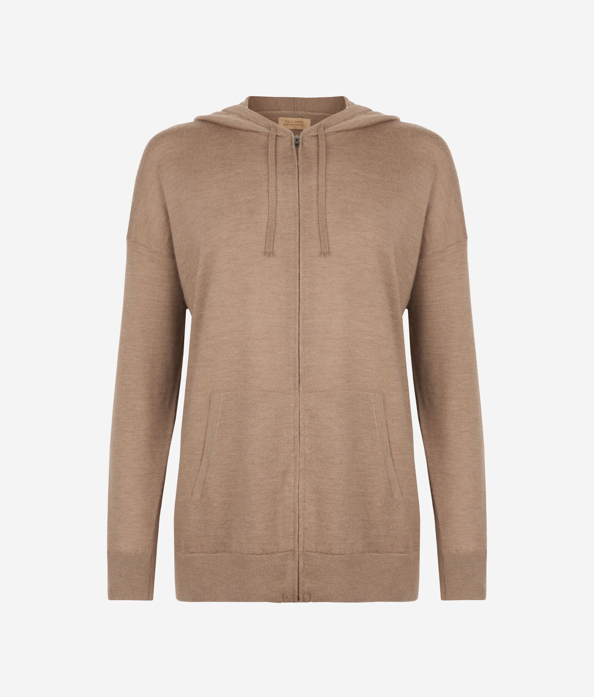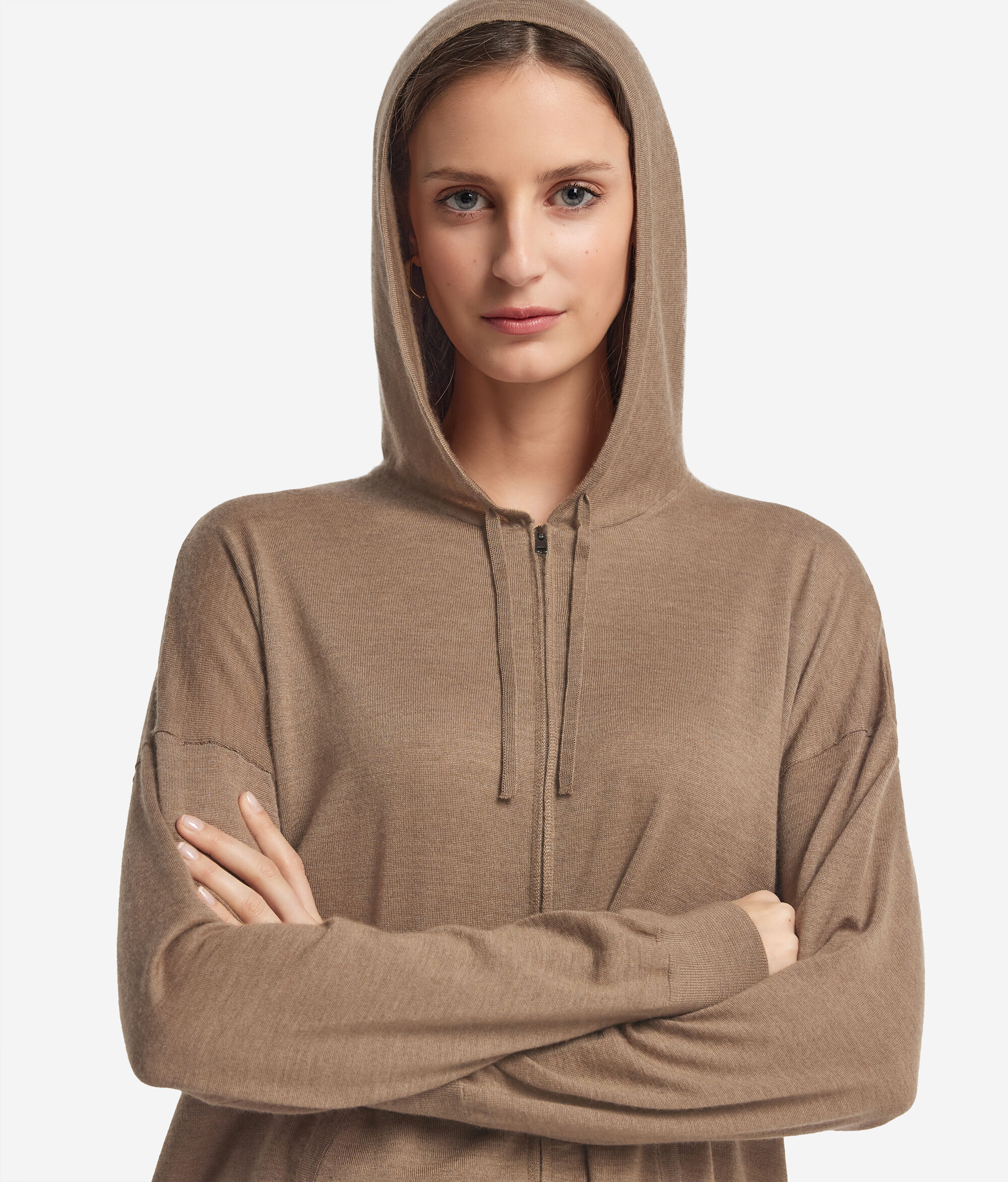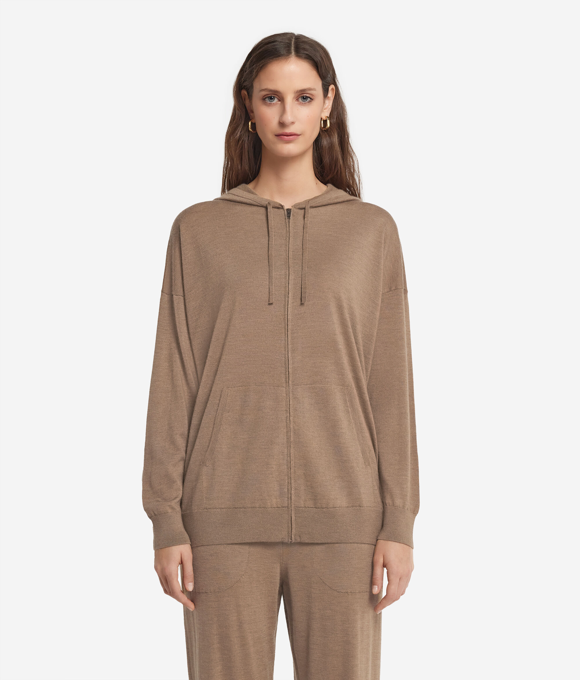 Ultrafine Cashmere sweatshirt with hood. The garment opens with a zip all the way to the bottom, and features open side pockets and slightly dropped shoulders. Relaxed fit.