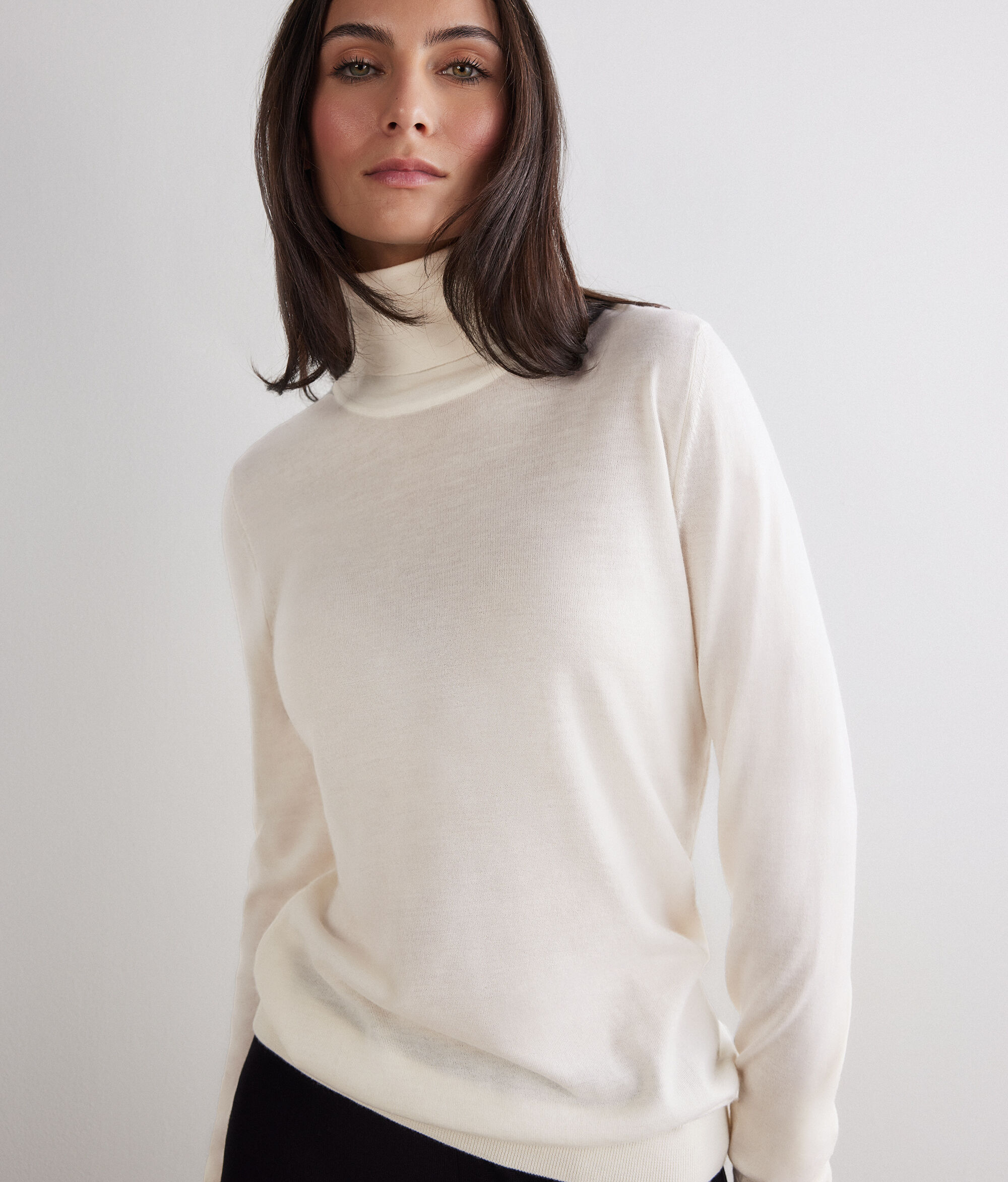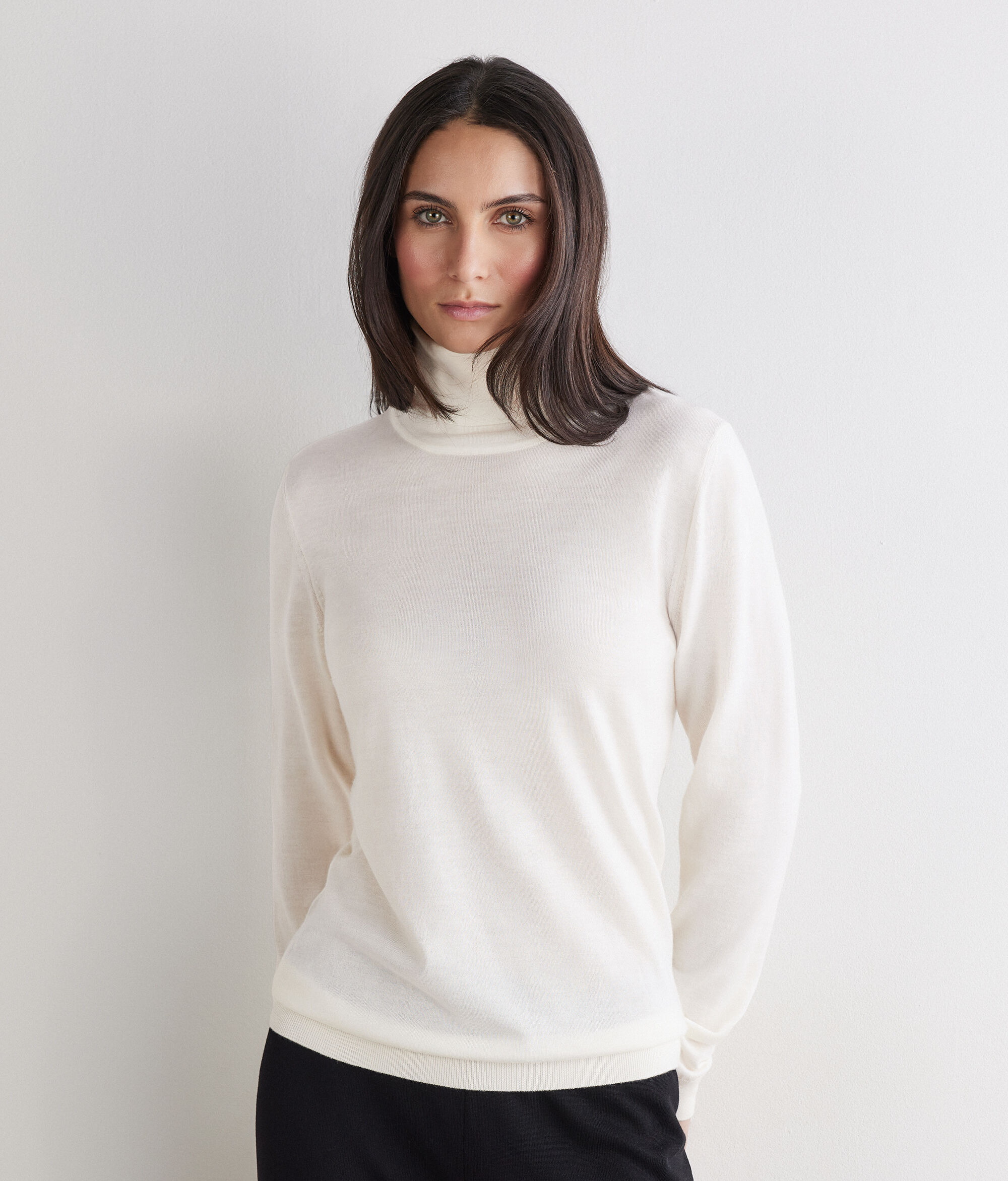 This luxurious Ultrafine Cashmere turtleneck jumper features refined ribbing. With a Regular Fit. We recommend sizing up one to two sizes for the best fit, it is a must-have garment for anyone seeking a timeless and elegant look.