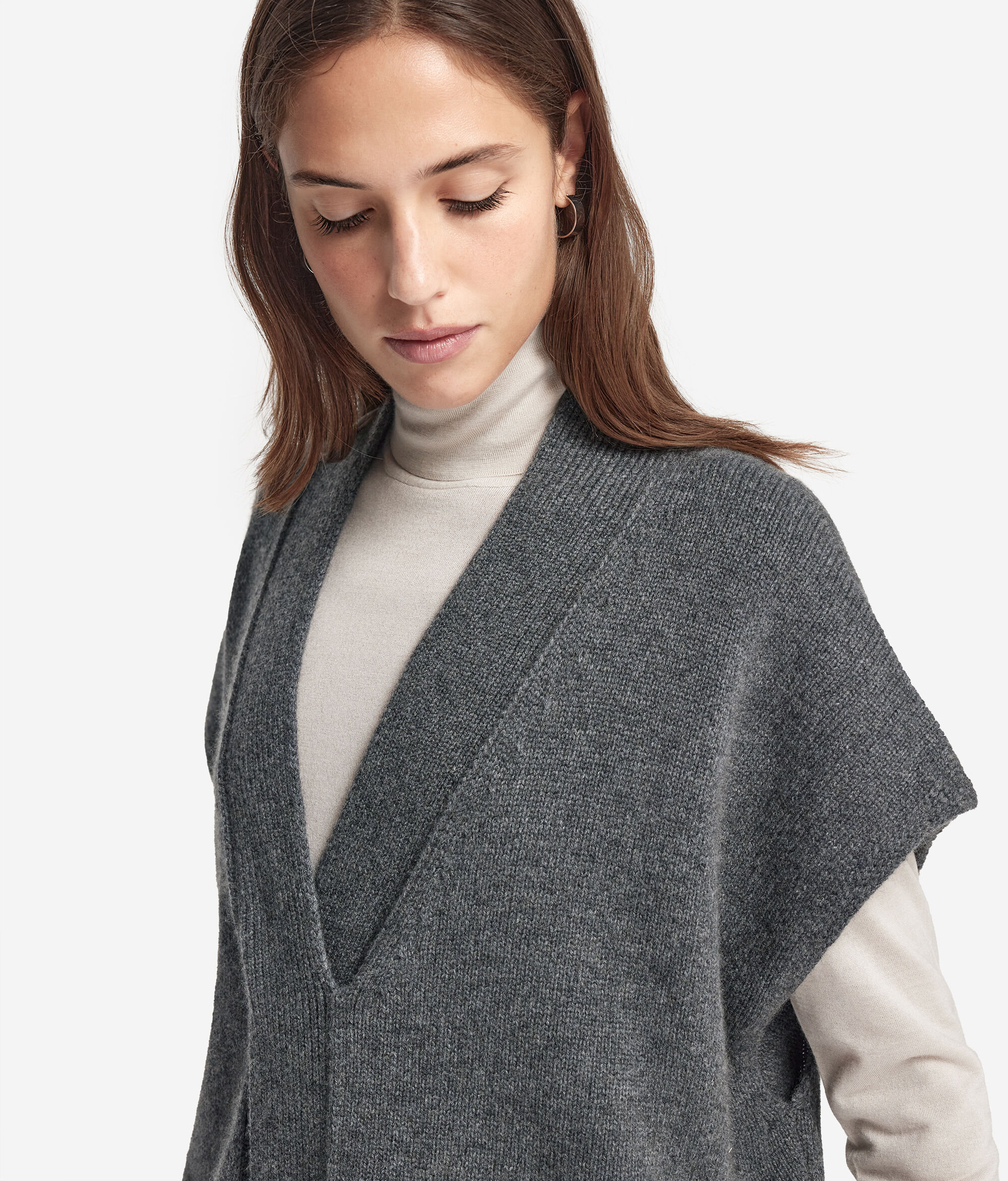 A relaxed fit meets Scandinavian-inspired details in this sleeveless cape made from Ultrasoft cashmere. The design sets itself apart thanks to the front crossover fastening, giving the piece some movement as well as highlighting its elegant form. The cape has a loose fit, creating a modern, sophisticated style that’s perfect for adding a touch of casual, comfortable elegance to any outfit.
