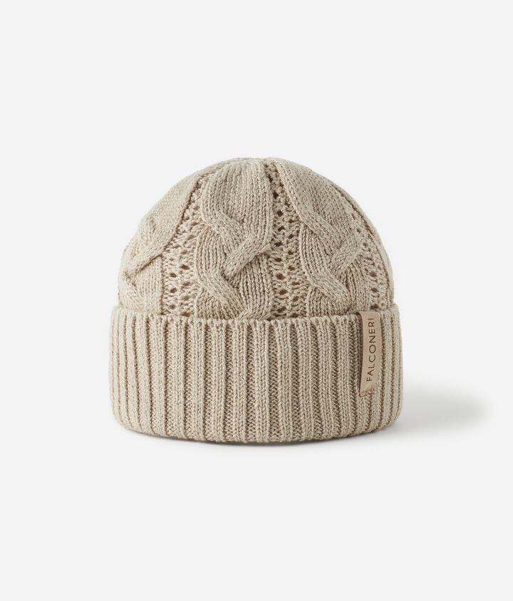 New inLamé wool cable knit hat88,00 €Select your colourGRIGIO LAME'MARSALA LAME'CORDA LAME'Selected color: GRIGIO LAME'
