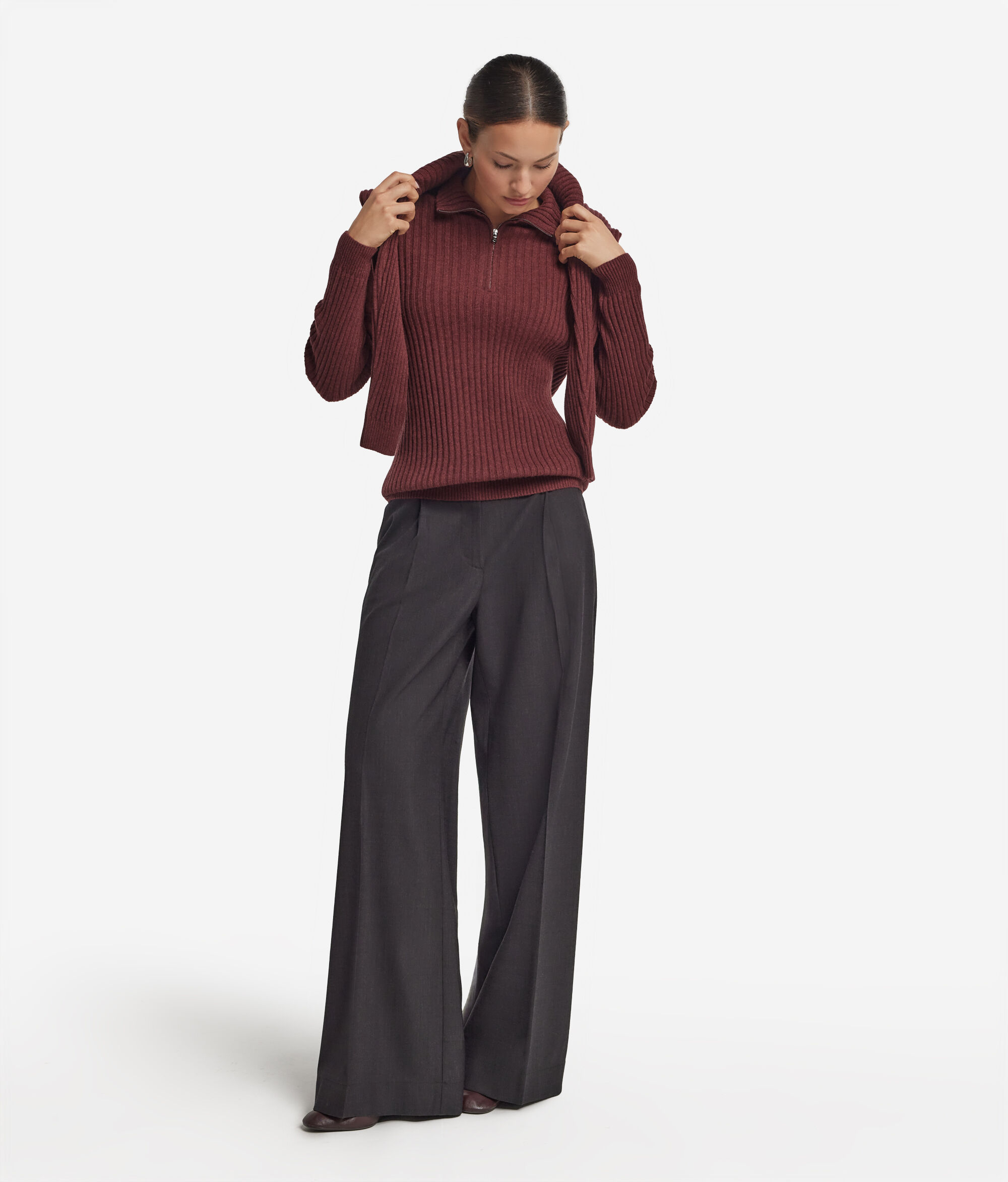 Ribbed Ultrasoft Cashmere jumper with half zip