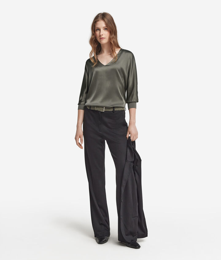 New inSilk satin blouse with jersey inserts218,00 €Select your colourBlackLIGHT MOTHER-OF-PEARL GREYSelected color: Black