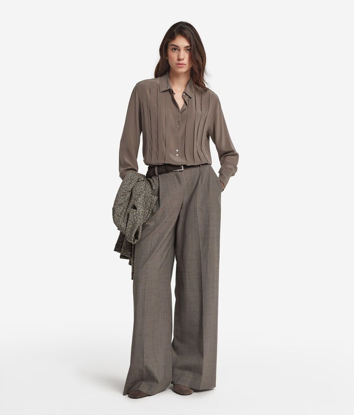 New inSilk pleated shirt238,00 €Select your colourDove Grey BrownWhiteAzzurro Carta Da ZuccheroSelected color: Dove Grey Brown