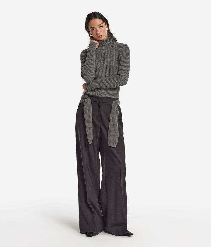 Gerippter Pullover mit kurzem Reißverschluss aus Kaschmir Ultrasoft