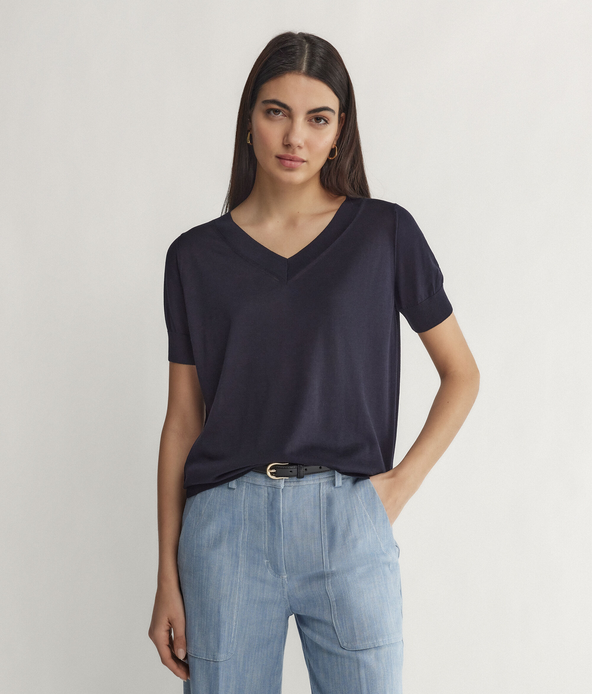 T-shirt à manches courtes et col rond en cachemire ultra-fin