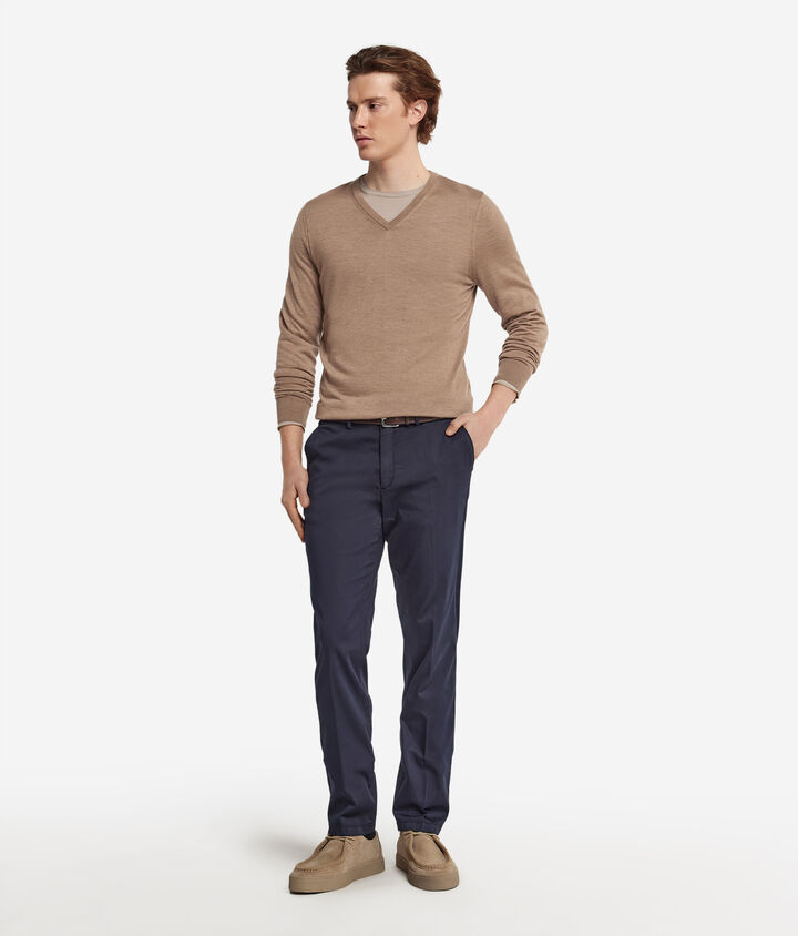 Le pull col V homme convient à tous les types de morphologies, notamment et surtout aux hommes dotés de formes généreuses. Il permet d’affiner le buste et d’allonger le cou, en attirant ainsi les regards sur le visage plutôt que sur le reste. Le conseil Falconeri : tâchez de sélectionner la taille adéquate pour éviter que votre col V ne soit trop plongeant. De cette manière, celui-ci gardera son effet classe et chic.