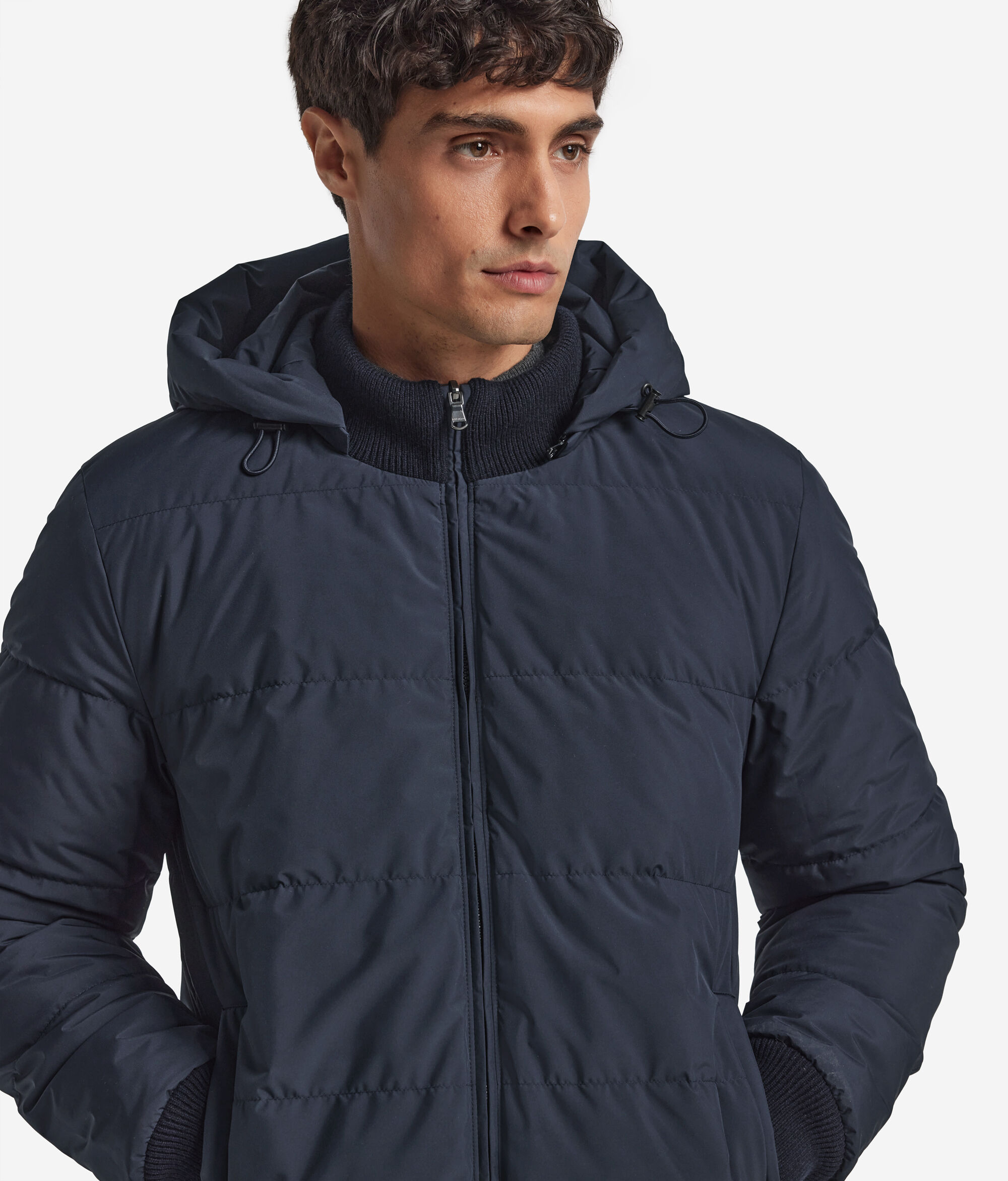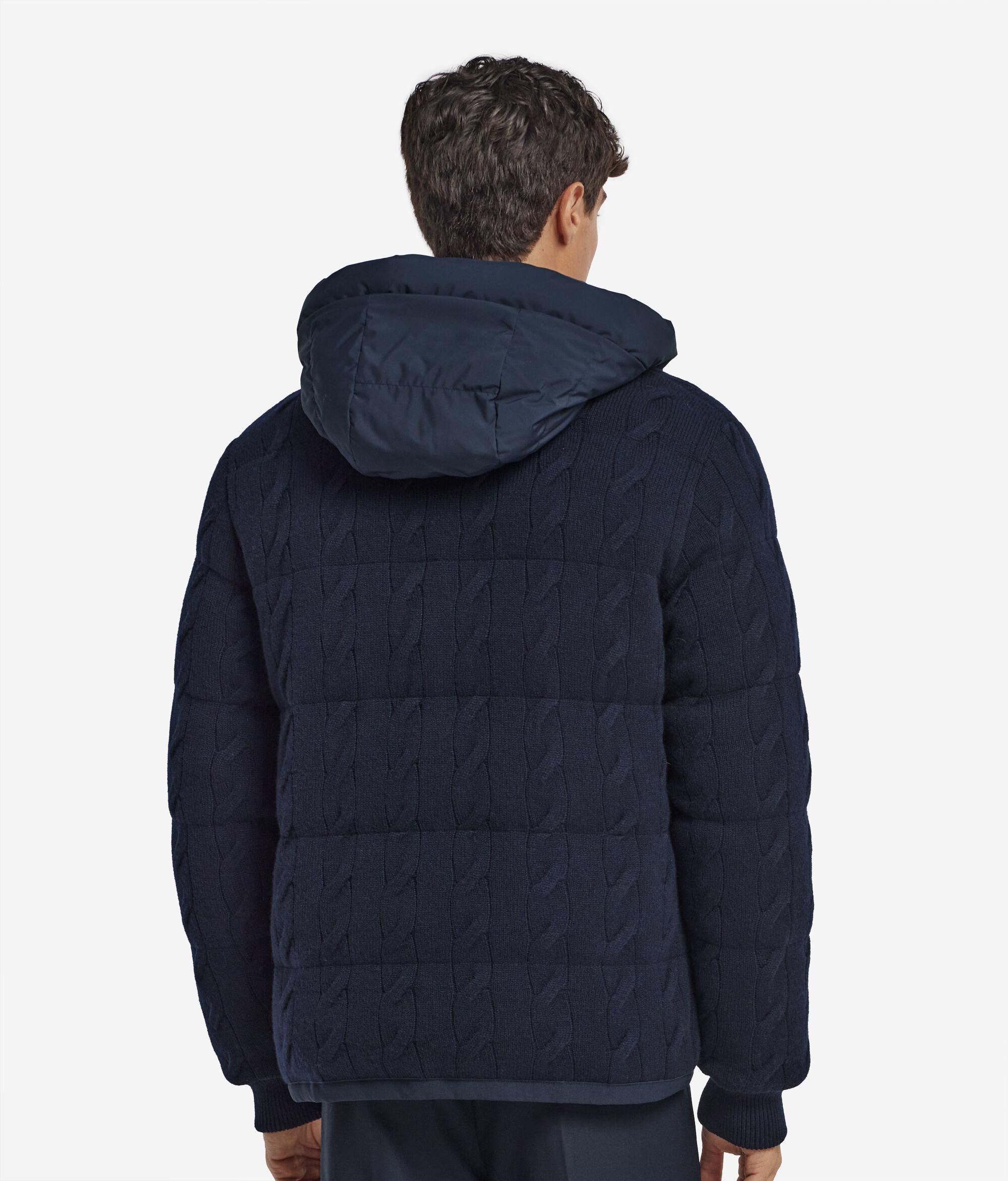 Douillette et sophistiquée, cette doudoune allie un cachemire ultra-doux à un tissu technique fonctionnel. Réversible, elle présente un côté en maille à torsades et un intérieur matelassé avec rembourrage en plume pour garantir chaleur et légèreté. Une capuche en tissu technique, une fermeture éclair réversible et des poches passepoilées côtelées la rendent encore plus polyvalente. Avec sa coupe décontractée, elle allie harmonieusement élégance et protection pour les journées froides.