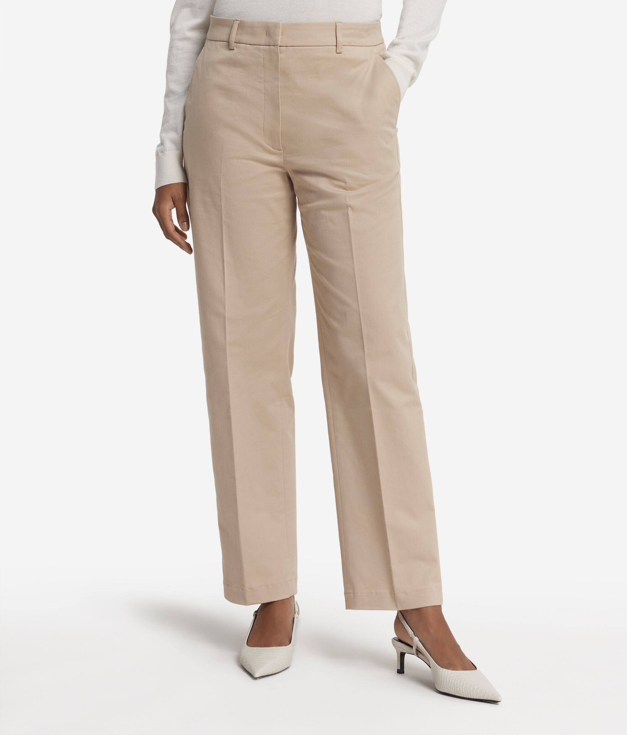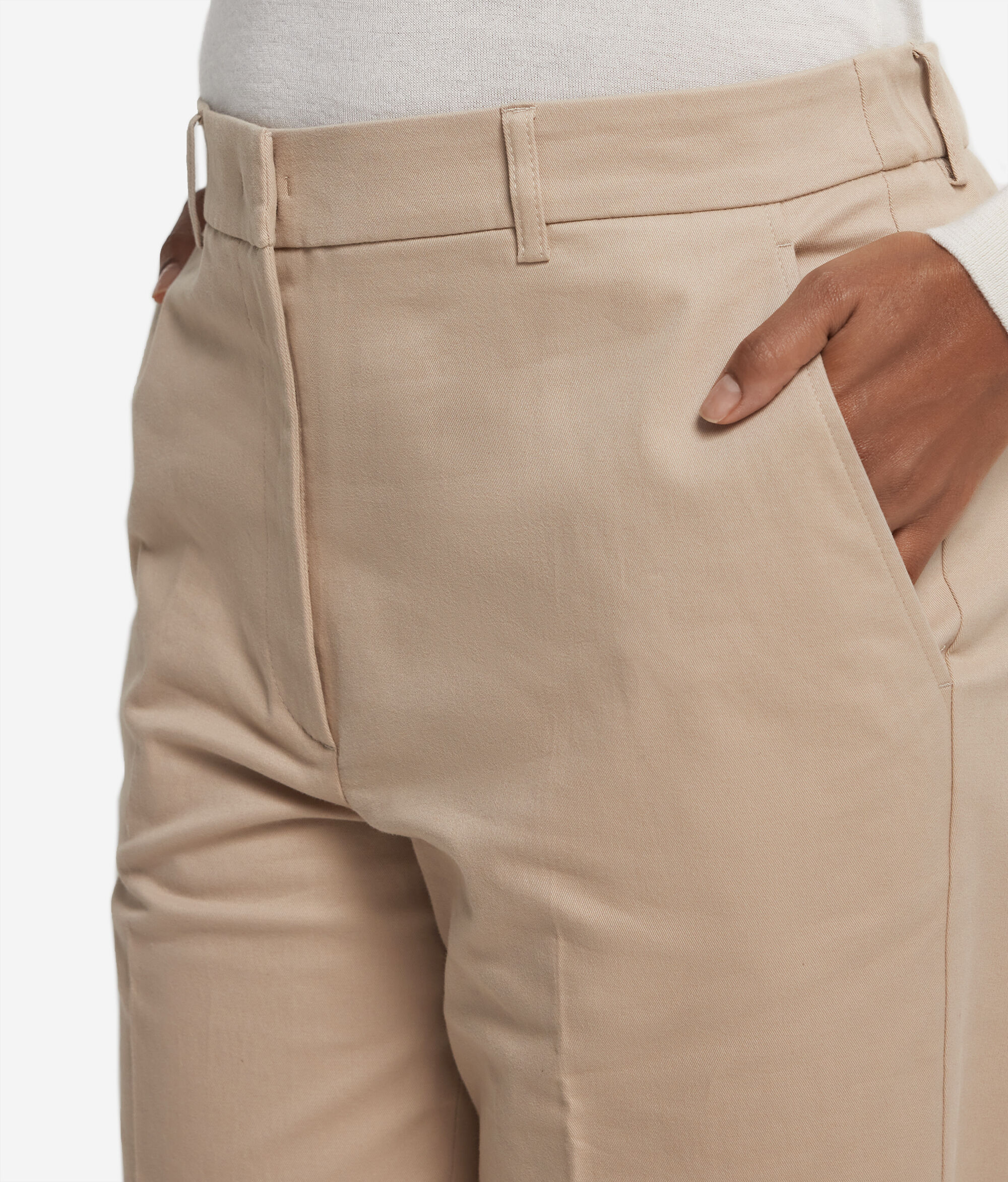 Ce pantalon cigarette s'habille de coton et de cachemire, pour un toucher incomparable et des lignes bien définies. Des poches latérales lui apportent une touche fonctionnelle discrète, tandis que sa coupe standard et sa longueur à la cheville allient harmonieusement élégance contemporaine et praticité quotidienne. Un vêtement polyvalent qui accompagnera naturellement vos tenues professionnelles comme vos moments de détente.