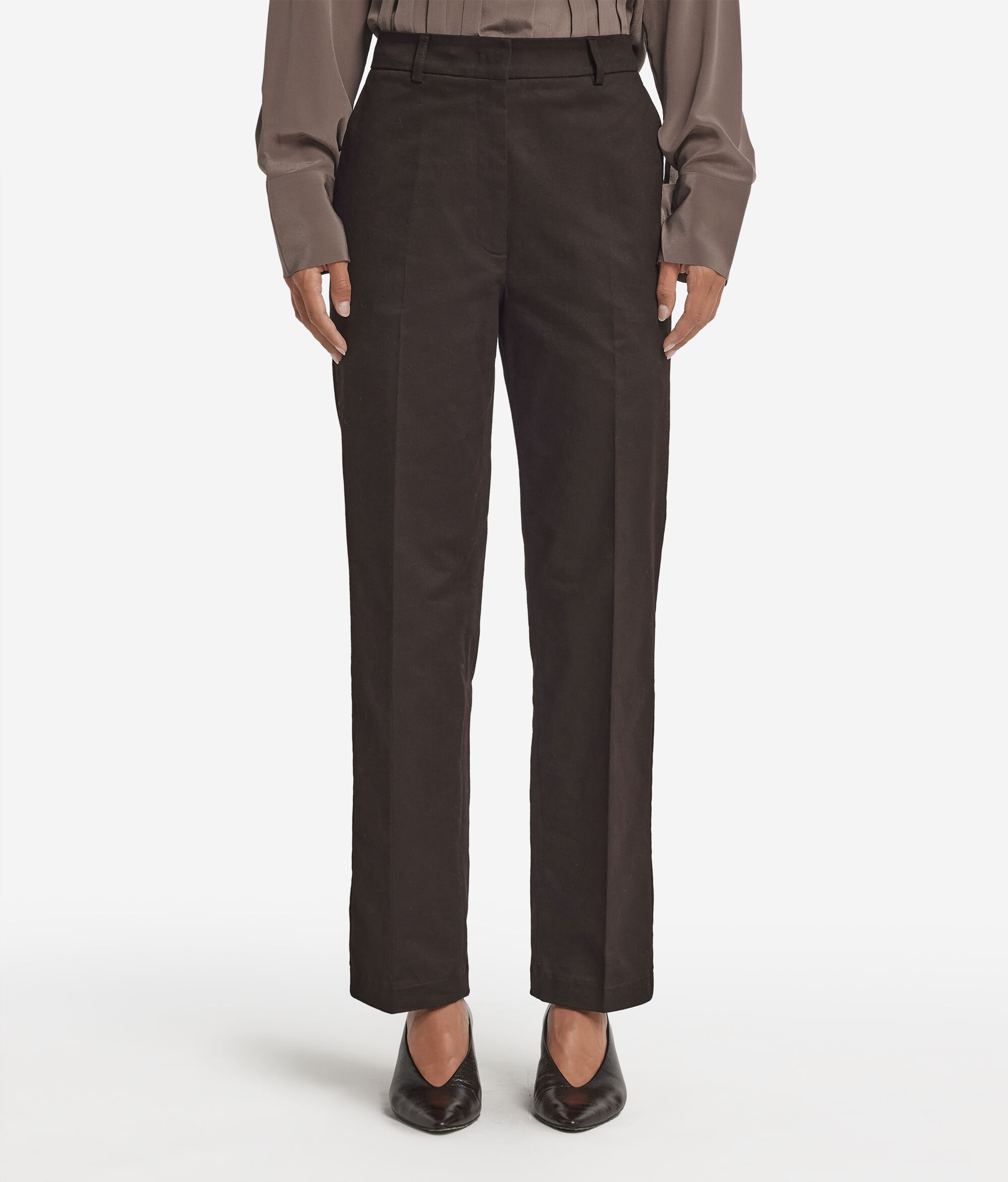 Ce pantalon cigarette s'habille de coton et de cachemire, pour un toucher incomparable et des lignes bien définies. Des poches latérales lui apportent une touche fonctionnelle discrète, tandis que sa coupe standard et sa longueur à la cheville allient harmonieusement élégance contemporaine et praticité quotidienne. Un vêtement polyvalent qui accompagnera naturellement vos tenues professionnelles comme vos moments de détente.