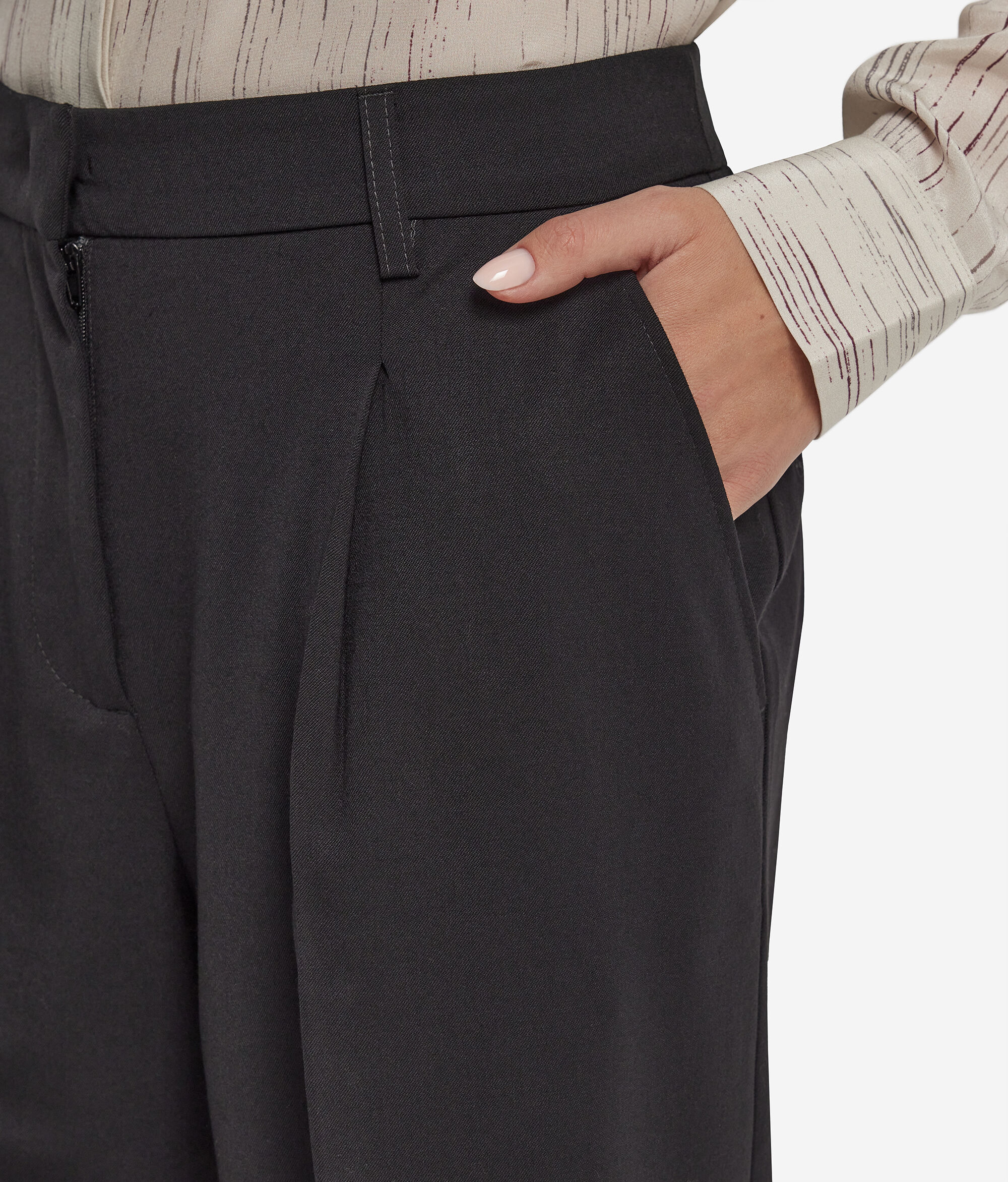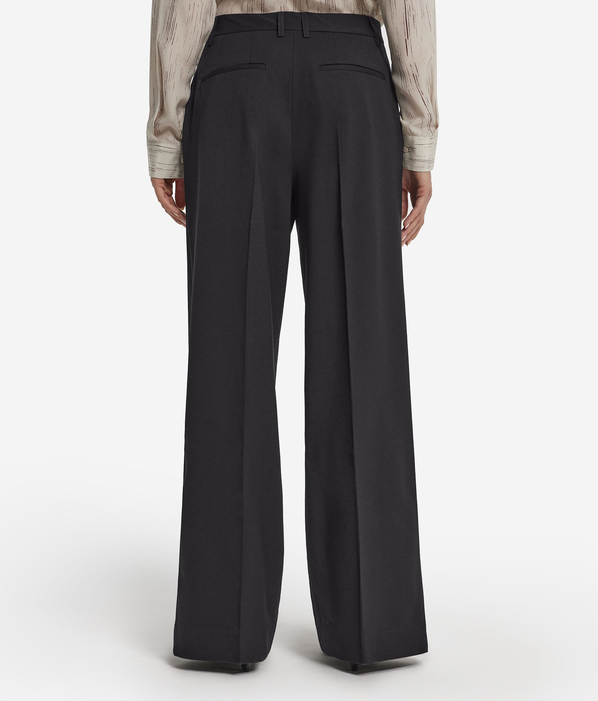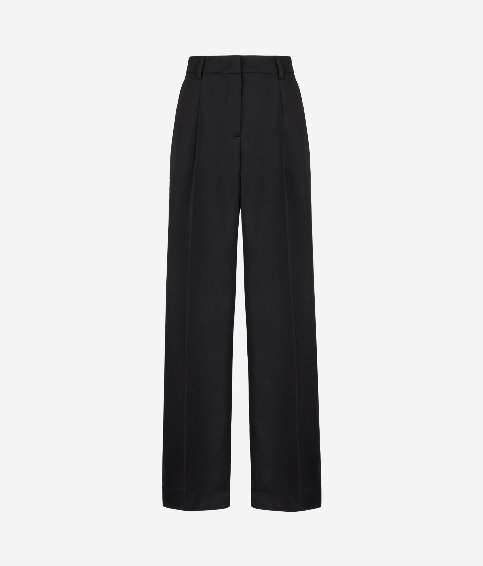 Doux et fluide, ce pantalon large en laine ondulera naturellement à chacun de vos pas. Des pinces sur le devant modèlent la silhouette avec élégance et légèreté, tandis que des poches classiques lui apposent une petite touche artisanale. Doté d'une fermeture éclair avec bouton pour un style épuré, il présente également une coupe décontractée et une longueur au ras du sol pour suivre gracieusement vos mouvements.