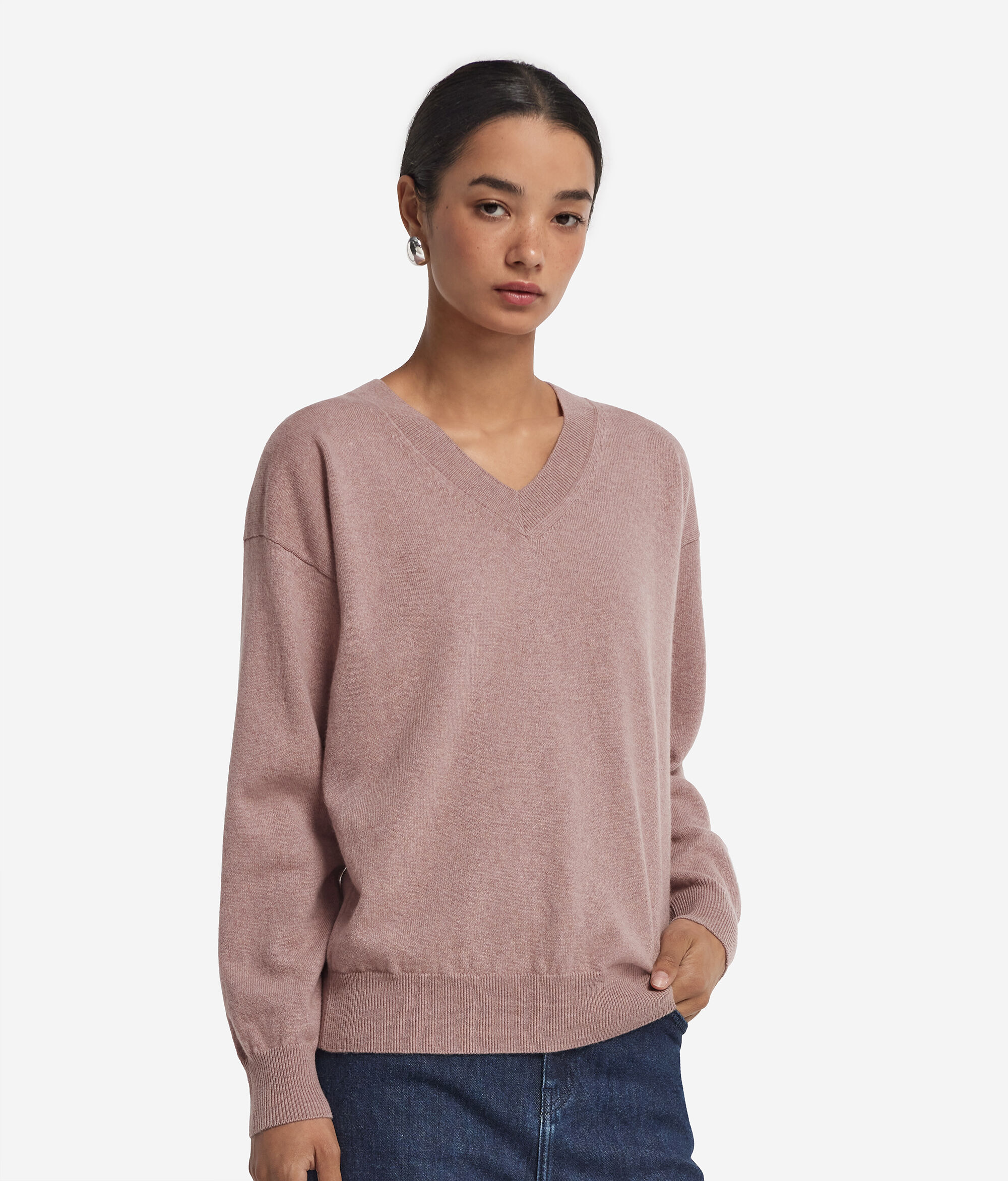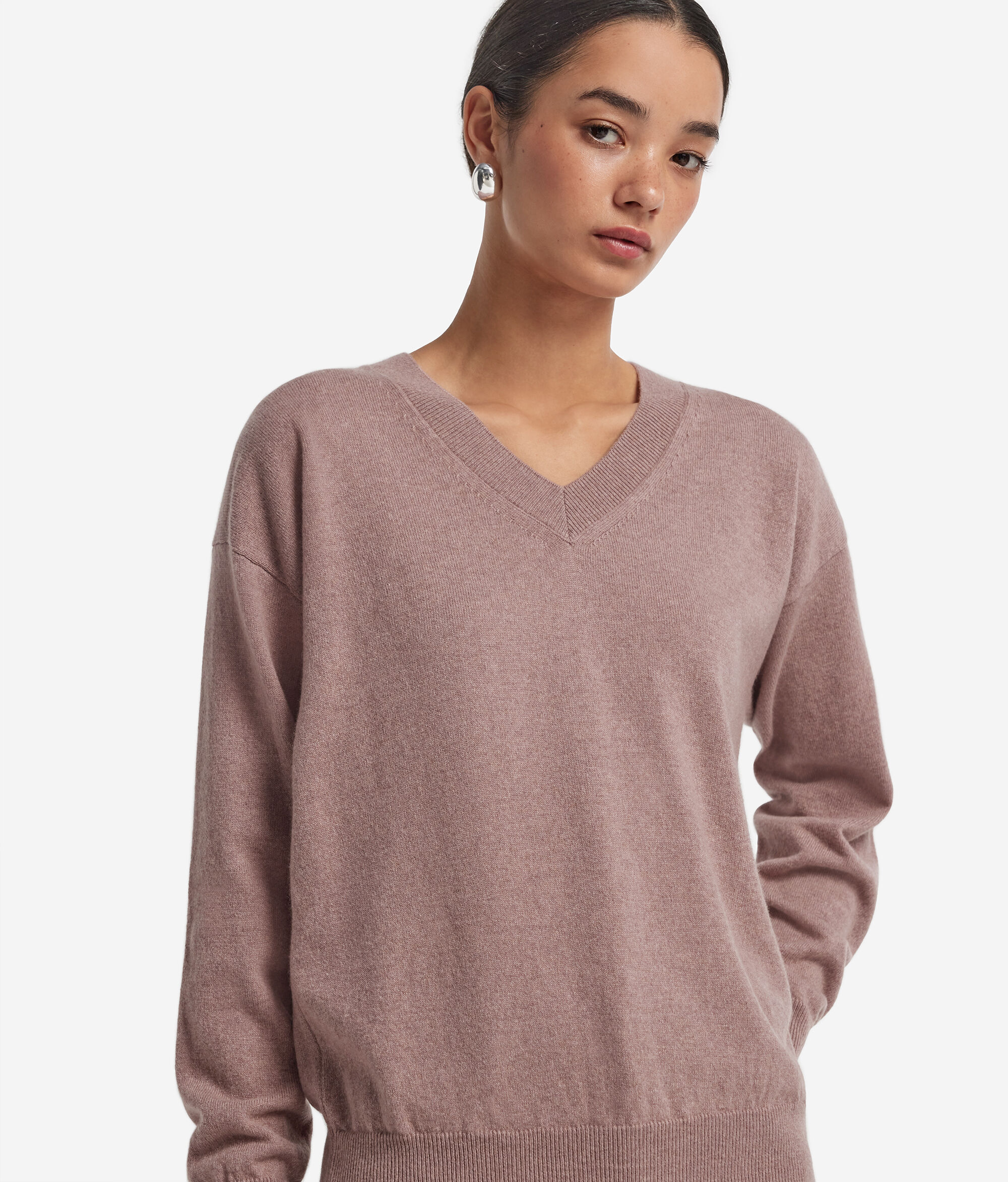 Ce pull à col V en cachemire ultra-doux deviendra la pièce maîtresse de votre garde-robe pour les journées les plus fraîches. Le bord, les poignets et l'encolure sont rehaussés d'une finition côtelée, pour une touche raffinée. Des emmanchures basses et une coupe fluide lui confèrent une allure naturellement décontractée, qui se prête à un style contemporain tendance.