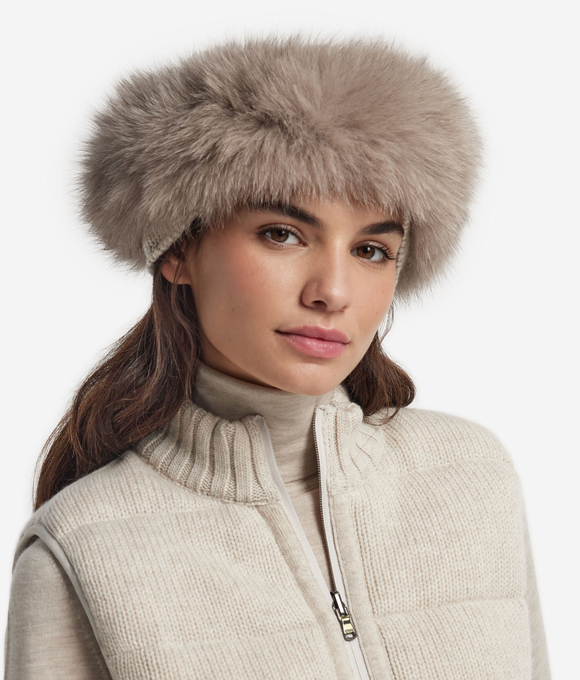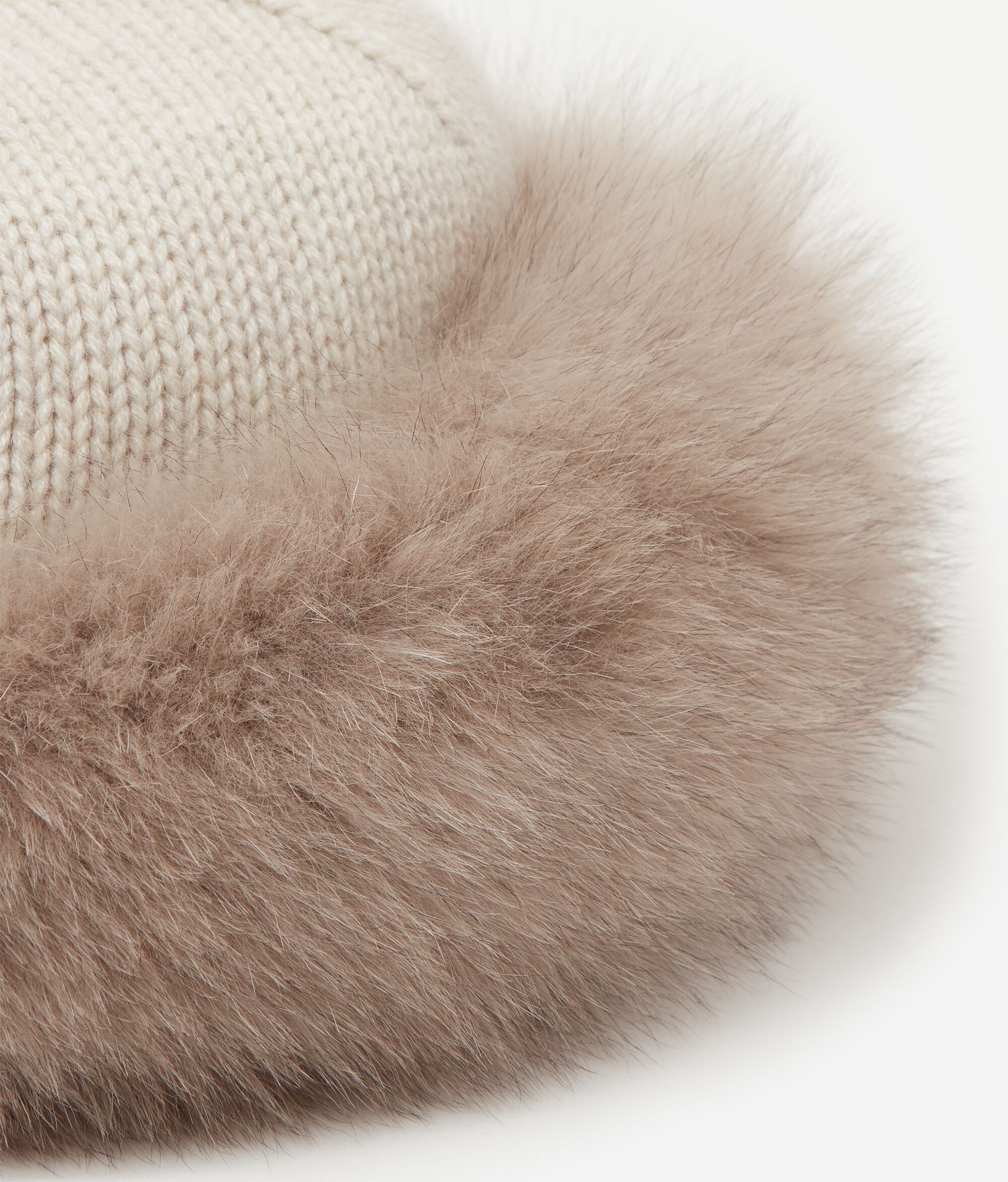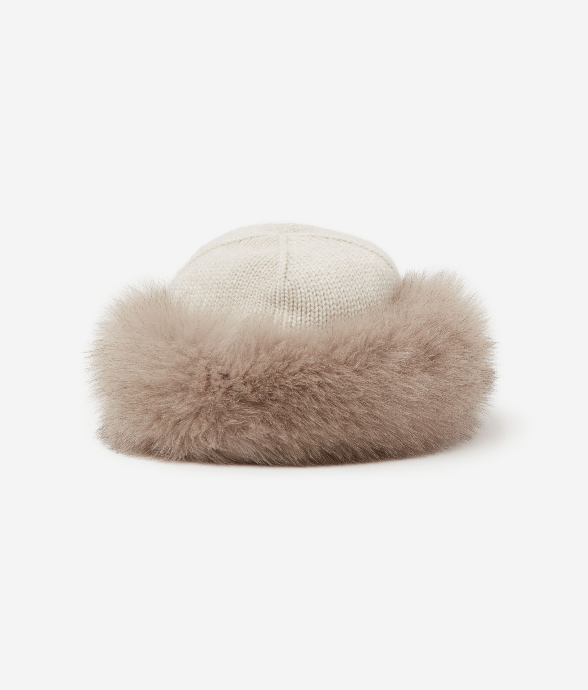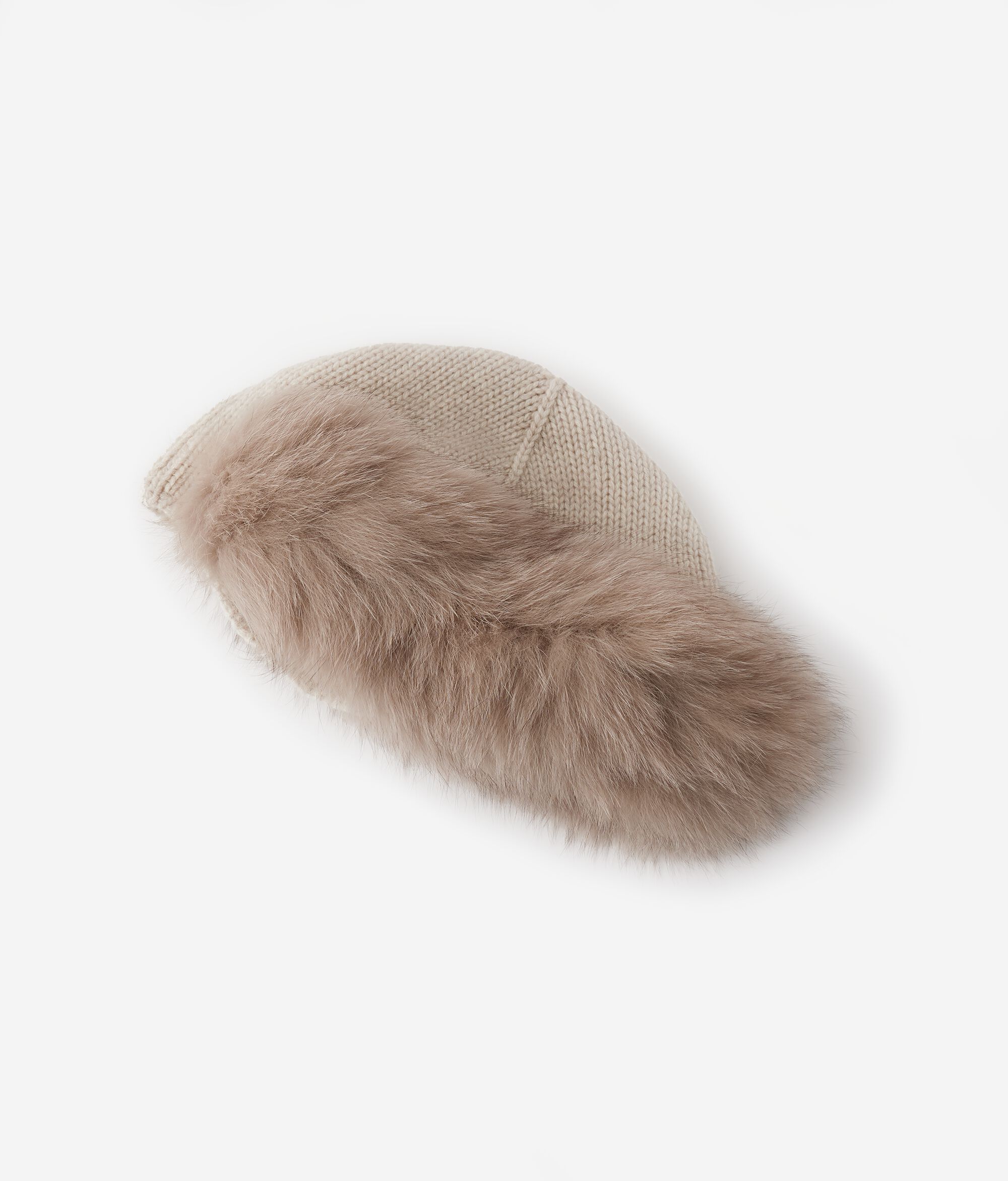 Realizzato in lussuoso cashmere, questo colbacco offre una morbidezza unica e una protezione ideale nelle giornate più fresche. Il bordo in pelliccia di volpe, finemente rifinito, aggiunge un tocco di sofisticata raffinatezza, conferendo al capo un aspetto esclusivo e chic.