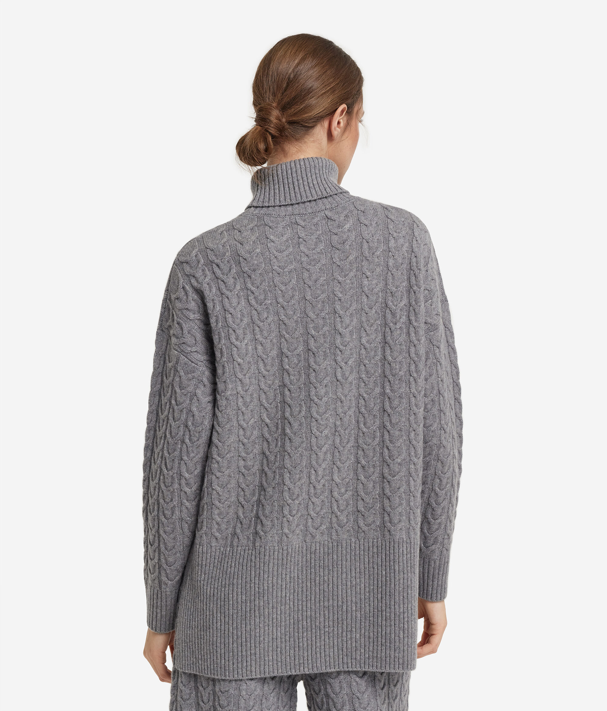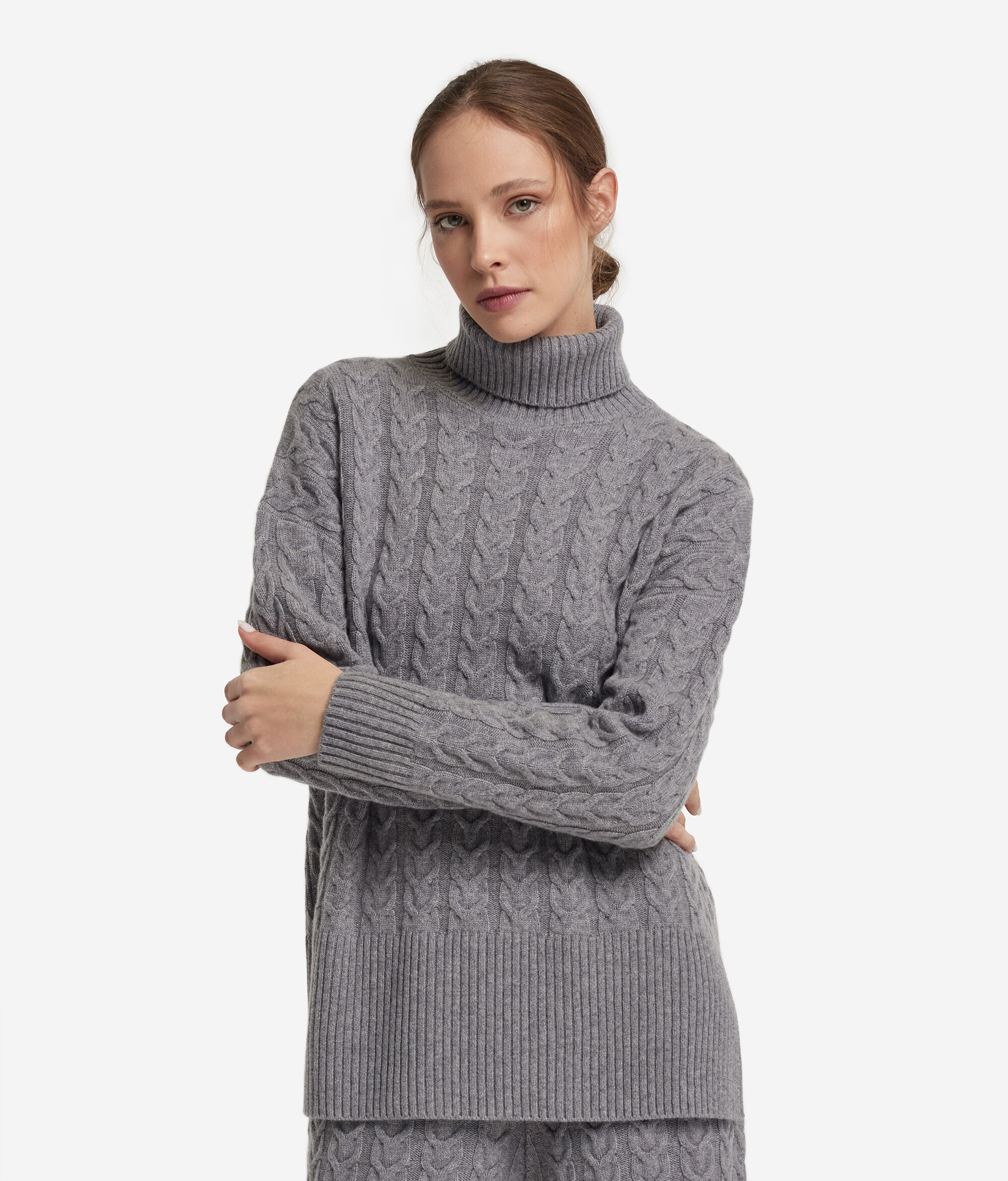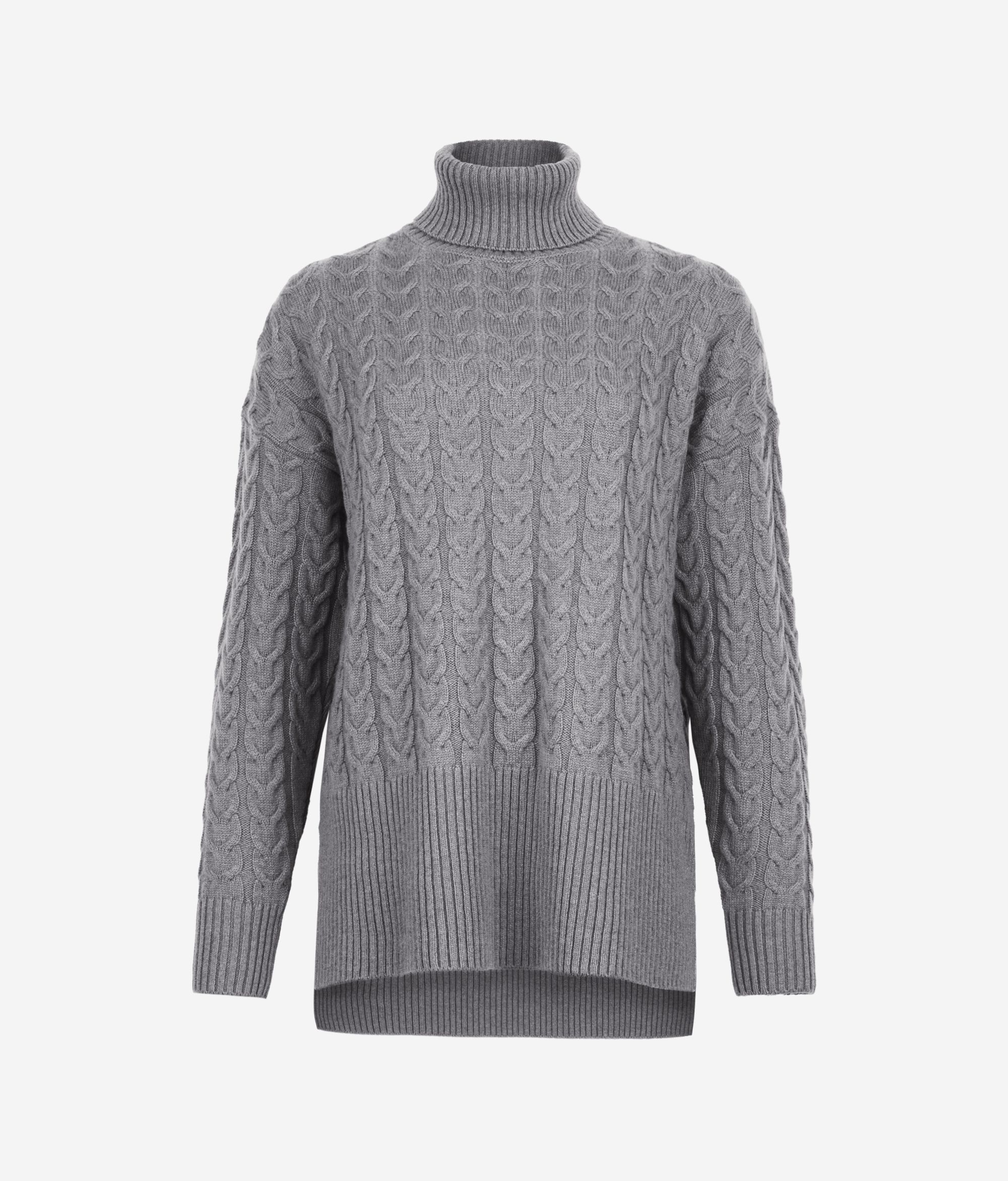 Soffice e avvolgente, questo dolcevita in cashmere ultrasoft unisce comfort e raffinatezza. Il collo alto e la spalla leggermente scesa creano un’allure rilassata, mentre la lavorazione a trecce verticali slancia la linea. I dettagli a coste arricchiscono il design aggiungendo texture, e i delicati spacchi al fondo donano movimento. La lunghezza sotto i fianchi e la vestibilità morbida lo rendono un alleato prezioso durante le giornate più fresche.
