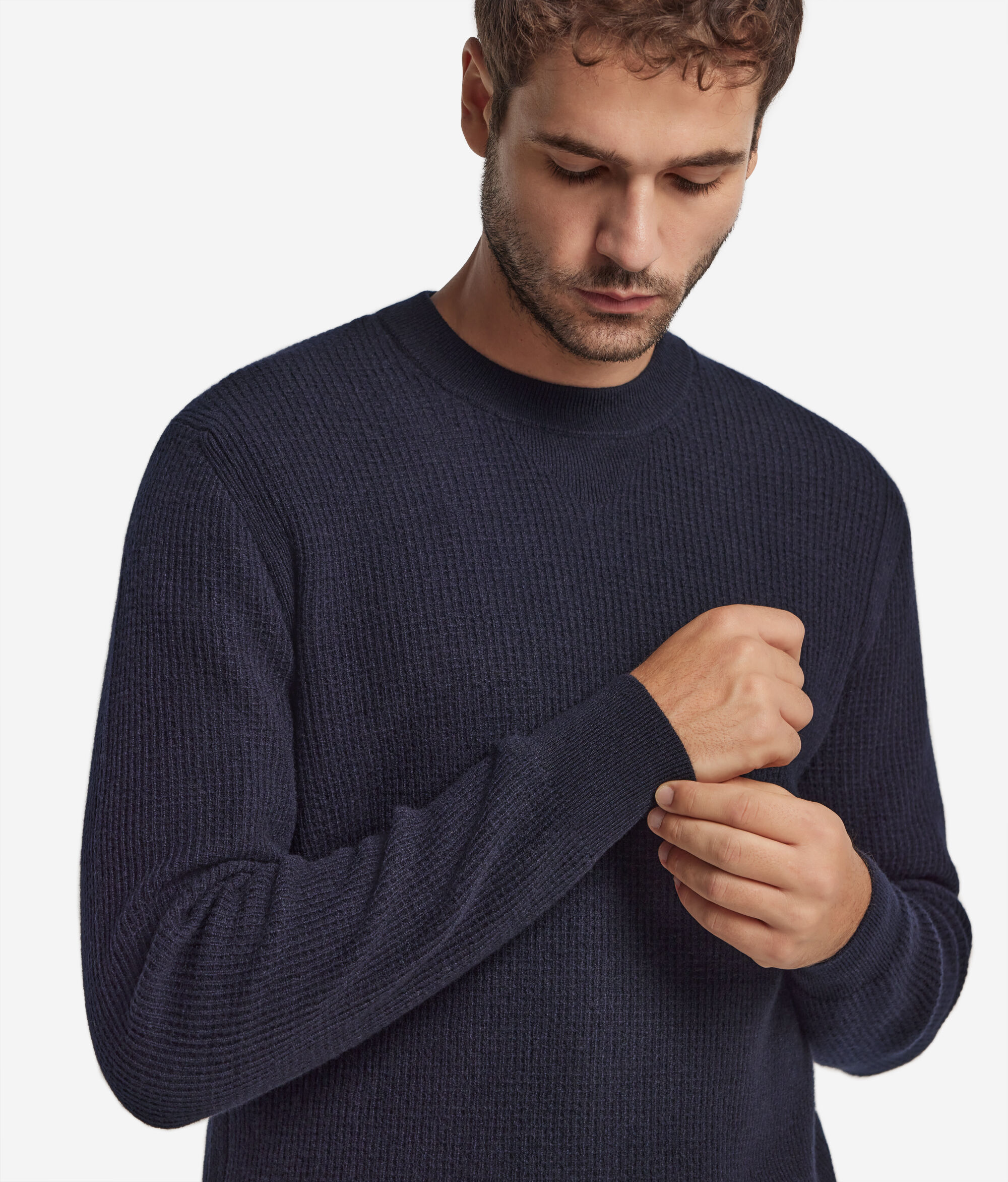 Essenziale e raffinata, questa maglia girocollo in cashmere Ultrasoft esprime la perfetta armonia tra comfort e stile. La lavorazione in maglia punto waffle dona al capo una texture ricercata, arricchita dal girocollo e dai bordi a coste che ne definiscono il carattere contemporaneo. Le maniche lunghe e la vestibilità regolare assicurano equilibrio tra linee pulite e morbidezza avvolgente, trasformando un classico del guardaroba in un’icona di lusso discreto e senza tempo.