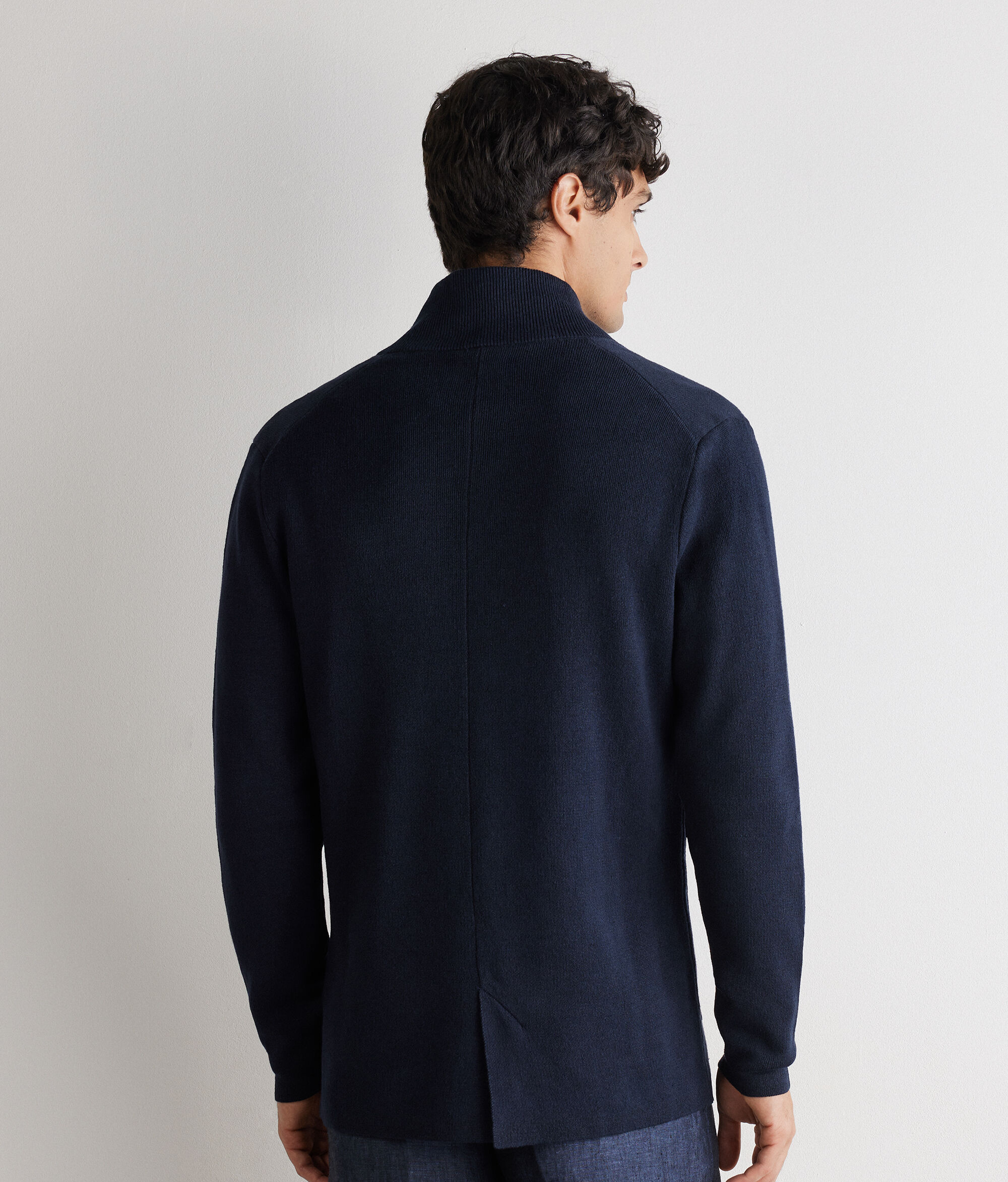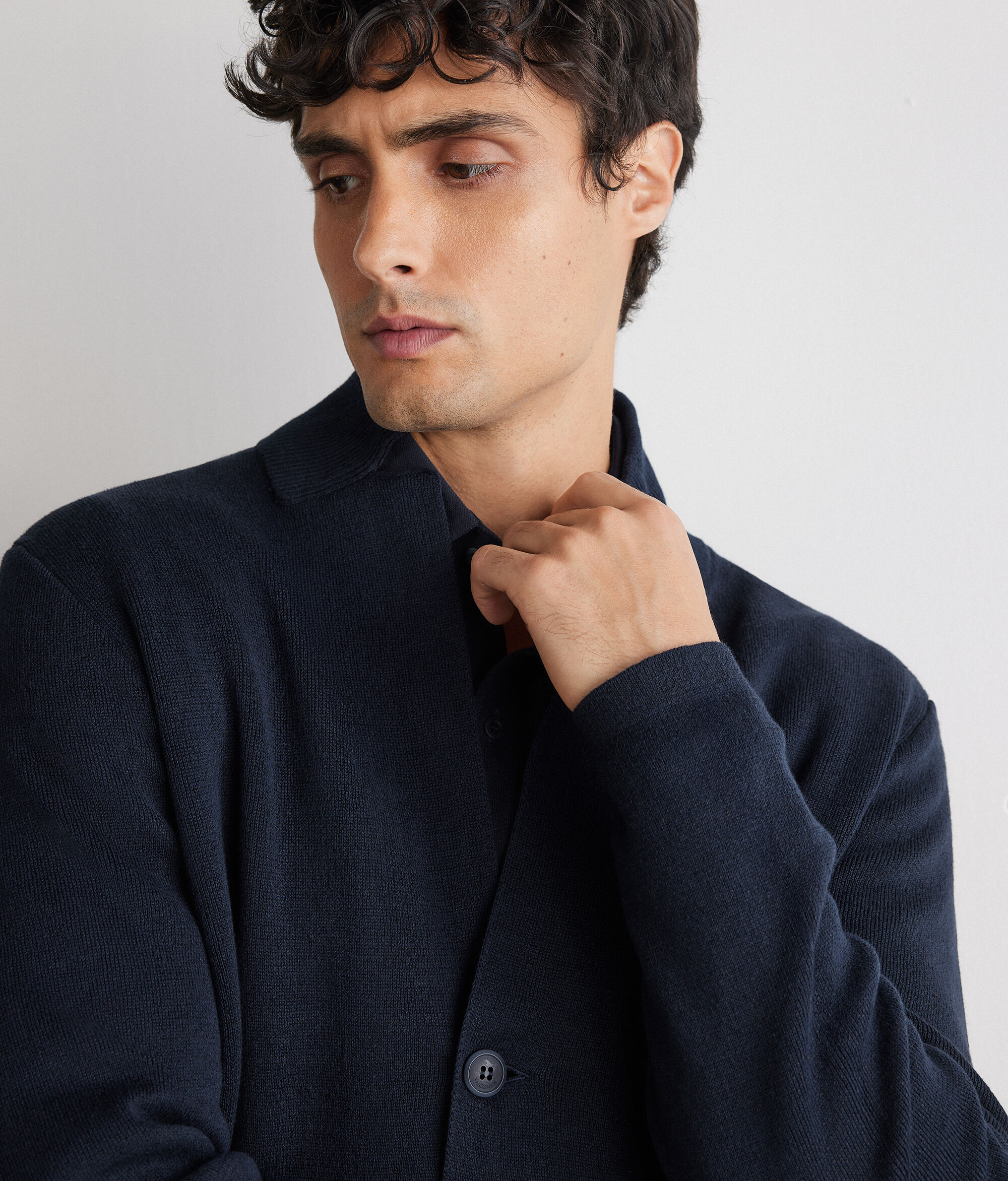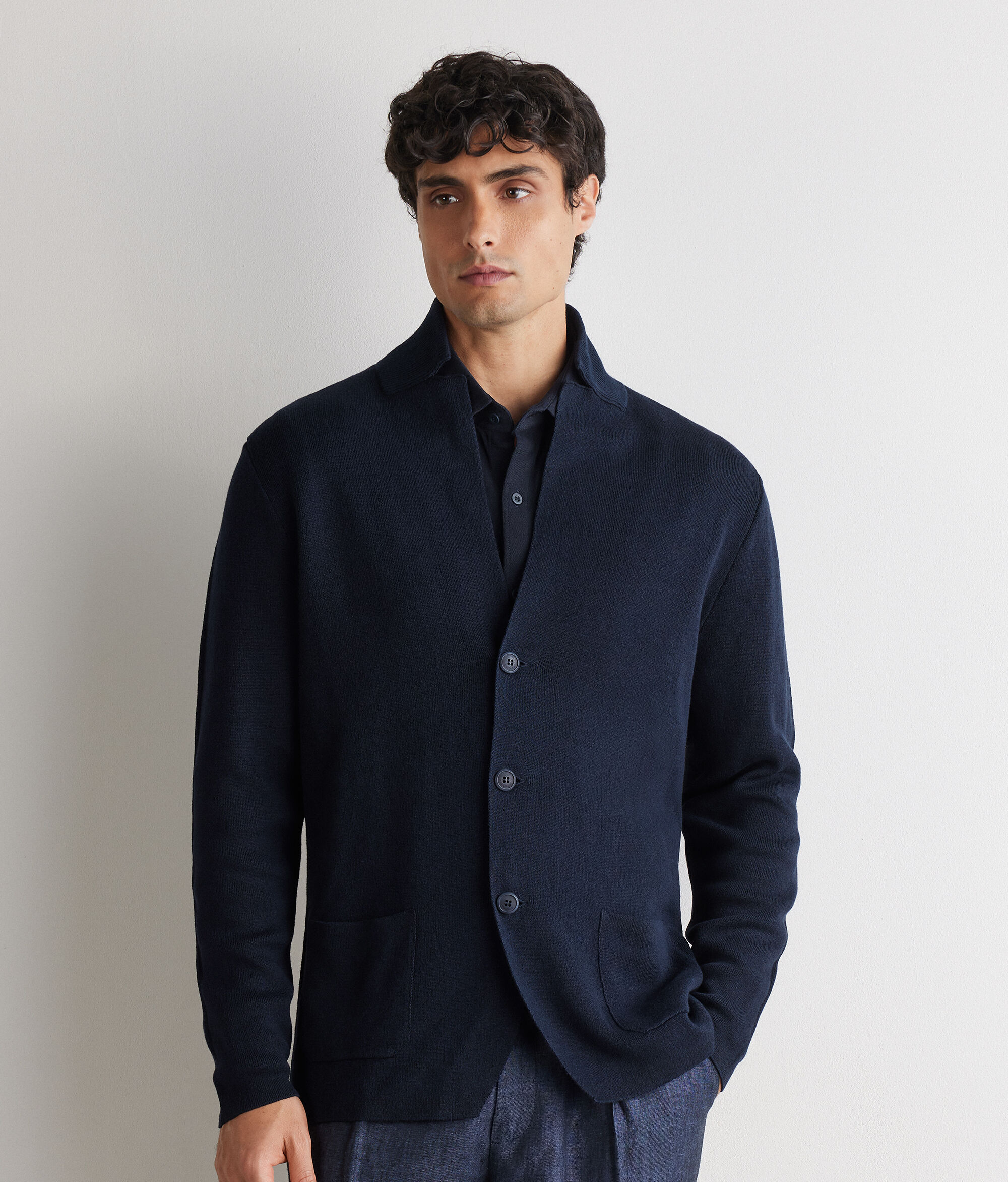 Der Blazer aus Baumwollstrick mit Leinen zeichnet sich aus durch eine edle Stoffstichverarbeitung. Das Modell verfügt über einen gerippten Kragen, ein klassisches Revers und einen mittigen Dreiknopfverschluss. Aufgesetzte Taschen und ein mittiger Schlitz an der Rückseite runden die normale Passform ab und machen ihn ideal für leger-schicke oder auch anspruchsvollere Looks.