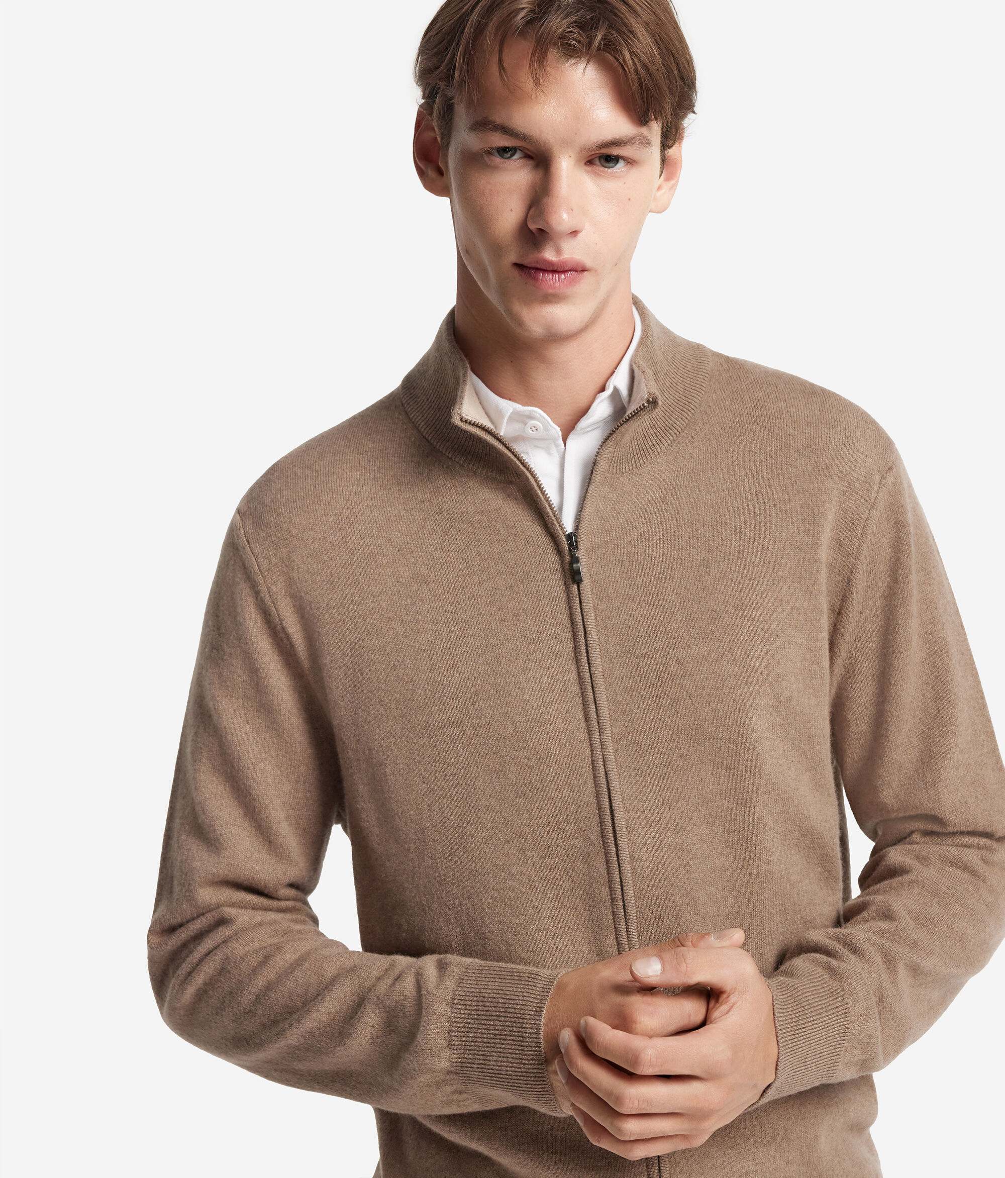 Erleben Sie mit diesem Cardigan aus Kaschmir für Herren ein Kleidungsstück, das nicht nur durch seine außergewöhnlich weiche Haptik überzeugt, sondern auch durch sein stilvolles Design besticht. Die verwendete Kaschmir Ultrasoft-Qualität sorgt für ein angenehmes Tragegefühl, das Sie den ganzen Tag über begleitet. Die lange Ärmelkonstruktion und die normale Passform bieten ausreichend Bewegungsfreiheit und verleihen dem Modell eine lässige Eleganz, die vielseitig einsetzbar ist. Diese Strickjacke mit Reißverschluss darf in keiner Garderobe fehlen, denn sie vereint Komfort und Funktionalität auf eindrucksvolle Weise. Mit ihrem durchgehenden Reißverschluss lässt sie sich mühelos an- und ausziehen, und der Verschluss wirkt dabei als dezentes Stil-Element, das das moderne Erscheinungsbild unterstreicht. Der feine Kaschmir verleiht dem Cardigan eine zeitlose Optik, die in unterschiedlichen Situationen überzeugen kann. Dank der sorgfältigen Verarbeitung und der hochwertigen Garne bleibt die Jacke lange formstabil und behält ihre weiche Beschaffenheit. So entsteht ein langlebiges Kleidungsstück, das sich durch kompromisslose Qualität und ein anspruchsvolles Design auszeichnet. Entscheiden Sie sich für ein Modell, das den Spagat zwischen Komfort und Stil mühelos schafft und jedem Herrenoutfit eine besondere Note verleiht.