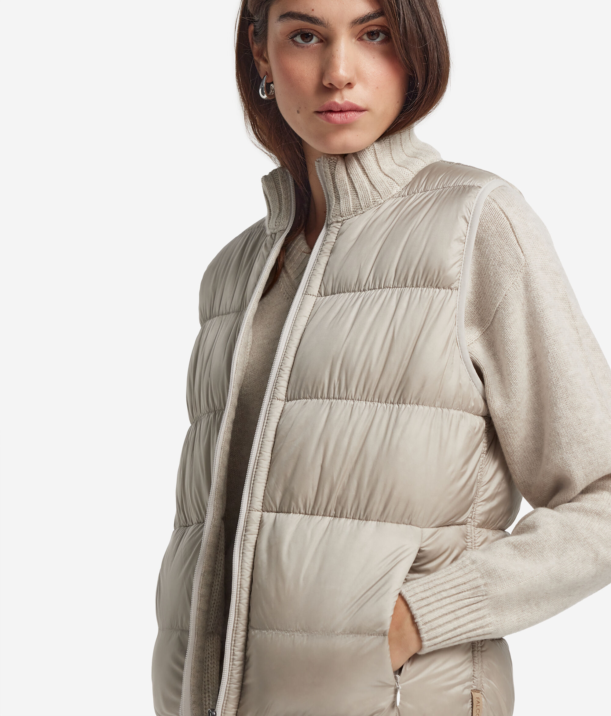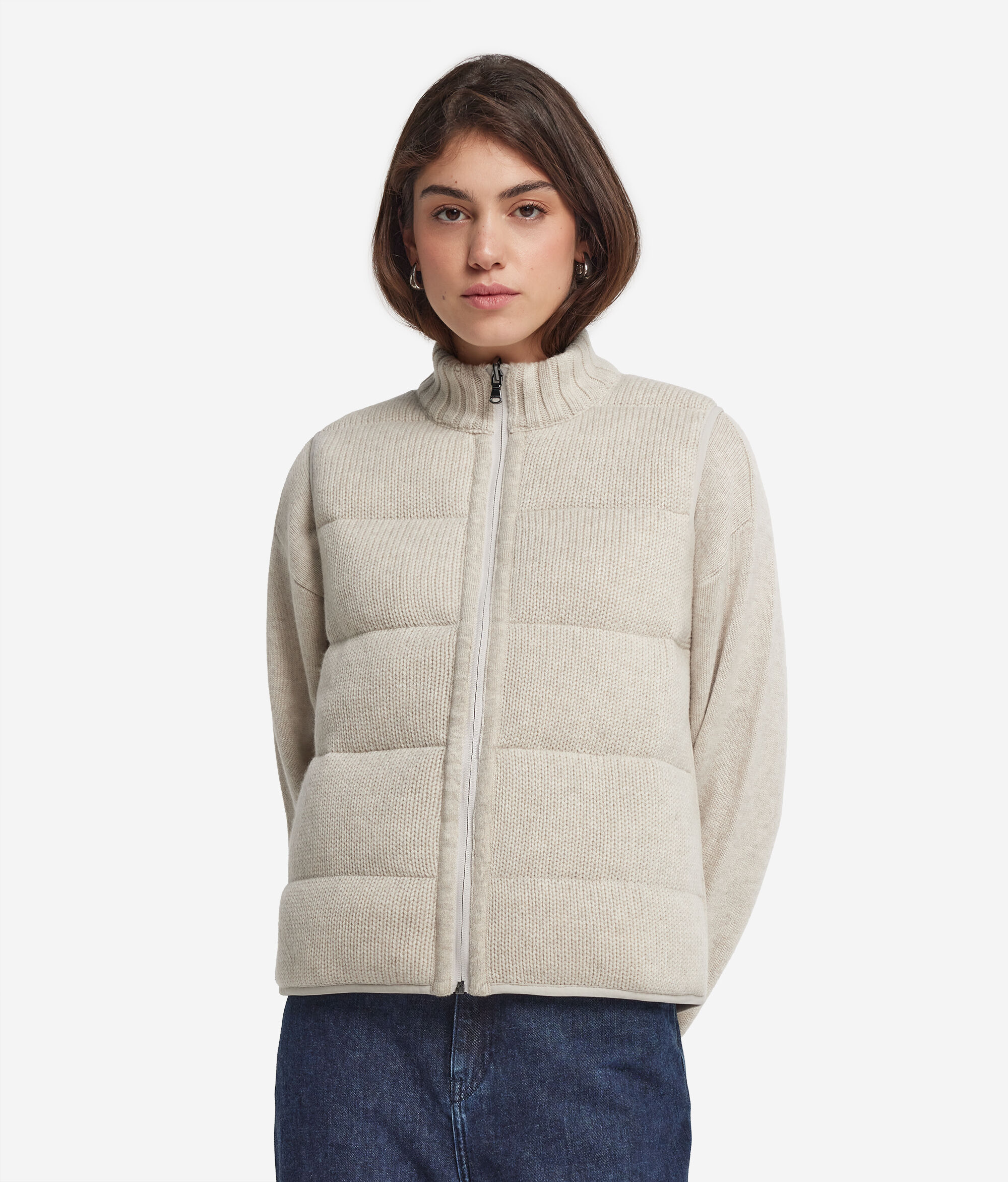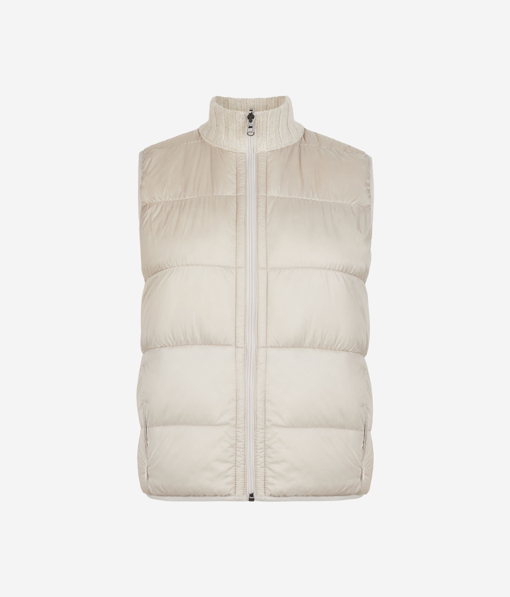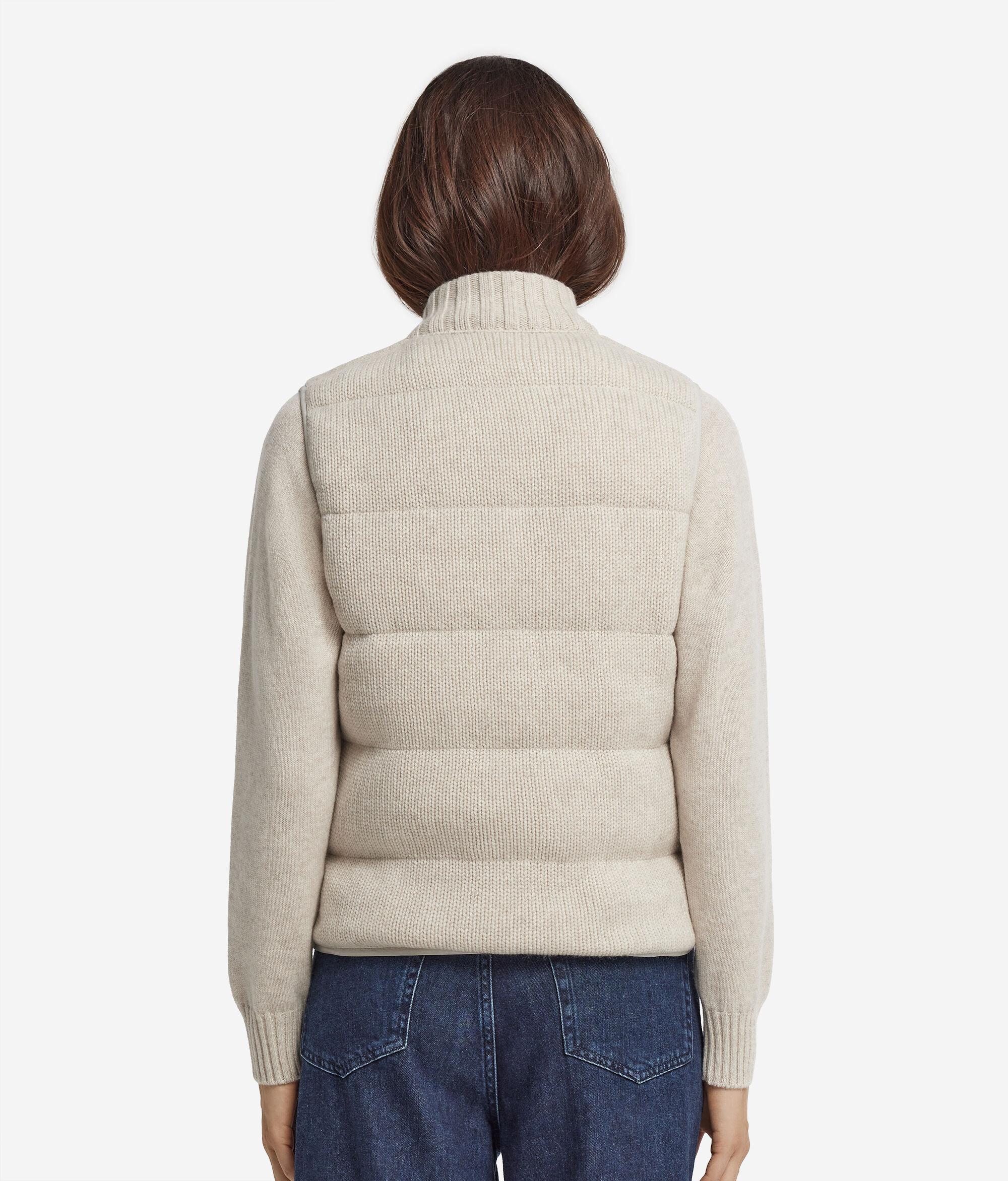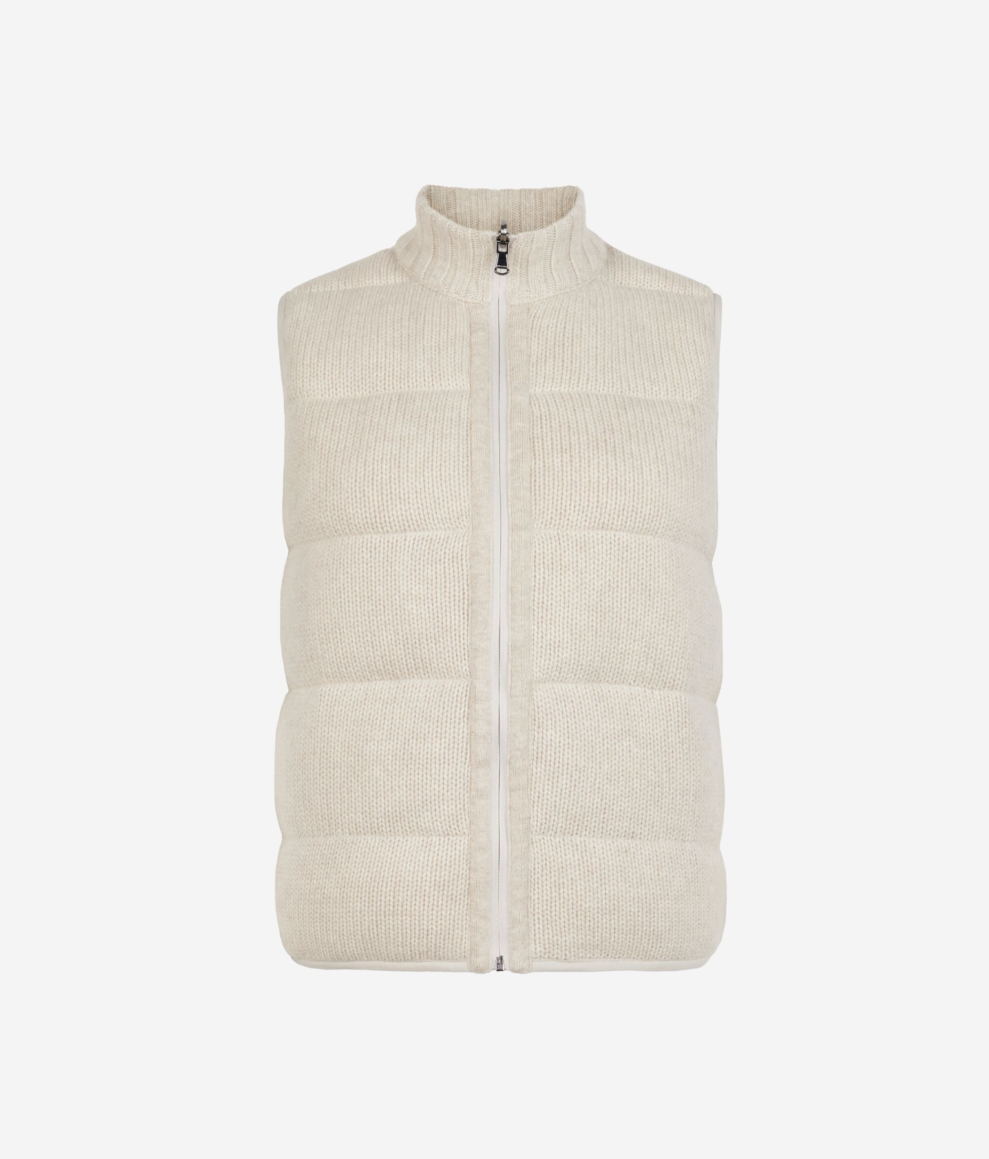 Entdecken Sie die Eleganz und die Weichheit dieser wendbaren Daunenweste. Die Innenseite aus Funktionsgewebe garantiert optimalen Schutz an kühleren Tagen, während die Außenseite aus Kaschmir Ultrasoft mit Strickverarbeitung für ein einzigartiges, anschmiegsames Wärmegefühl sorgt. Die perfekte Balance zwischen klassisch und modern in Verbindung mit den verwendeten edlen Materialien sorgt für ein besonderes und bequemes Kleidungsstück, das jede Garderobe mit einem Hauch dezenten und dennoch zeitl