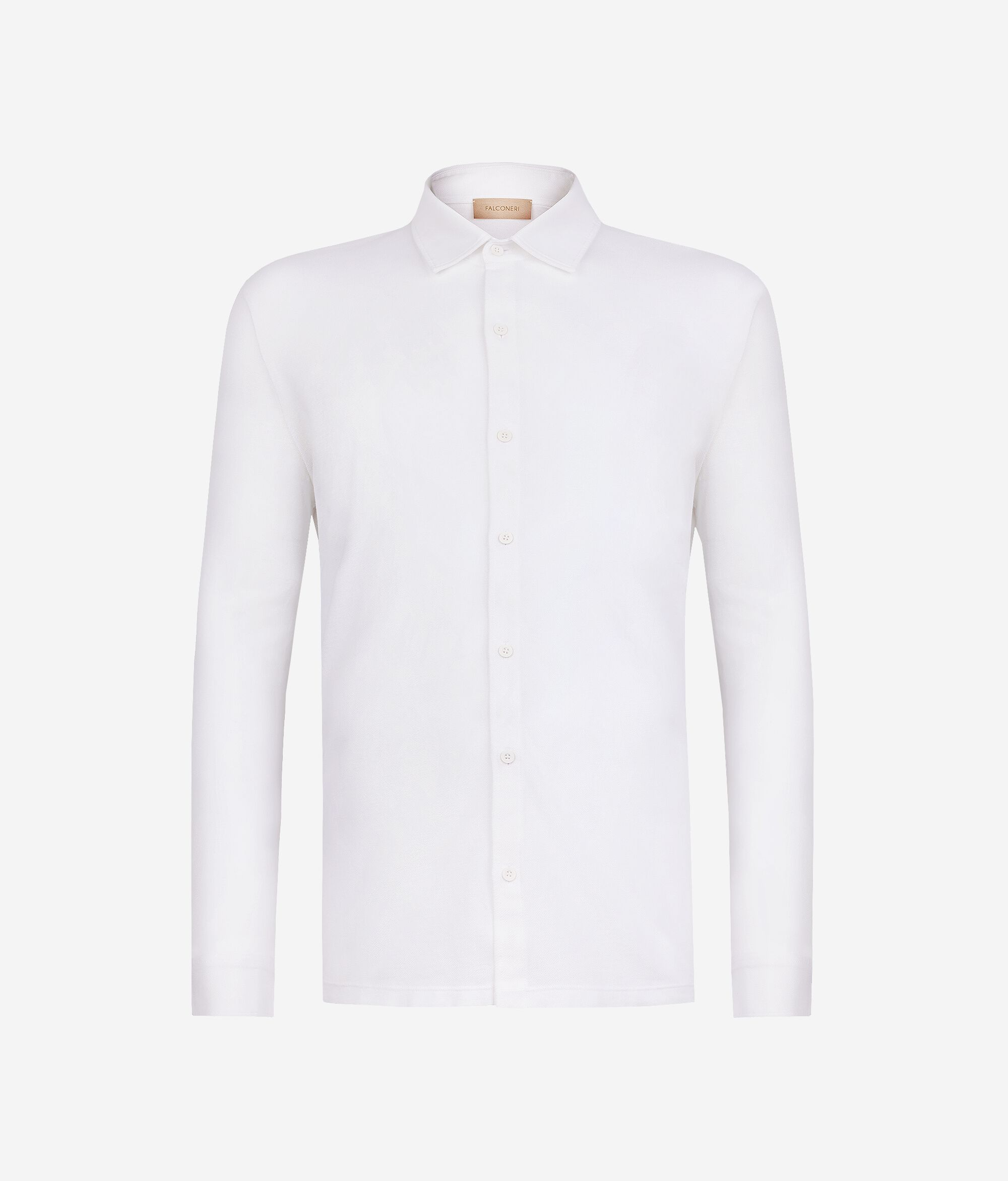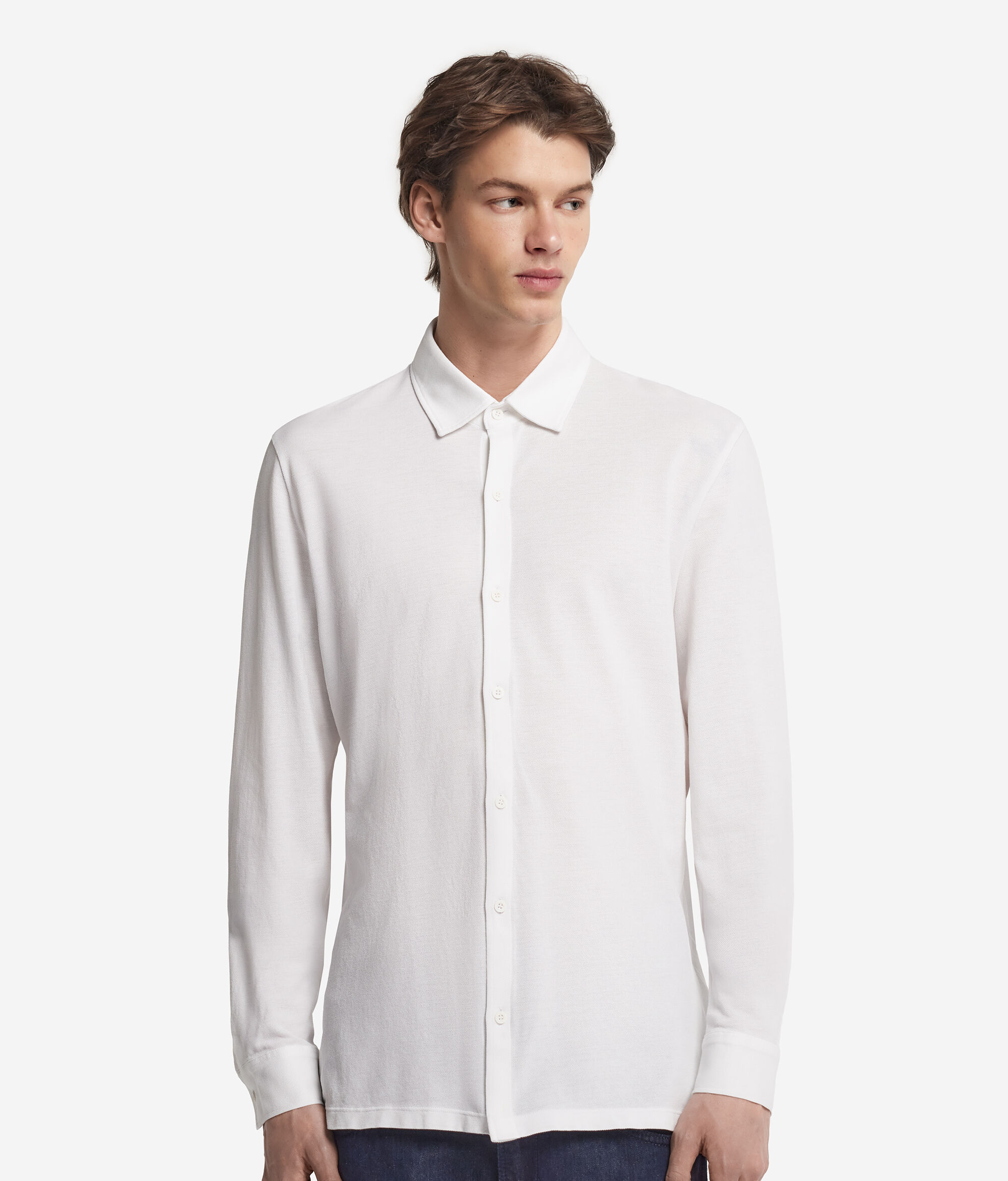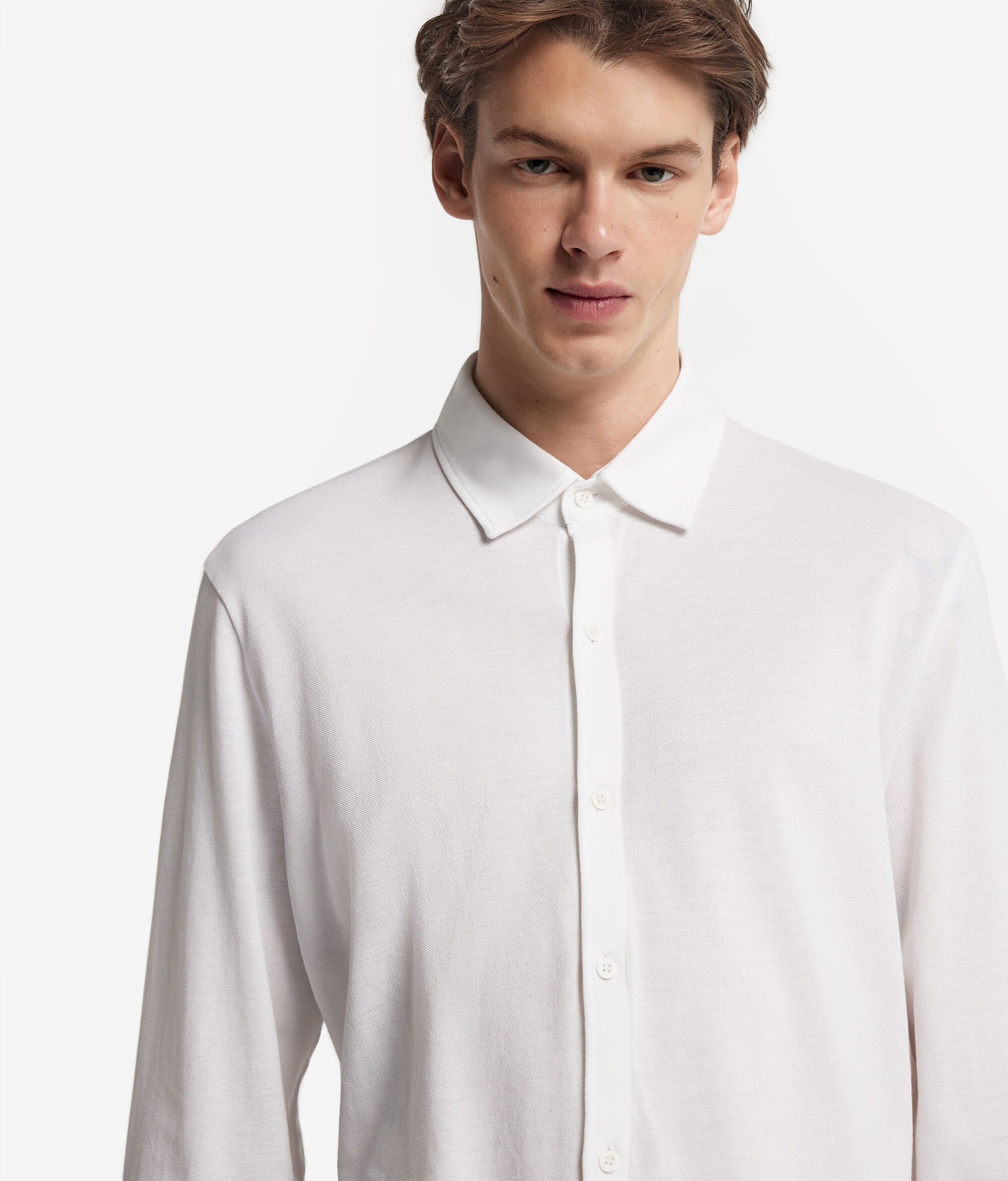 Dieses Hemd aus ultraleichtem Baumwoll-Seiden-Jerseypikee zeichnet sich durch seine erlesenen natürlichen Fasern aus. Das schlichte Modell ist mit einem Kragen und einer mittigen Knopfleiste ausgestattet, die für einen Hauch zeitlose Eleganz sorgen. Dieser Vielseiter kann mühelos zu legeren sowie zu edleren Looks kombiniert werden und ist perfekt für alle, die sich dezente Eleganz wünschen.