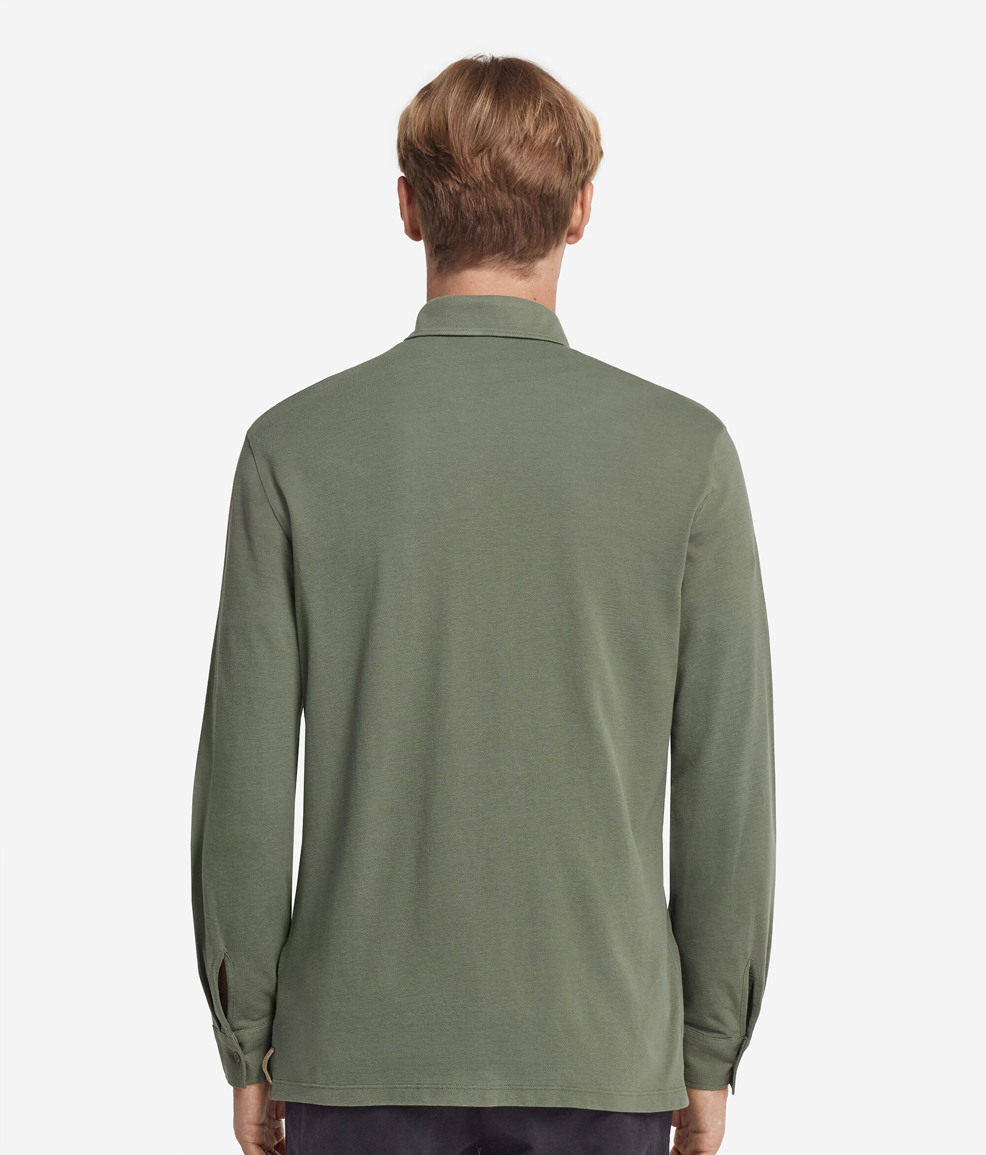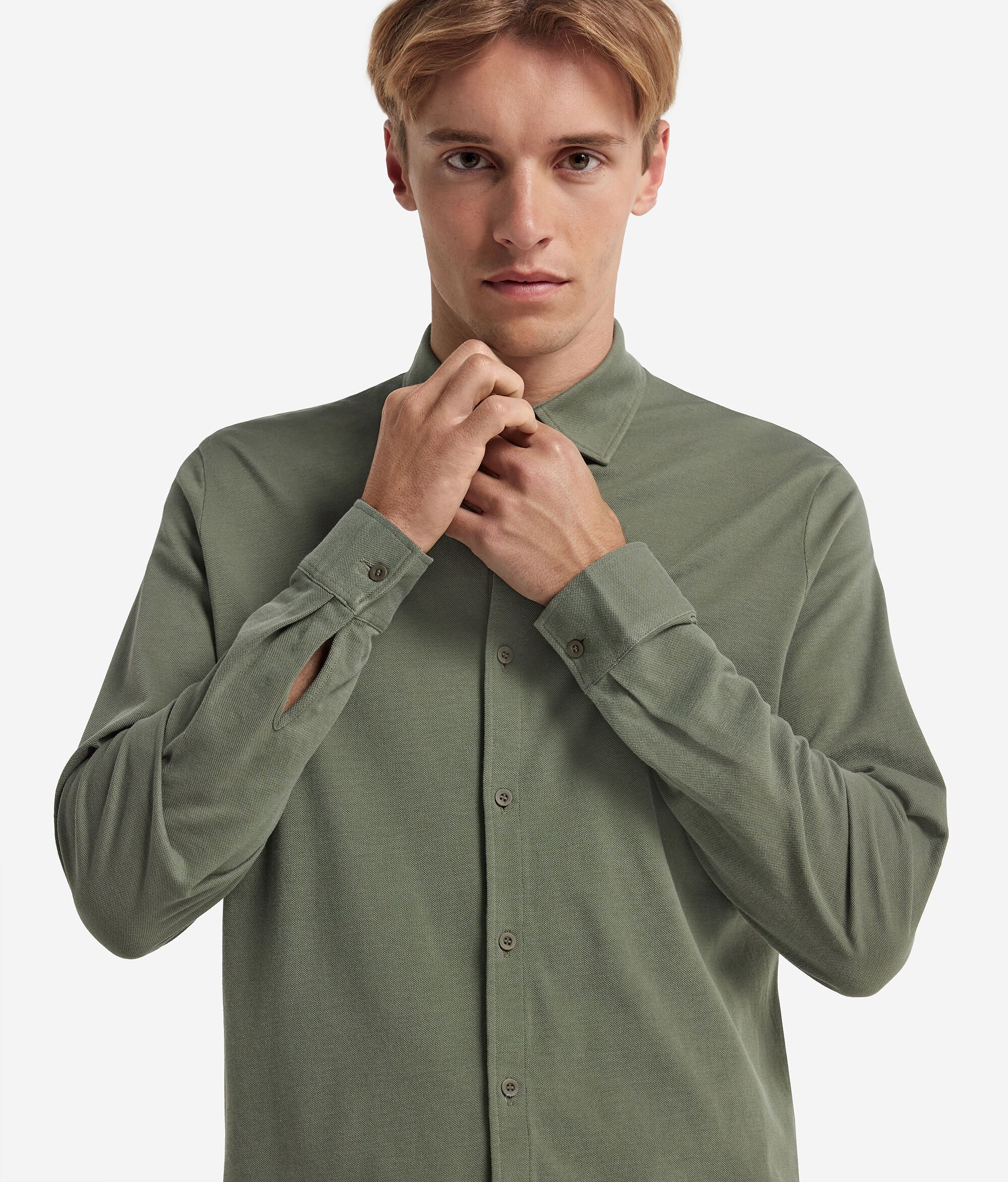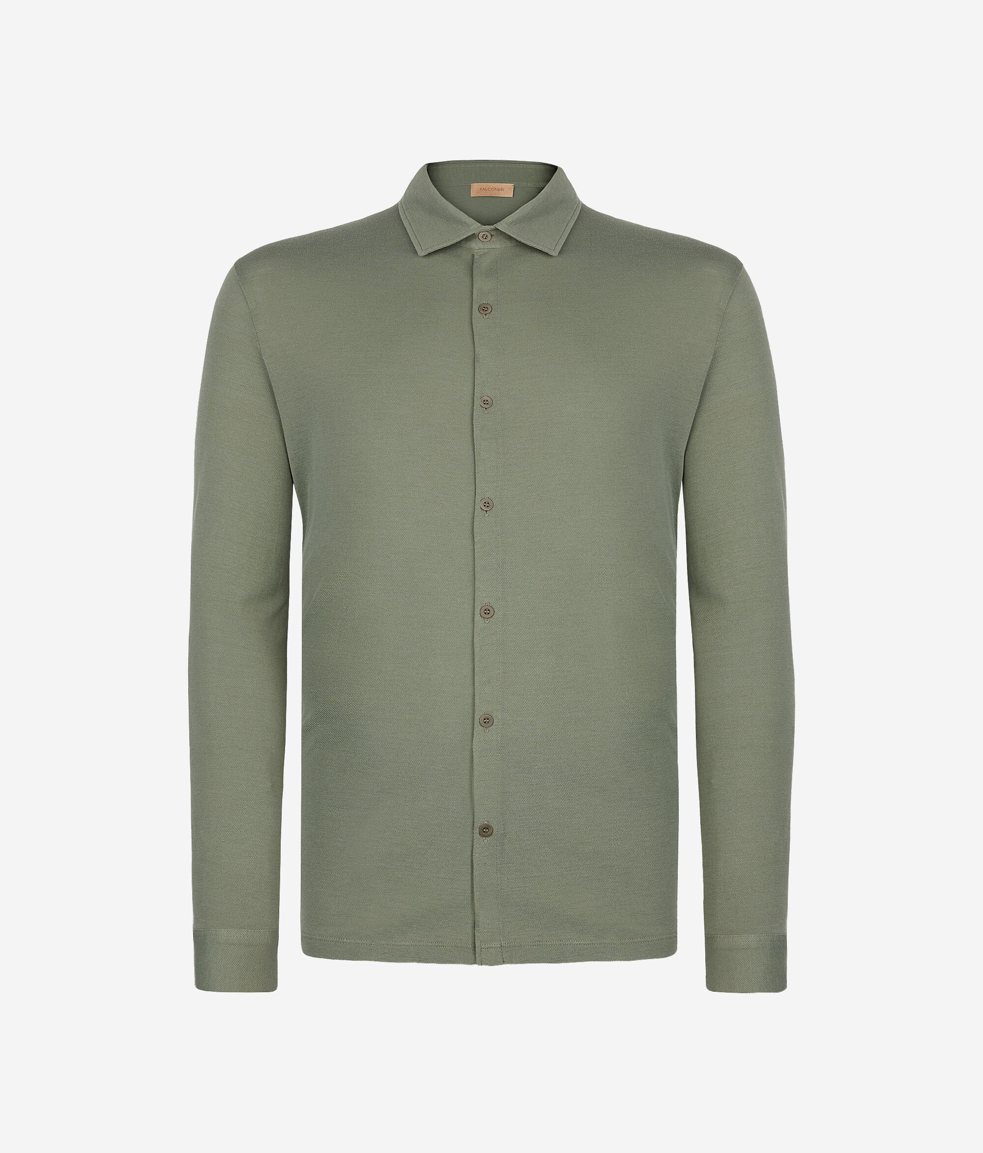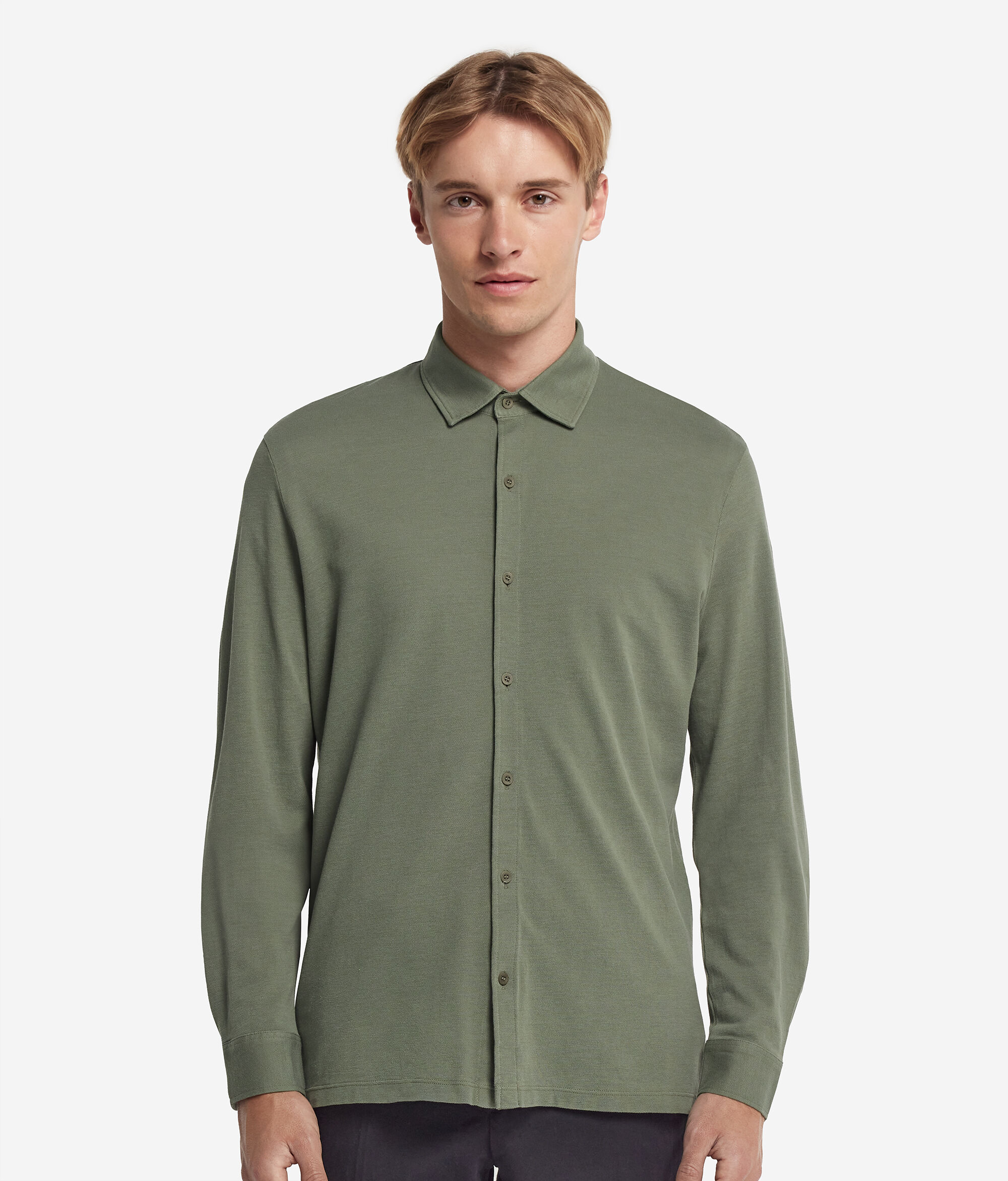 Dieses Hemd aus ultraleichtem Baumwoll-Seiden-Jerseypikee zeichnet sich durch seine erlesenen natürlichen Fasern aus. Das schlichte Modell ist mit einem Kragen und einer mittigen Knopfleiste ausgestattet, die für einen Hauch zeitlose Eleganz sorgen. Dieser Vielseiter kann mühelos zu legeren sowie zu edleren Looks kombiniert werden und ist perfekt für alle, die sich dezente Eleganz wünschen.