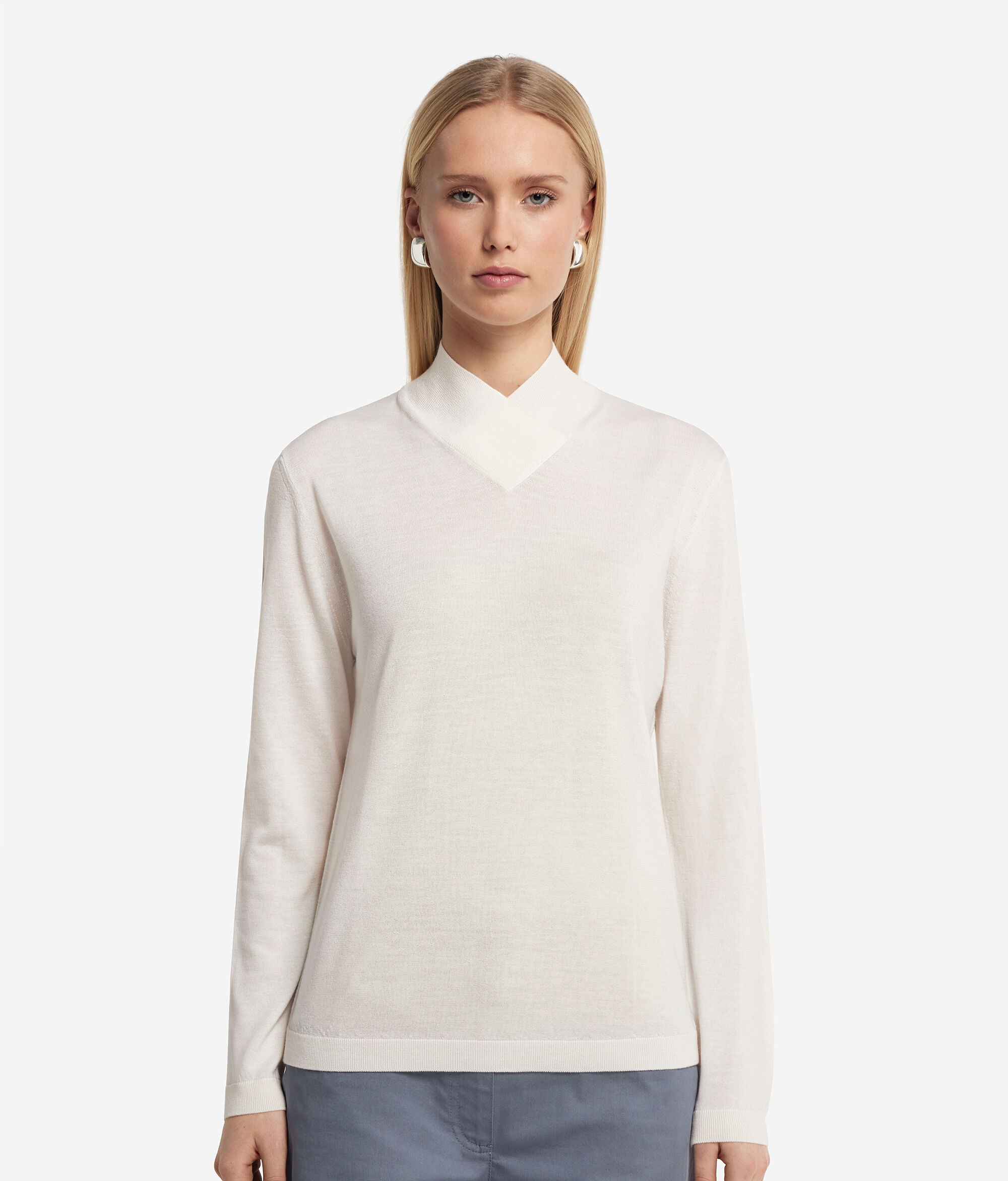 Pullover mit überlappendem Stehkragen aus Kaschmir