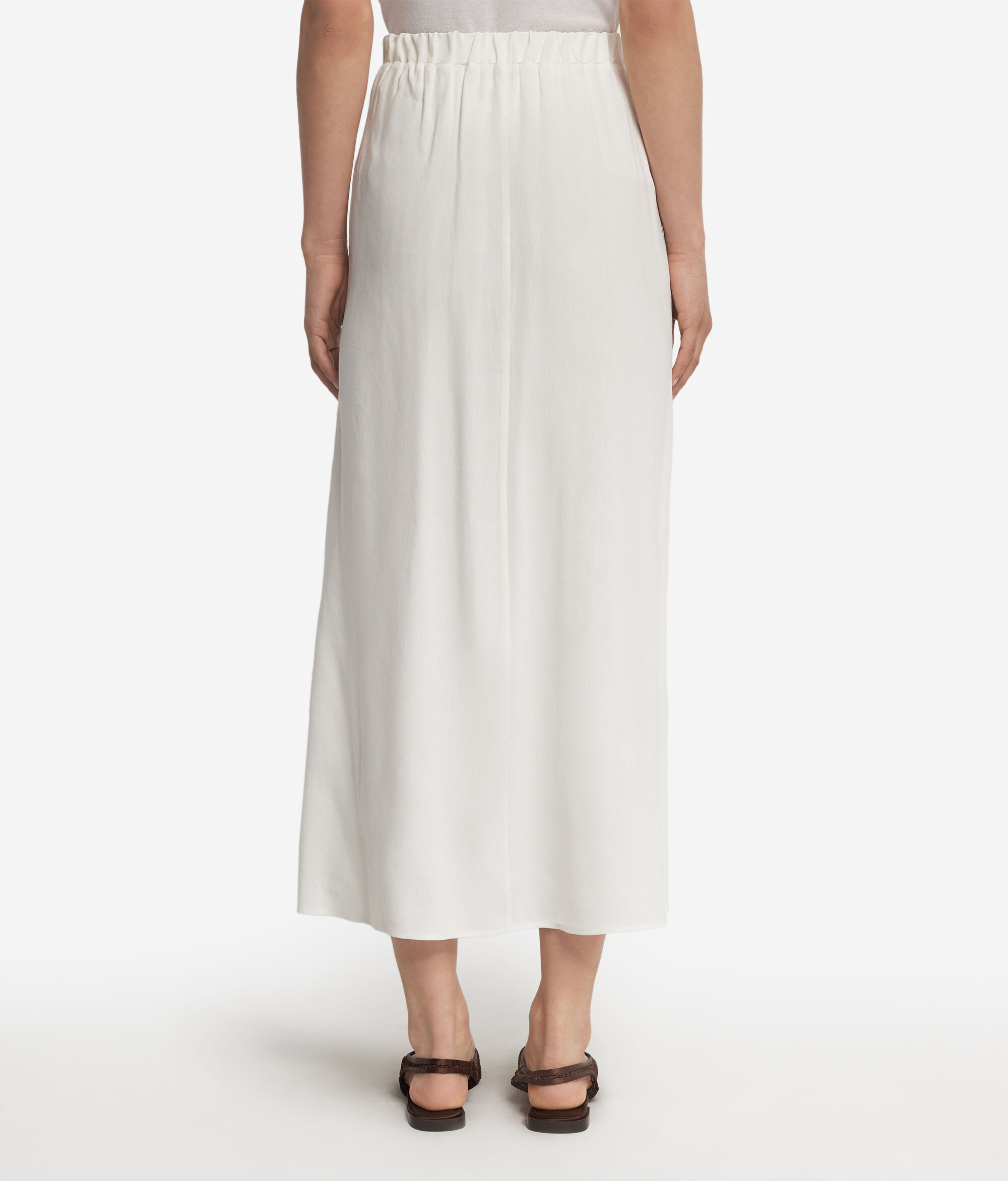 Dieser Longuette-Tellerrock aus Leinen und Viskose ist das Must-have in der Garderobe einer jeden Frau. Der elastische Riemen hinten und die schrägen Eingrifftaschen bieten ein perfektes Gleichgewicht aus Eleganz und Funktionalität. Somit ist der Rock ideal zur Vervollständigung sowohl von legeren als auch von eleganten Looks.