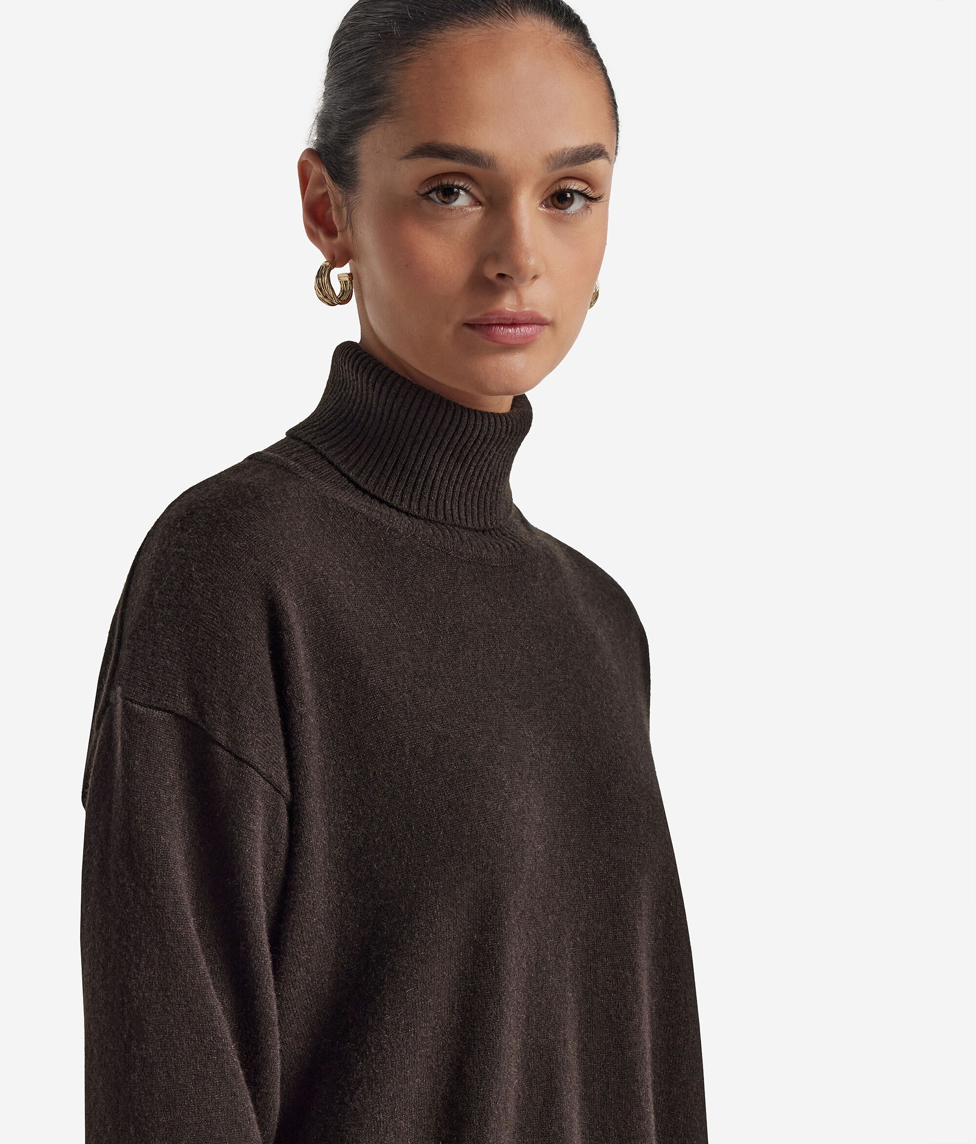 Rollkragenpullover aus Kaschmir Ultrasoft. Das Design des Kleidungsstücks zeichnet sich durch leicht überschnittene Schultern, gerippte Verarbeitung an Ausschnitt, Bündchen und Saum sowie Schlitze am Saum aus. Weich fallende Passform.
