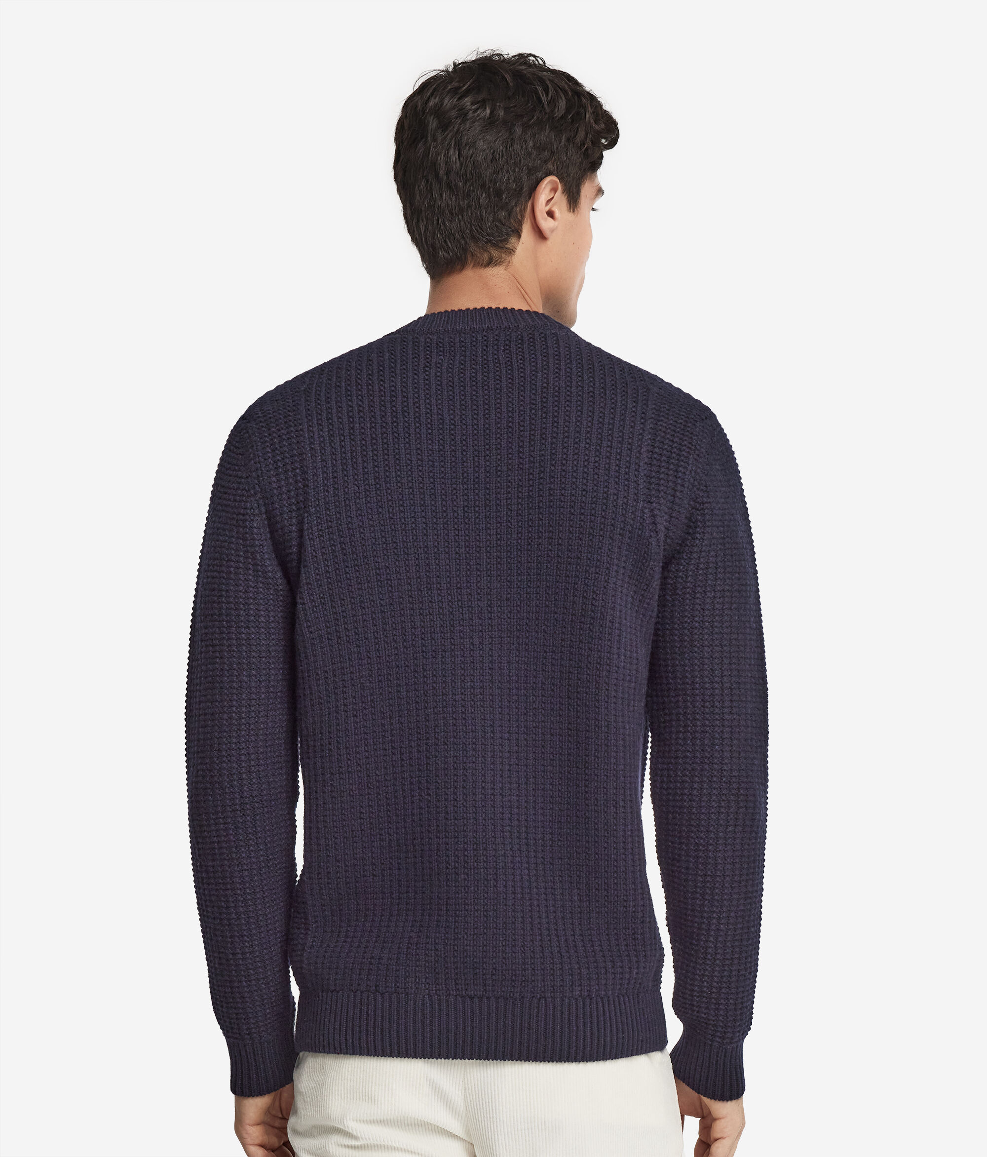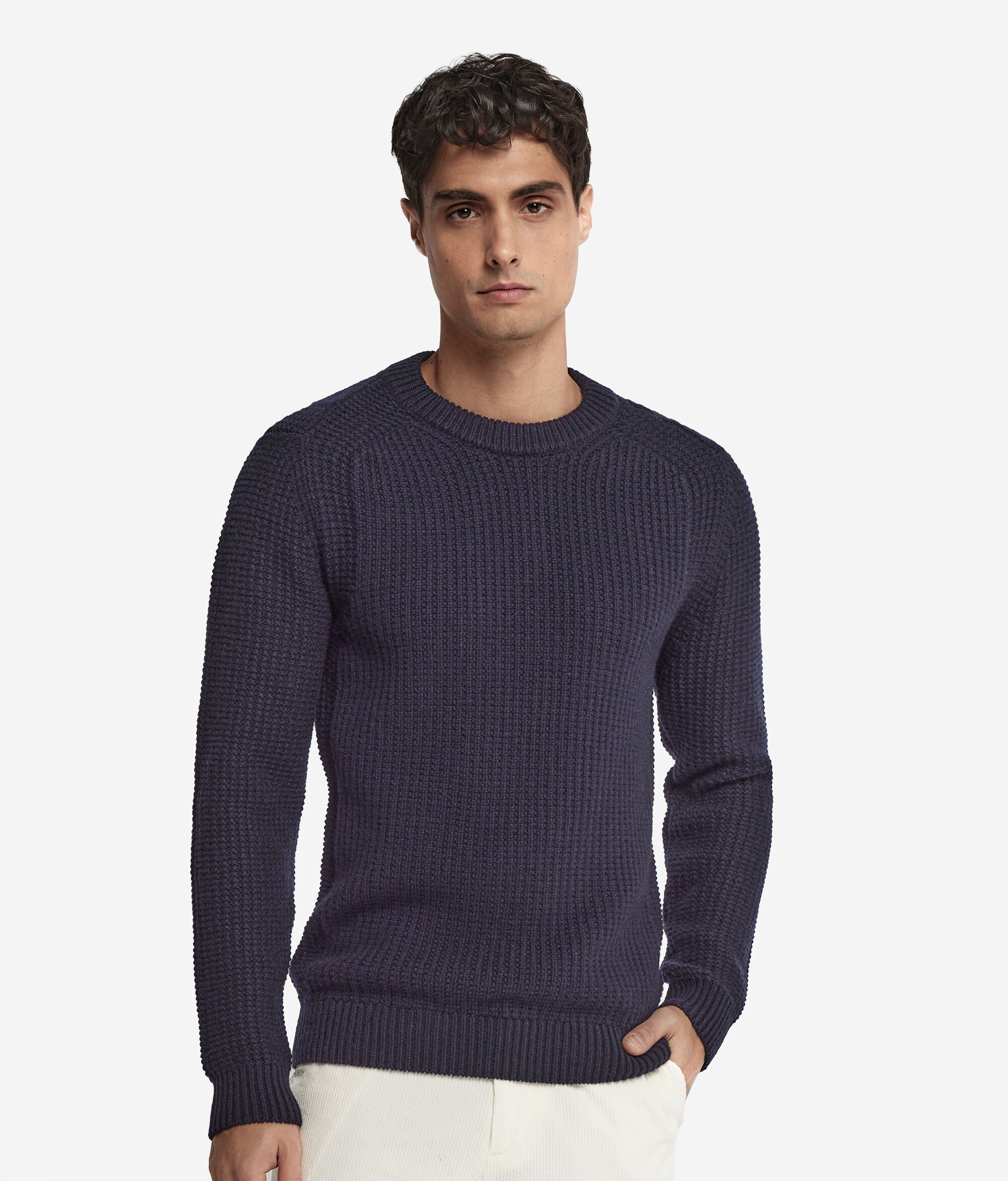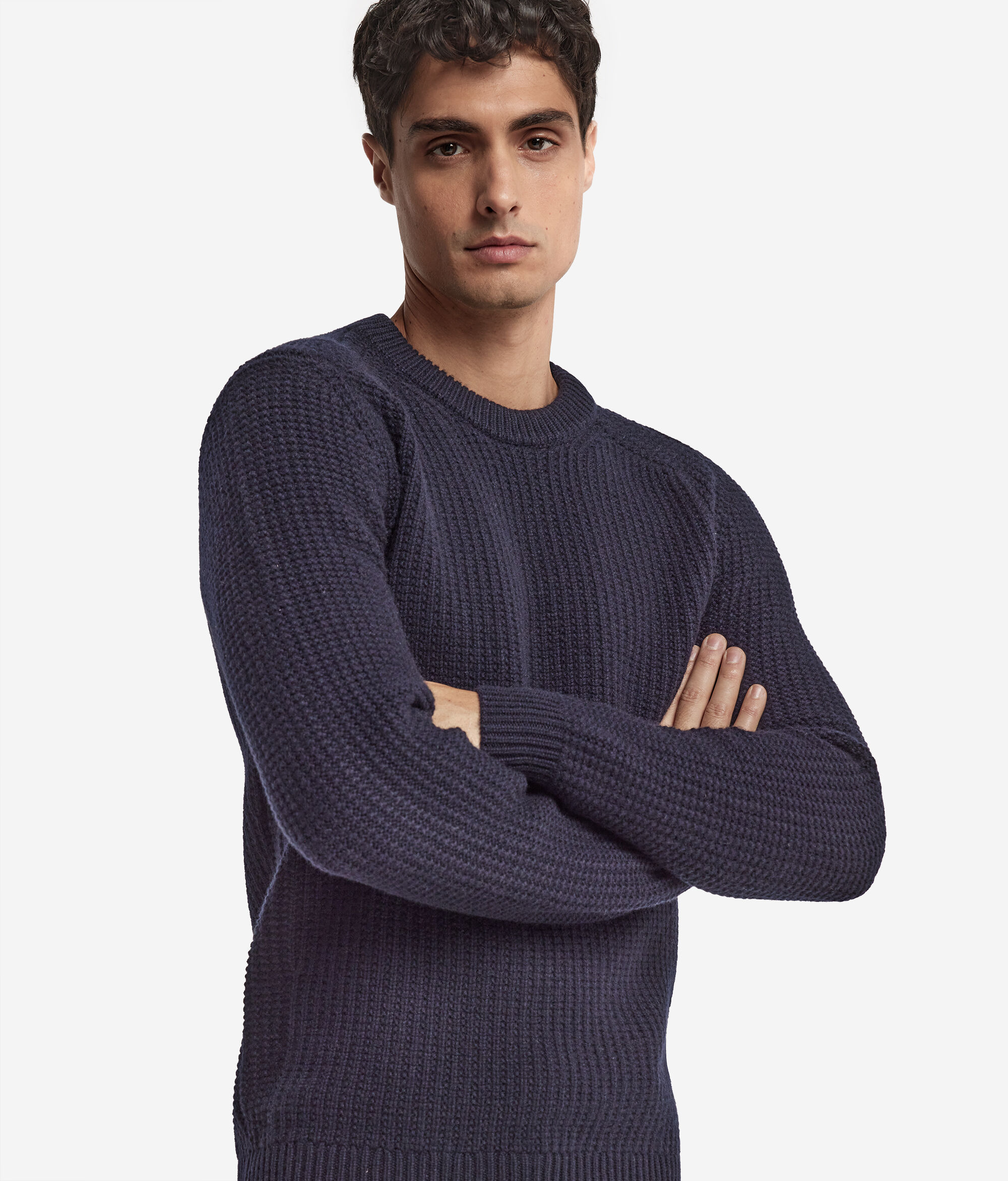 Dieser vollständig aus weichem Kaschmir Ultrasoft gefertigte Rundhalspullover vereint Eleganz und einen legeren Stil in einem einmaligen Kleidungsstück. Das besondere Rippstrick- und Knötchenmotiv wertet die Qualität des Garns mit einer exklusiven dreidimensionalen Struktur auf. Das Design zeichnet sich durch das geschneiderte Detail der vorgezogenen Schultern aus, die für einen modischen Touch und einen Hauch Handwerkskunst sorgen.