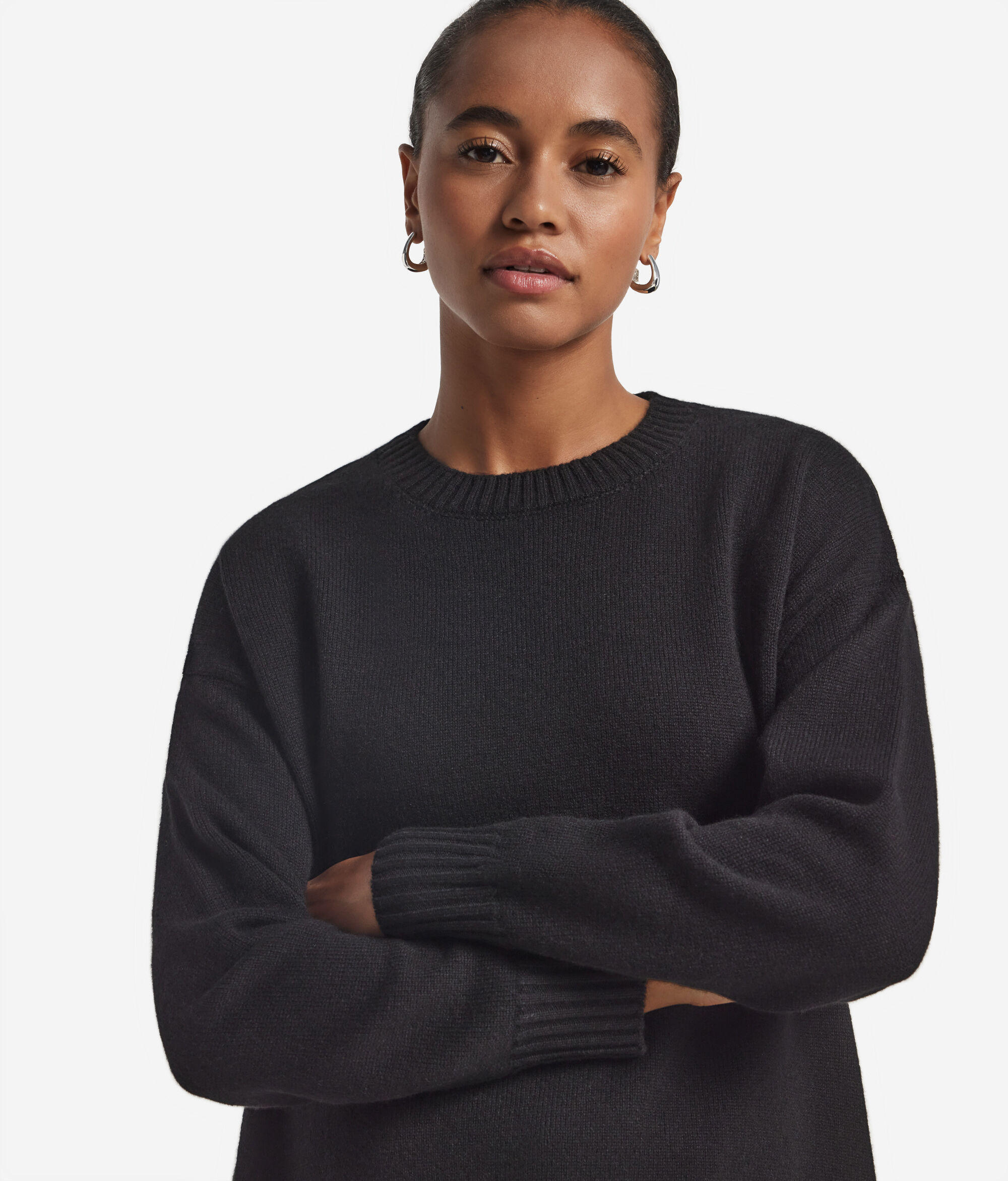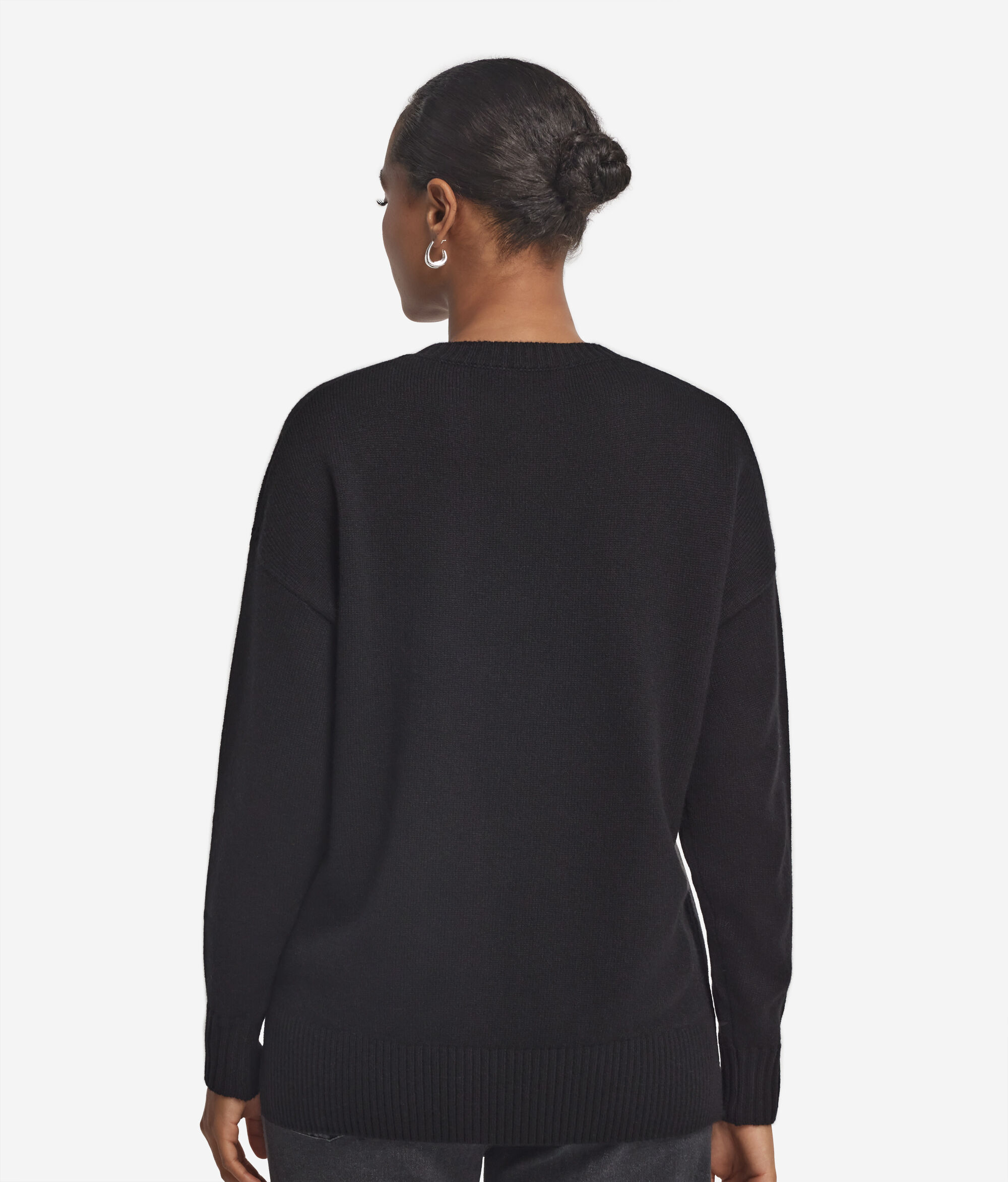 Dieser Rundhalspullover aus Kaschmir Ultrasoft vereint Komfort und Eleganz. Die überschnittene Schulter und die lockere Passform tragen zur entspannten Silhouette bei, während Seitenschlitze für Leichtigkeit bei der Bewegung sorgen. Gerippte Abschlüsse an Ausschnitt, Saum und Bündchen runden das Design mit dezenter Eleganz ab. Das Ergebnis ist ein Kleidungsstück, das auf ungezwungene Art alltäglichen Luxus interpretiert.