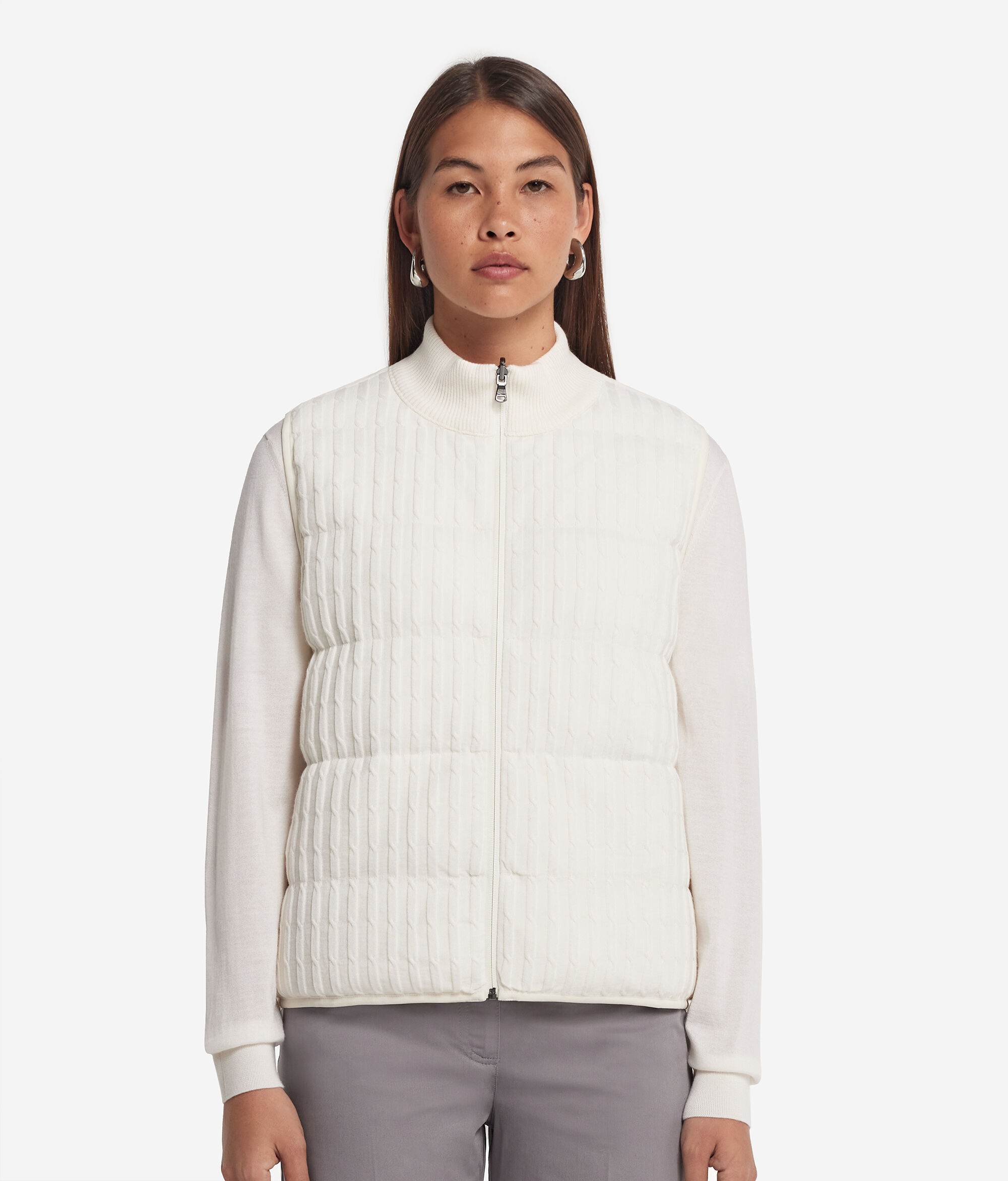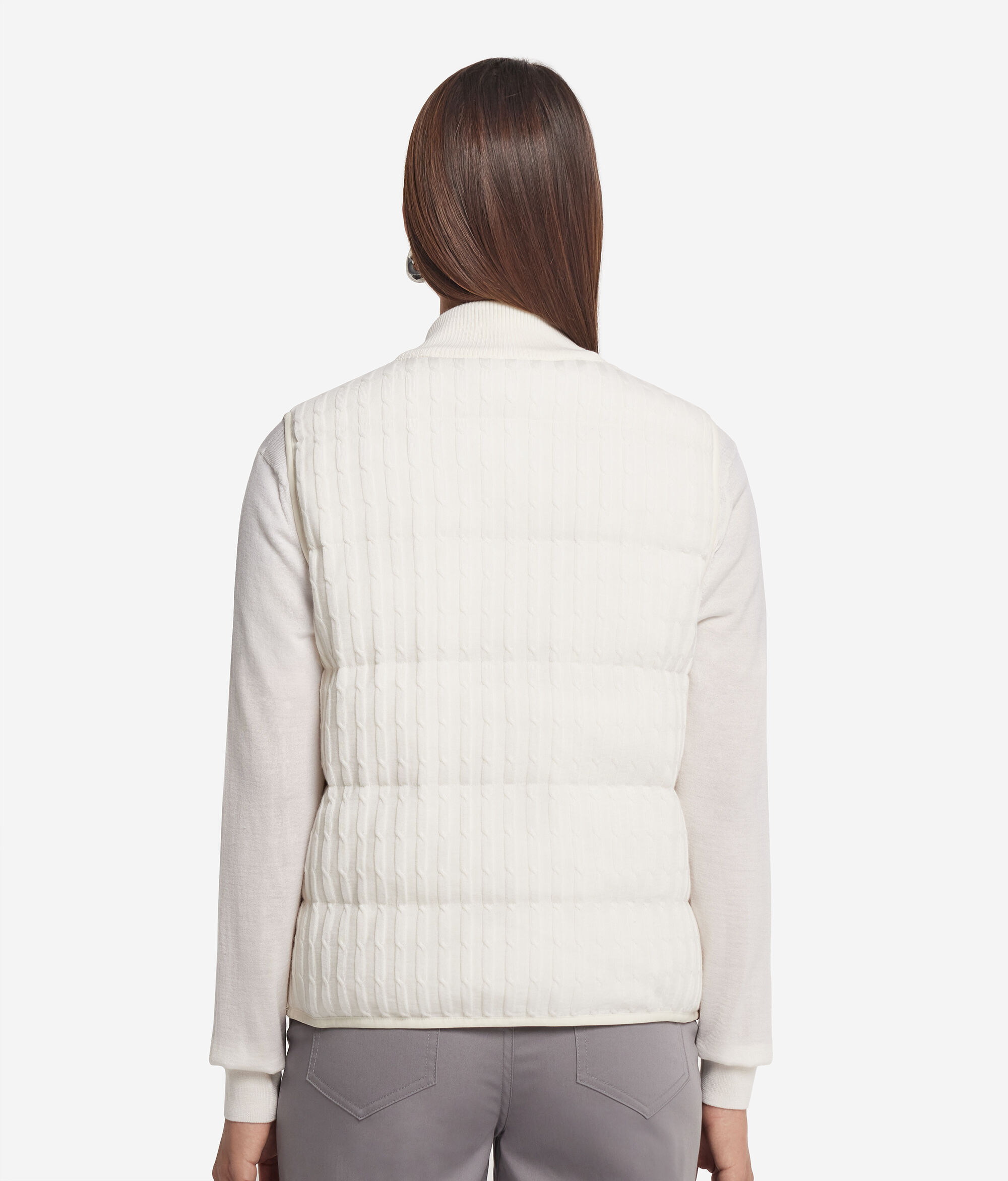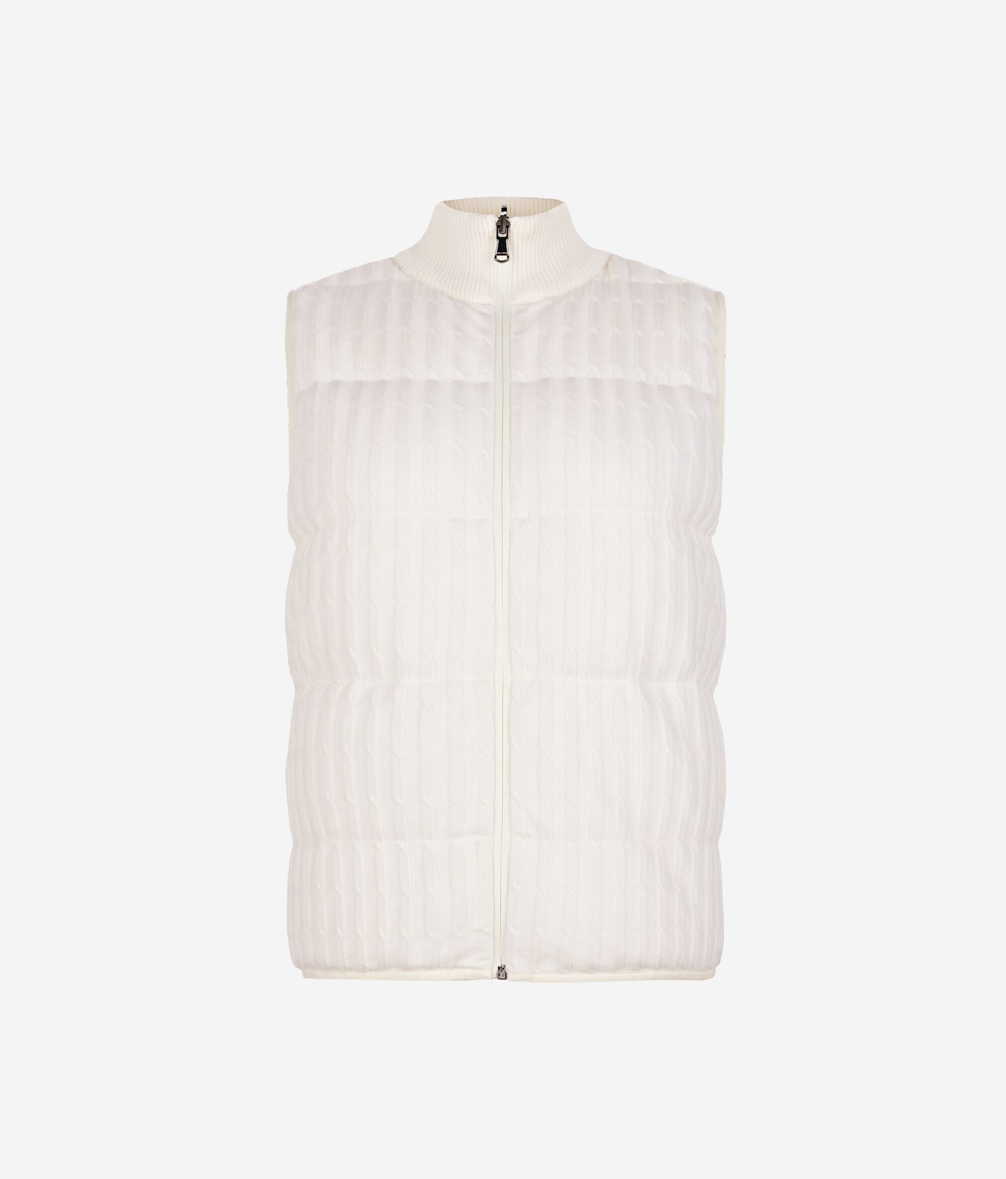 Wende-Daunenweste aus Kaschmir mit Zopfmuster