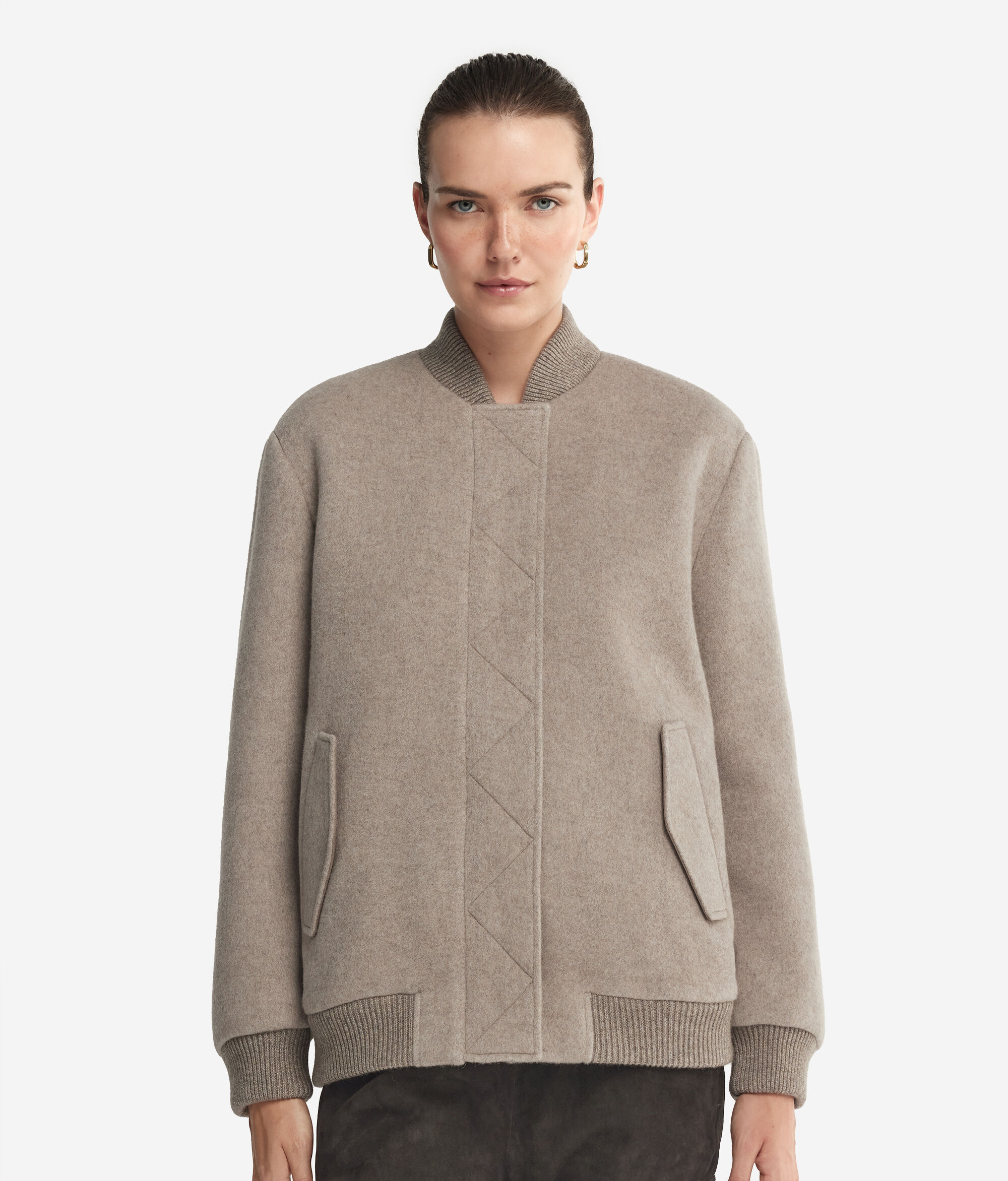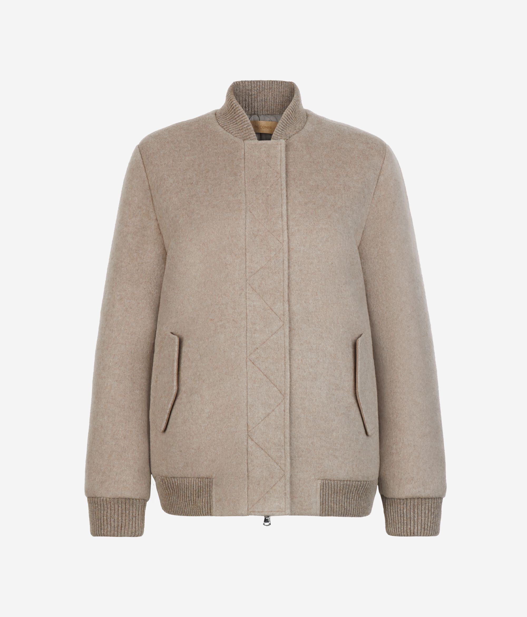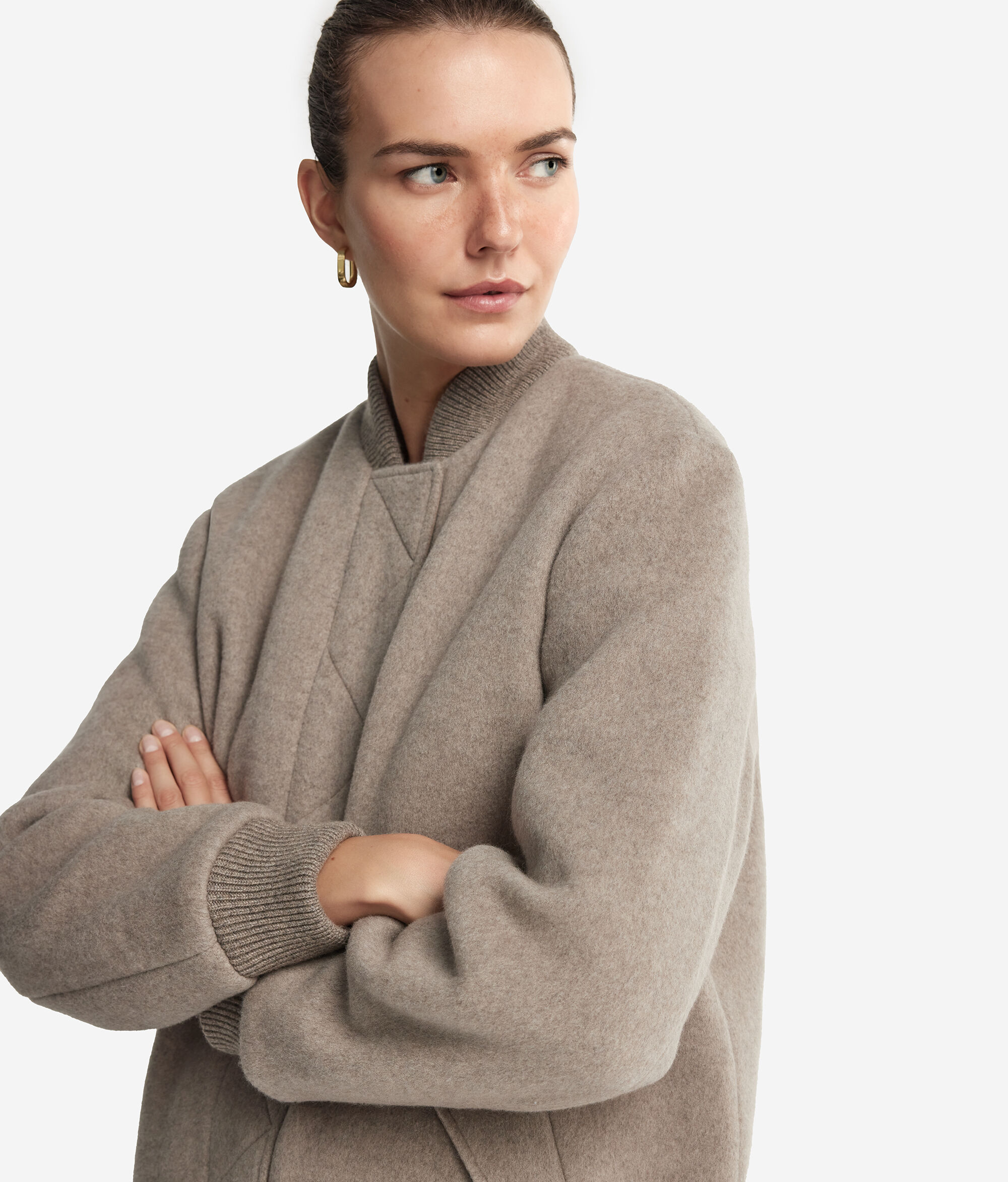 Entdecken Sie den Stil und die Funktionalität dieses Mantels, einem Basicteil für die Frau, die es bequem und stilvoll mag. Die Jacke ist aus besonders hochwertigen Materialien gefertigt, außen aus kuschelweichem Kaschmir, während die Innenseite aus gestepptem Funktionsmaterial besteht. Kragen, Bündchen und Saum aus Kaschmir Ultrasoft sowie ein Zickzackmuster in der Mitte vervollständigen das Design mit einem individuellen und besonderen Touch. Die lockere Passform sorgt für einen natürlichen Re