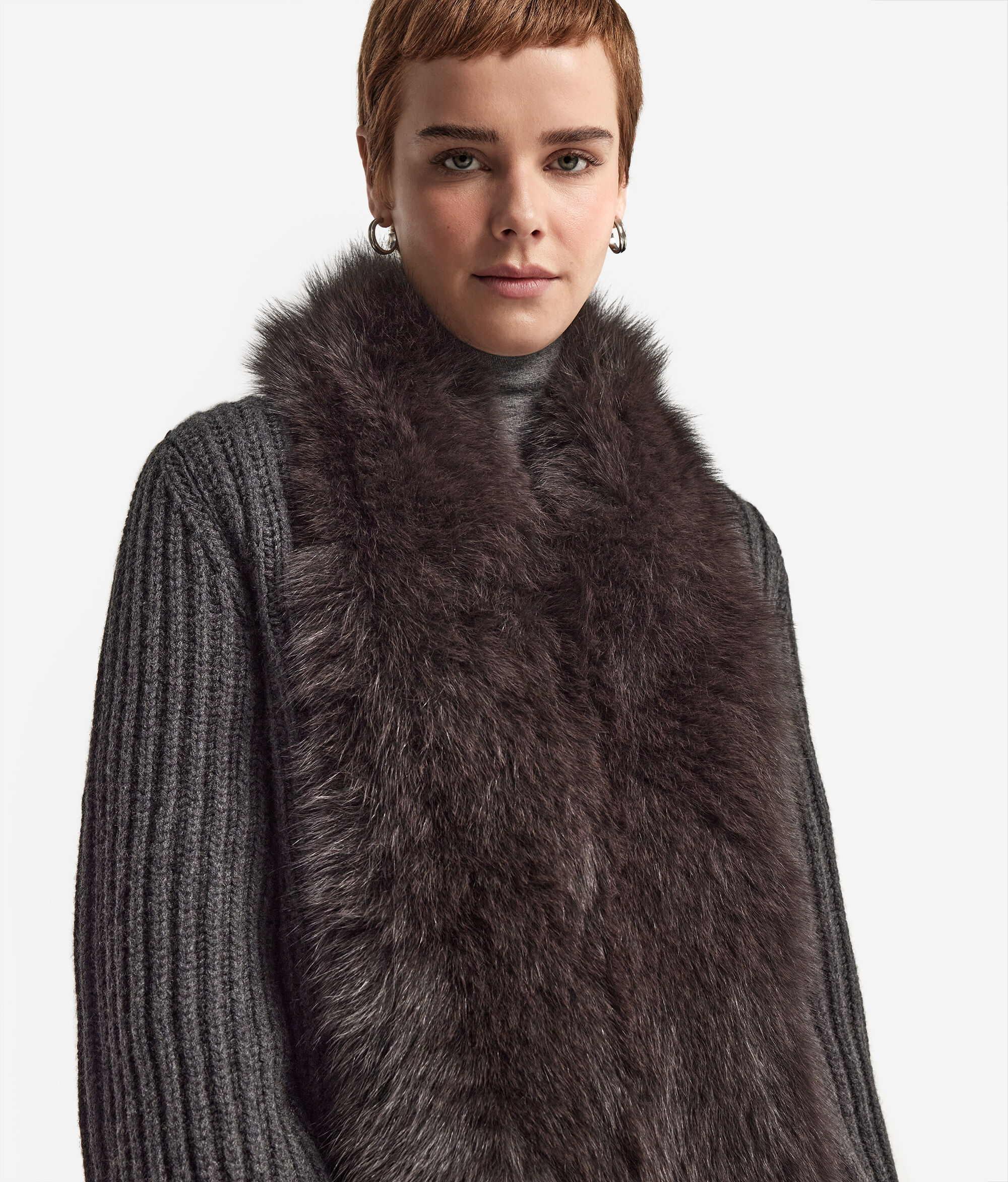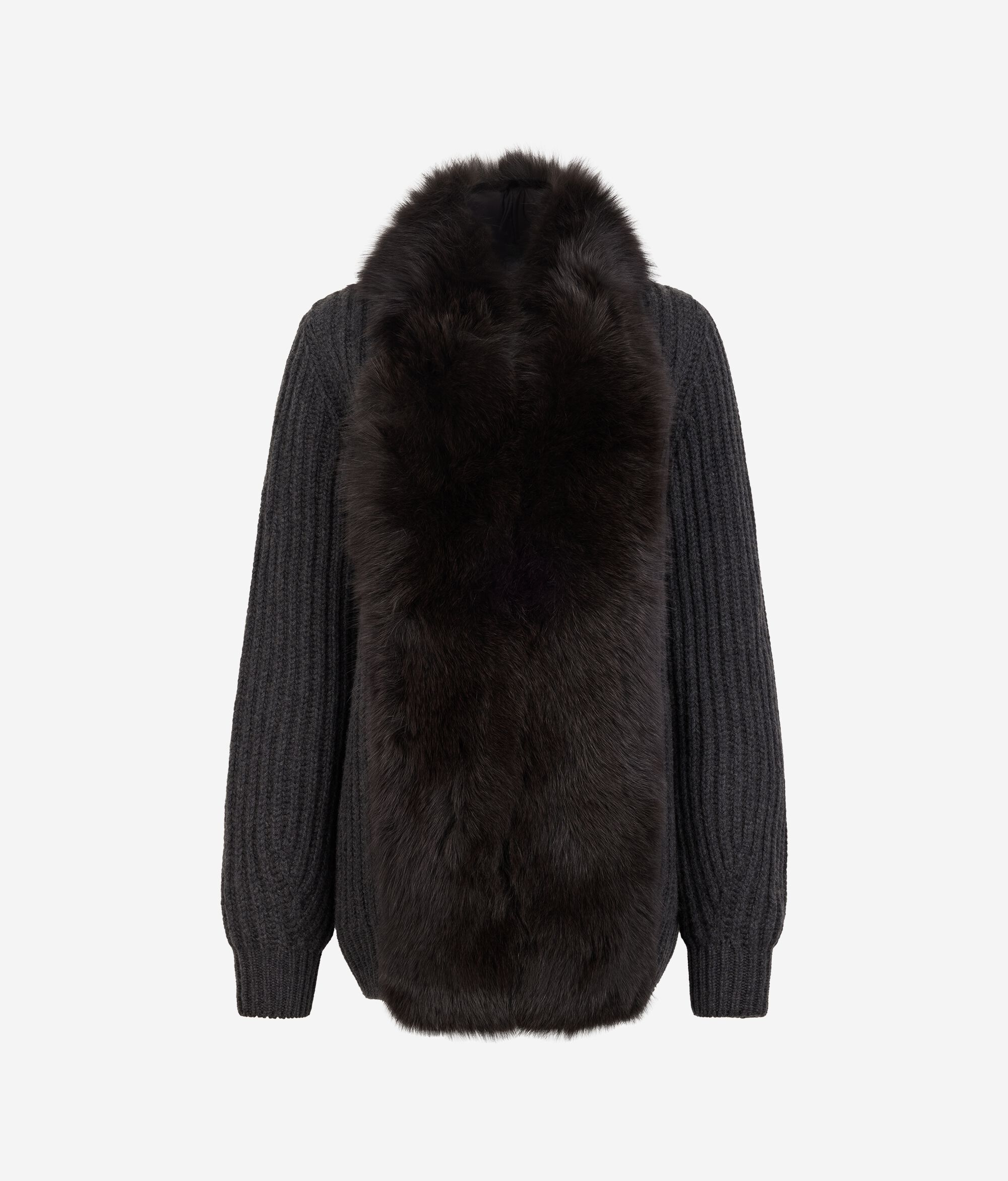 Gerippter Mantel aus Kaschmir und Pelzbesatz