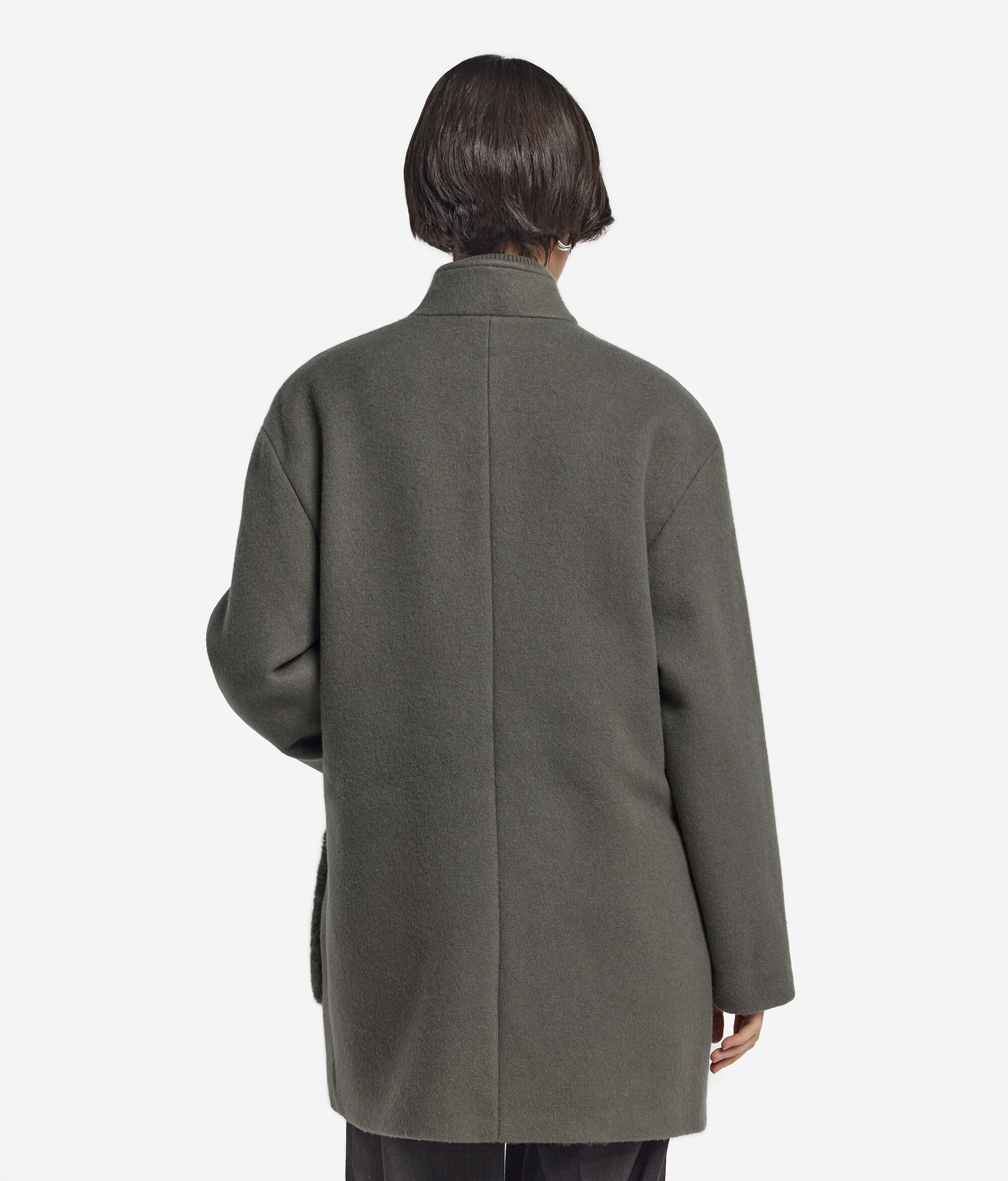 Dieser aus Kaschmir gefertigte Mantel zeichnet sich durch seinen hohen Kragen und die gesteppte Innenseite aus Funktionsgewebe für garantierte Wärme und Komfort aus. Die aufgesetzten Taschen aus Rexkaninchenfell und der versteckte Druckknopfverschluss heben sich von den schlichten Linien des Kleidungsstücks ab. Die weich fallende Passform und die Länge bis unterhalb der Hüfte machen dieses besondere, funktionale Kleidungsstück komplett, das ideal für kältere Tage geeignet ist.