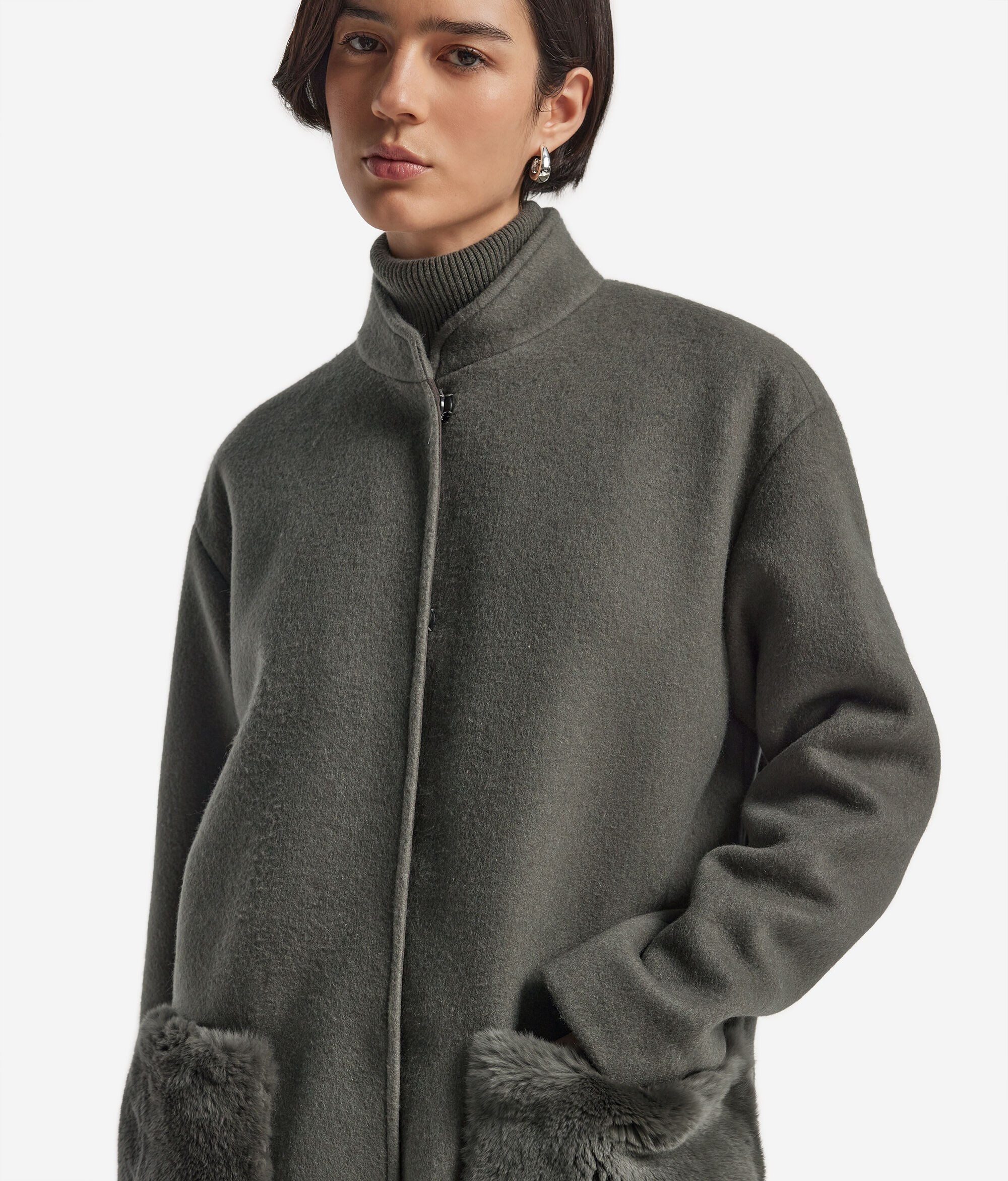 • Mantel aus Kaschmir und Rexkaninchenfell