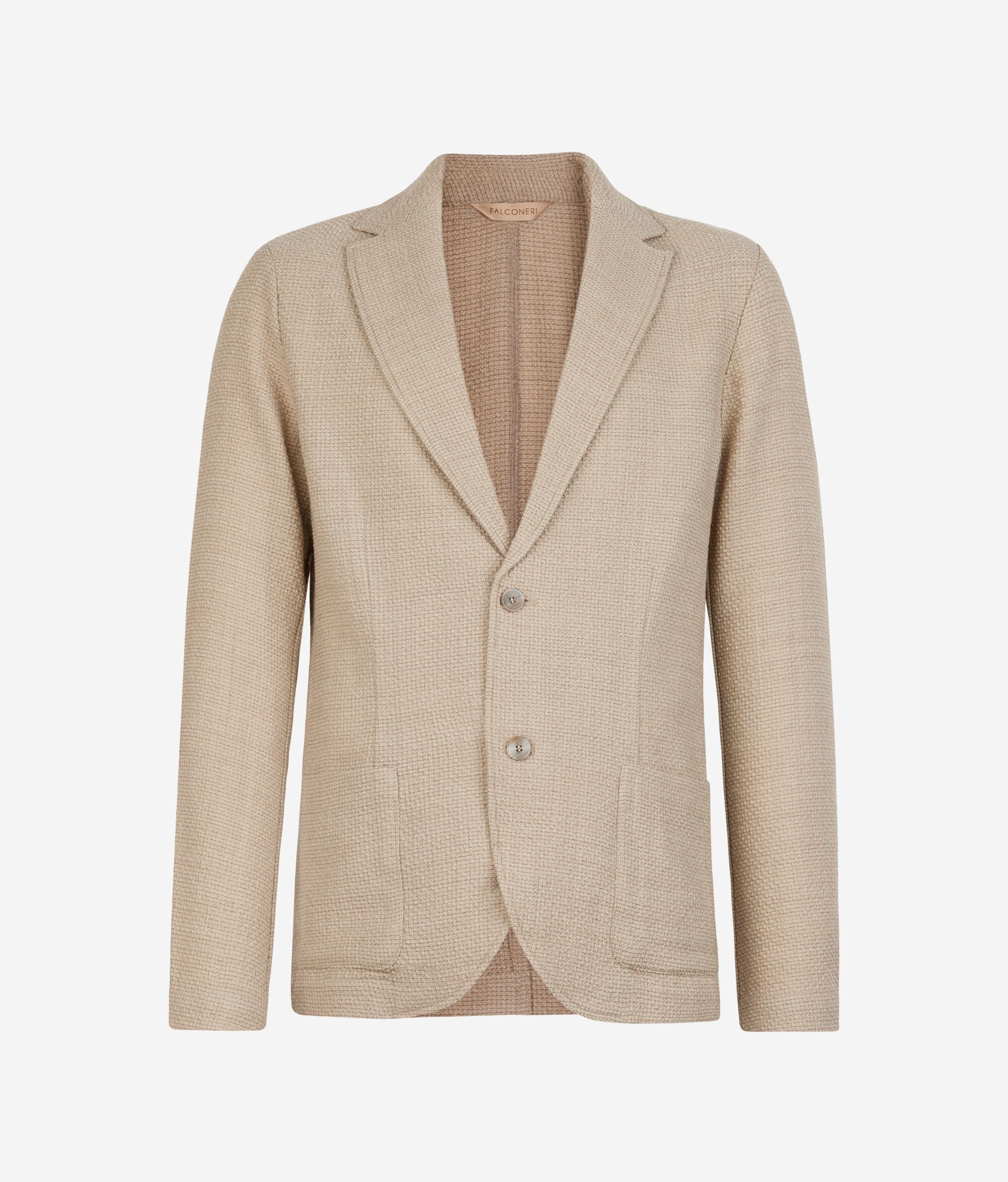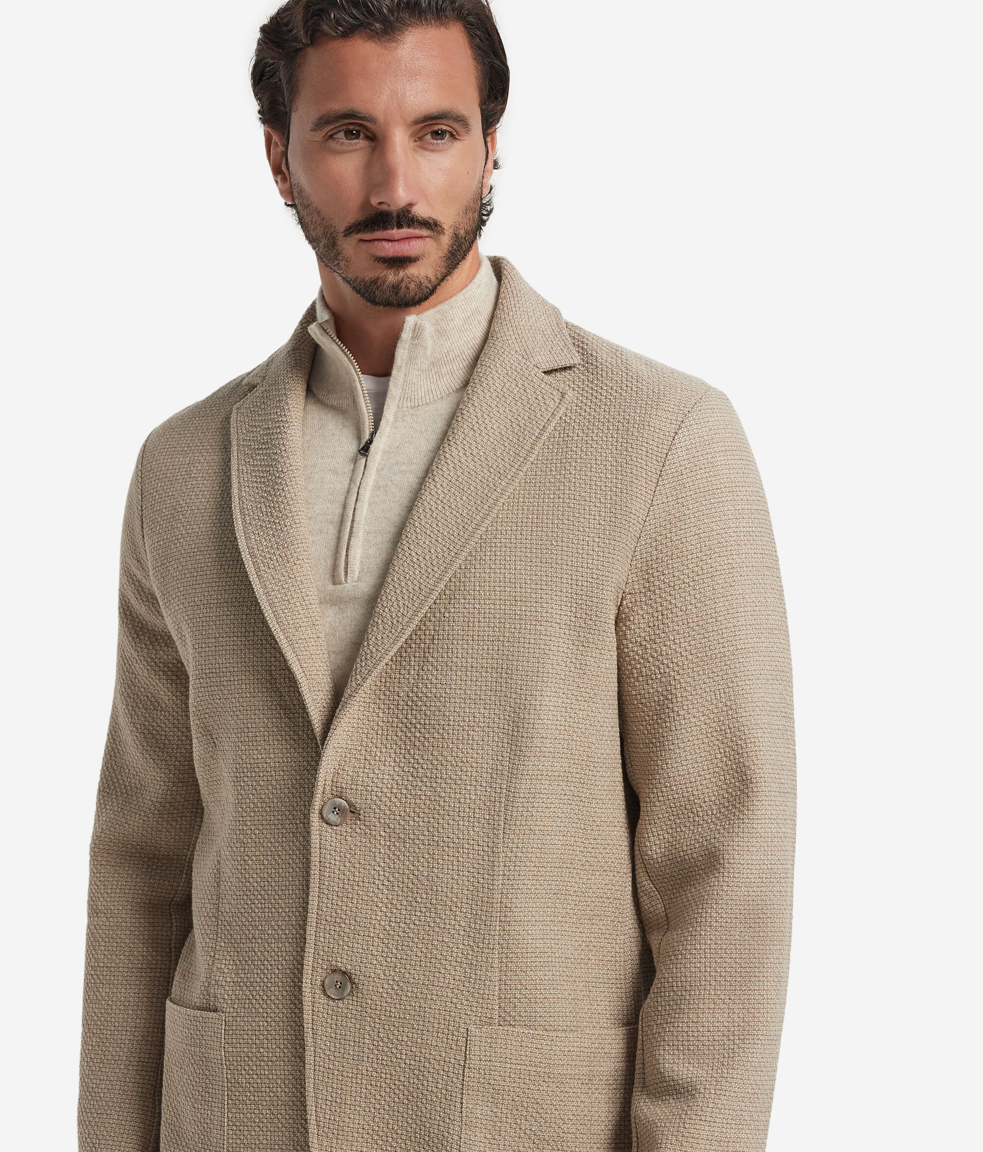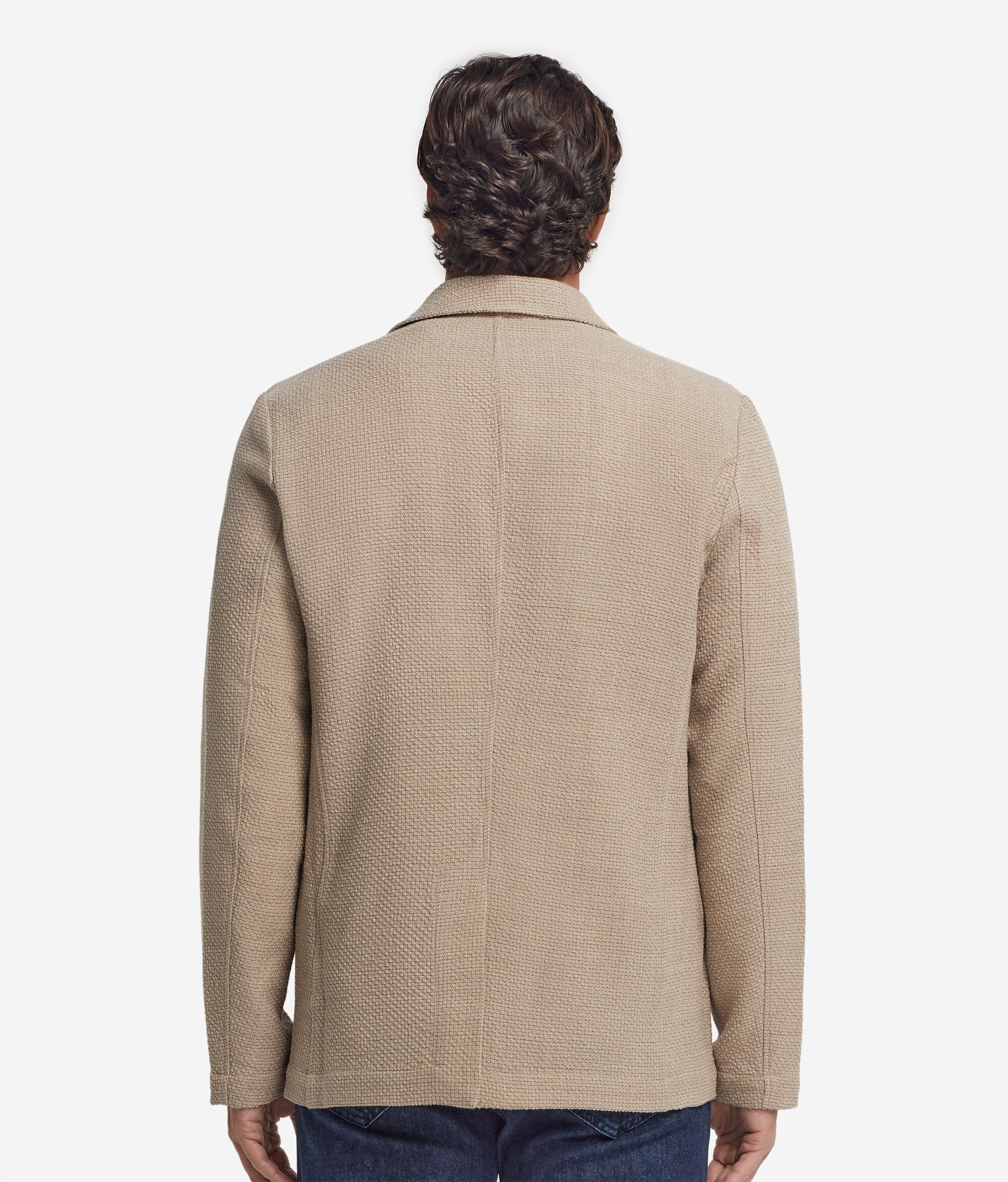 Dieses Sakko aus Mouliné-Wolle zeichnet sich durch eine schlichte und moderne Eleganz aus und besticht durch seine reiche Textur und sein leicht unruhiges Aussehen. Das klassische Revers mit Steppnähten und die aufgesetzten Taschen werten das geschneiderte Design auf, während die mittige Knopfleiste und der Schlitz an der Rückseite eine perfekte Balance zwischen minimalistischem Stil und erlesenen Details bieten.