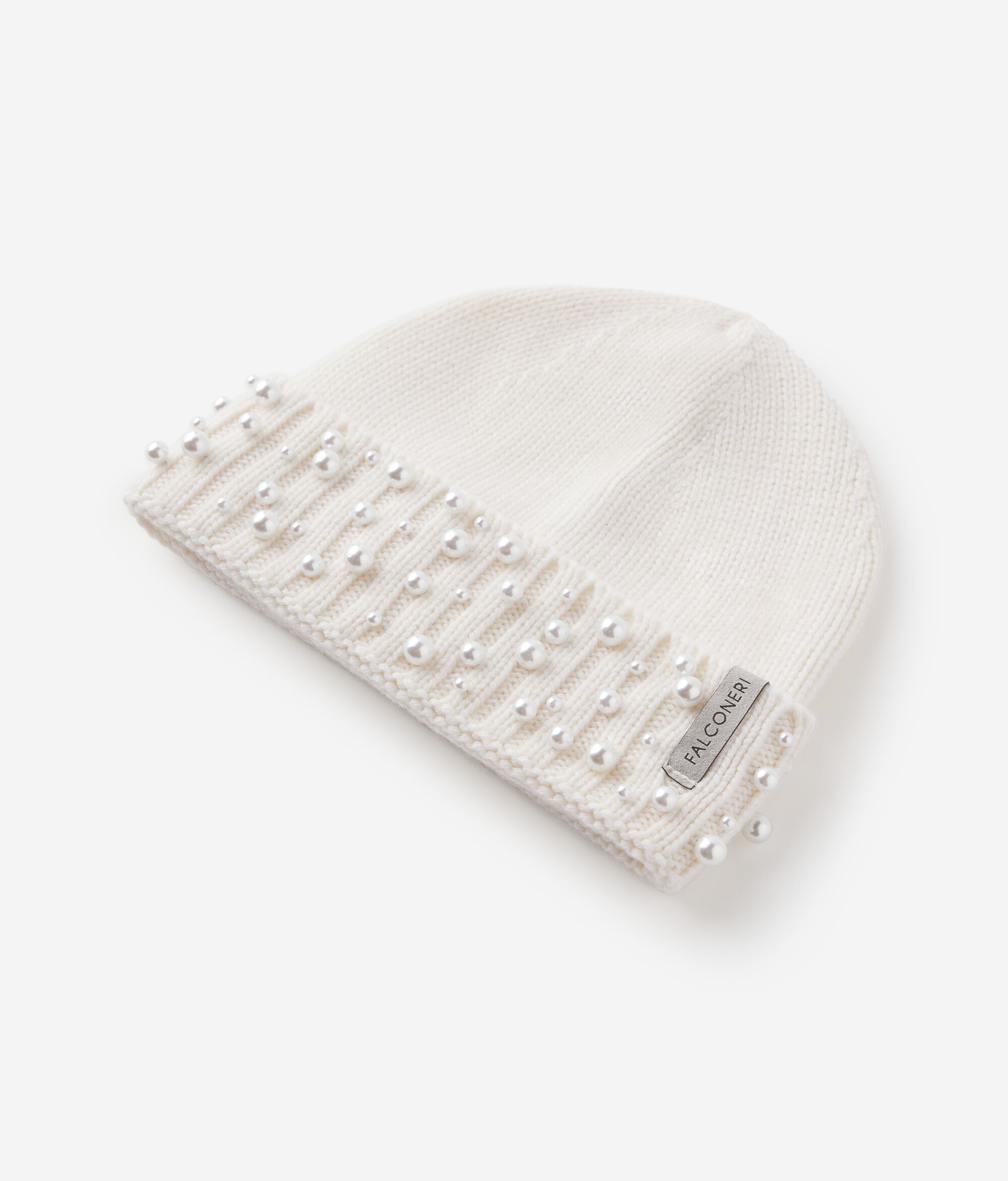 Mütze aus Kaschmir Ultrasoft mit Perlen