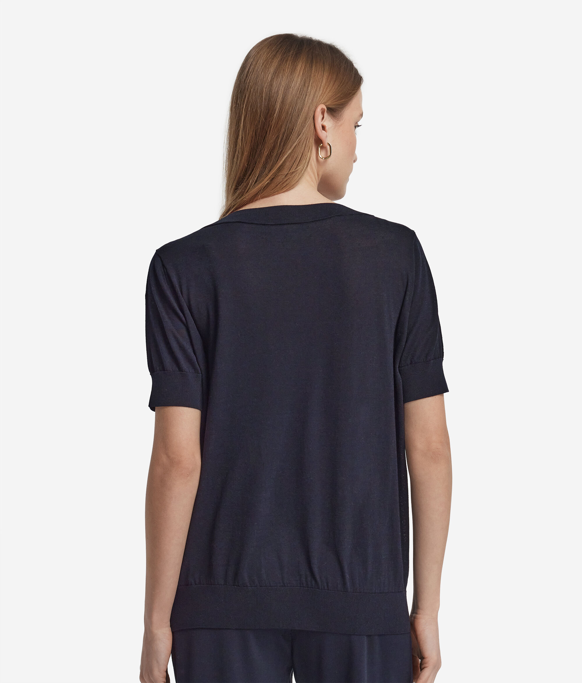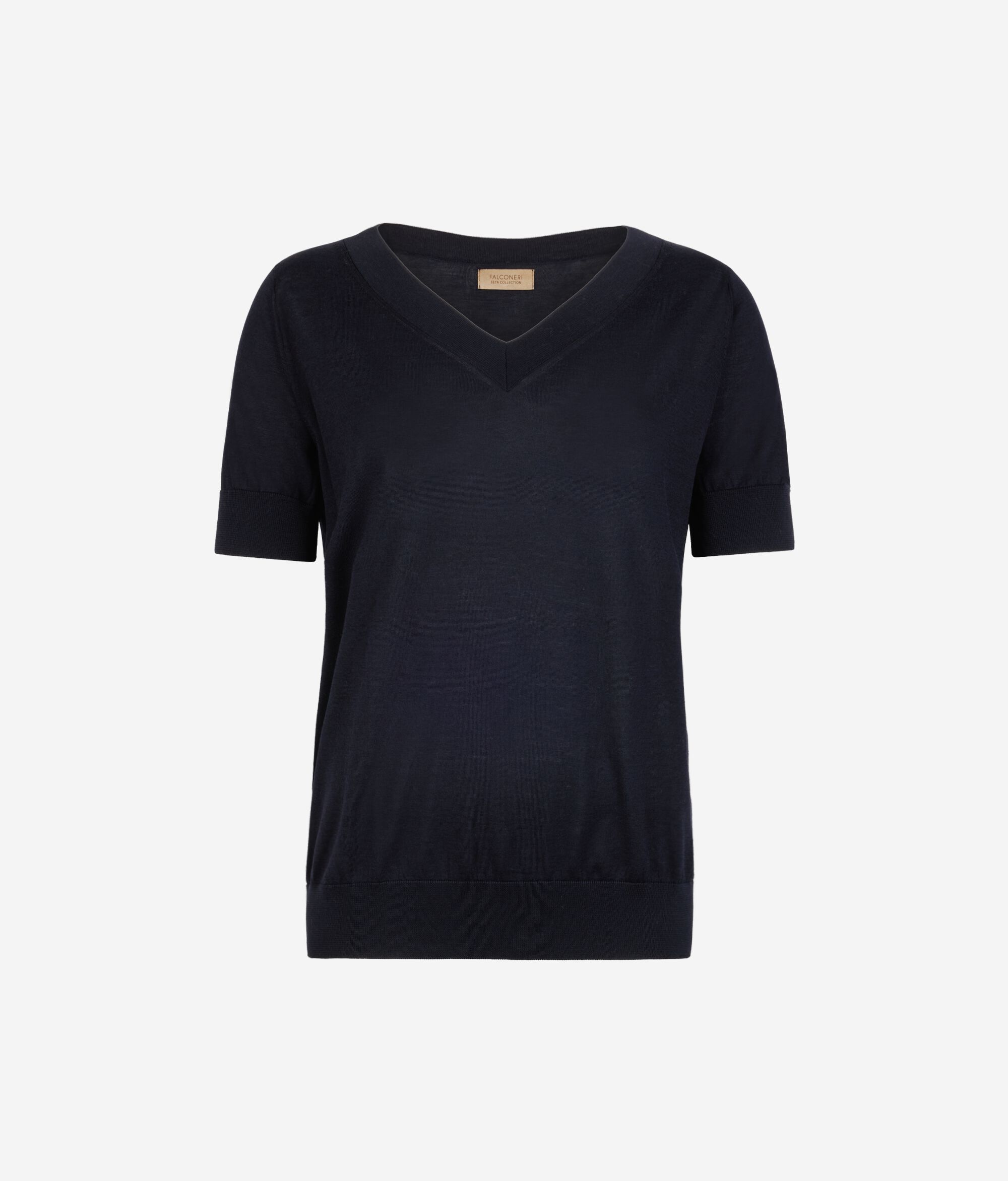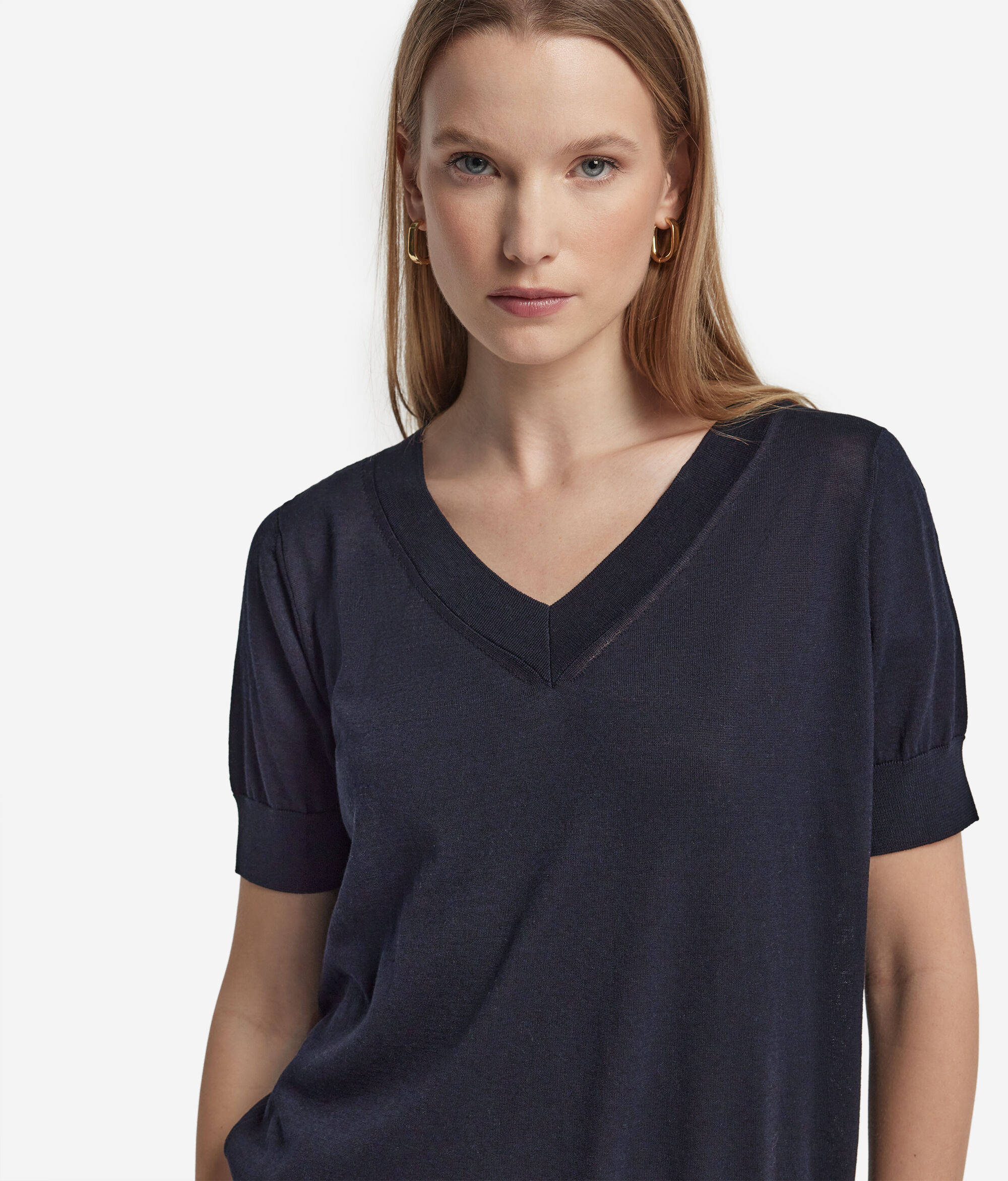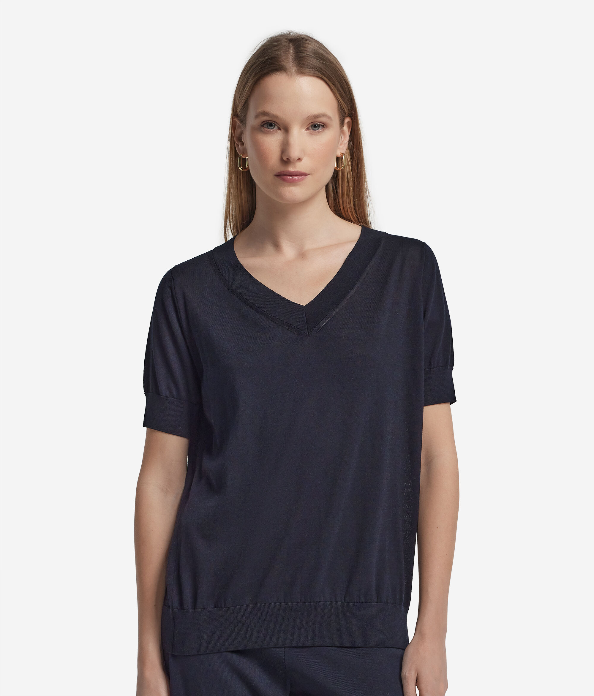 Pullover mit V-Ausschnitt und kurzen Ärmeln aus Seide Baumwolle